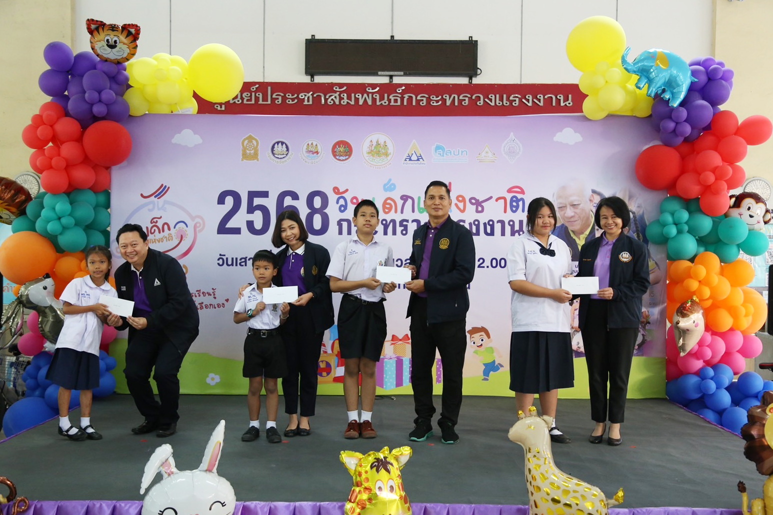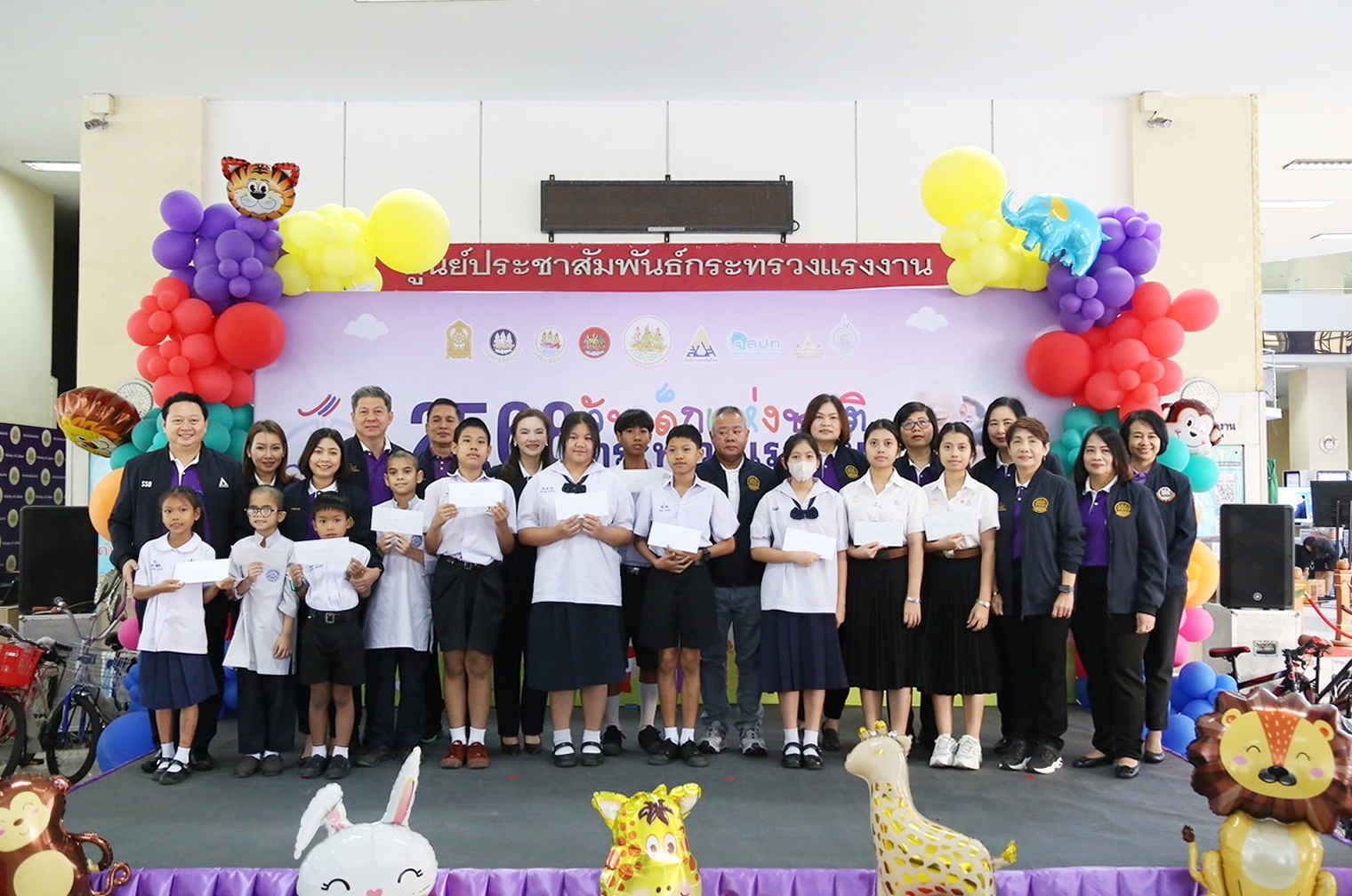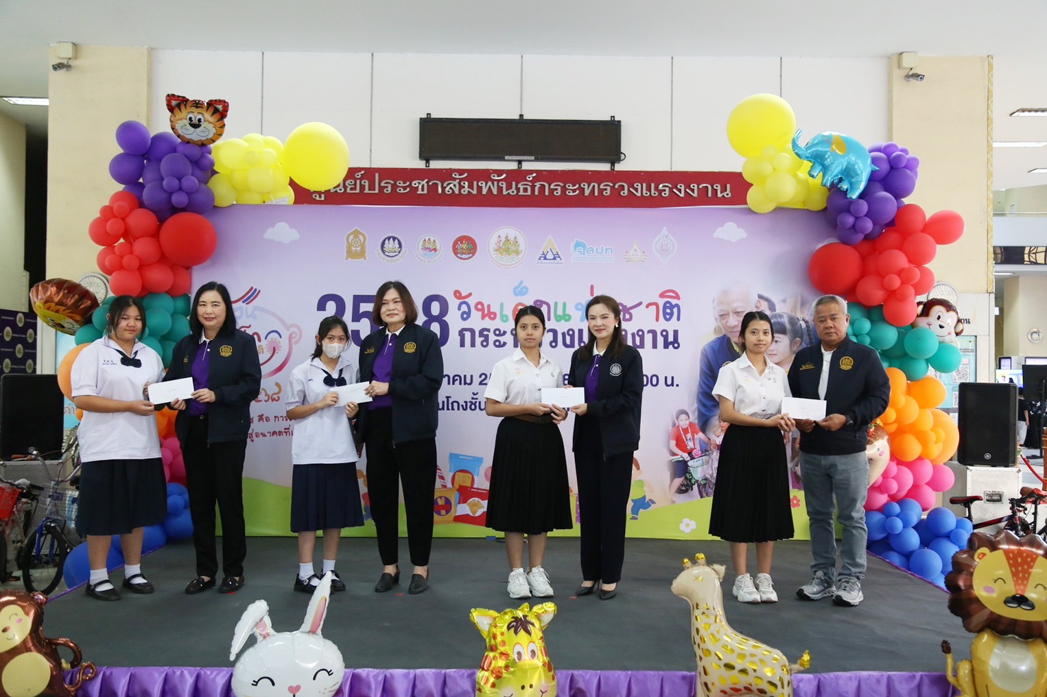 On January 11, 2025, at 08.45 hours, Mr. Boonsong Thapchaiyut, the Permanent Secretary of Labour, and Mrs. Thiamkhae Thapchaiyut, President of the Ministry of Labour’s Housewives Association, presided over the ceremony to award educational scholarships provided by the Ministry of Labour’s Housewives Association for 2025. Twelve scholarships were awarded to children of civil servants, permanent employees, and government officials under the Ministry of Labour on the occasion of National Children’s Day 2025. Ms. Bunyawee Khaipan, Vice President of the Association, Ms. Kanchana Poolkaew, Vice President of the Ministry of Labour’s Housewives Association, Ms. Nanthinee Sapsiri, Vice President of the Ministry of Labour’s Housewives Association, Ms. Kornjirat Phongchanthorn, Assistant to the President of the Ministry of Labour’s Housewives Association, Mr. Sakdinart Sonthisakyotin, Assistant to the Permanent Secretary of Labour, Ms. Jirawan Sutsunthon, Assistant to the President of the Ministry of Labour’s Housewives Association, along with the association’s honourary committee members, witnessed the event at the lobby on the ground floor of the Ministry of Labour’s building.