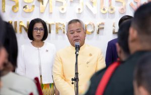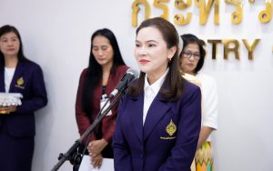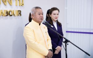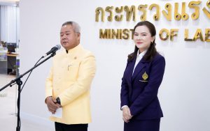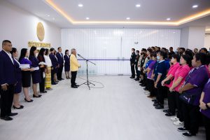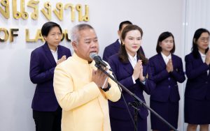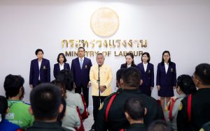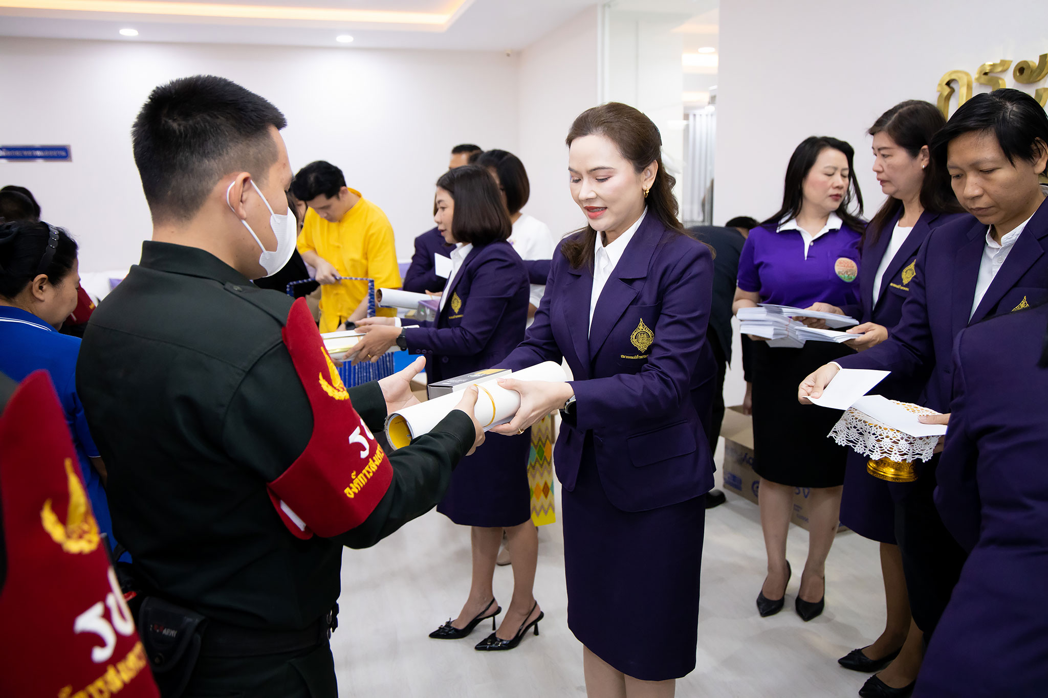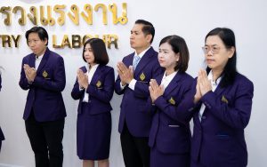 On December 27, 2024, at 07.00 hours, Mr. Boonsong Thapchaiyut, the Permanent Secretary of Labour, and Mrs. Thiamkhae Thapchaiyut, President of the Ministry of Labour’s Housewives Association, presented gifts on the occasion of the New Year Festival 2025. The gifts aim to encourage the 172 security officers and cleaning staff of the Ministry of Labour. The Ministry of Labour’s Housewives Association Committee attended the occasion at the Permanent Secretary’s Office, 7th floor, Ministry of Labour.