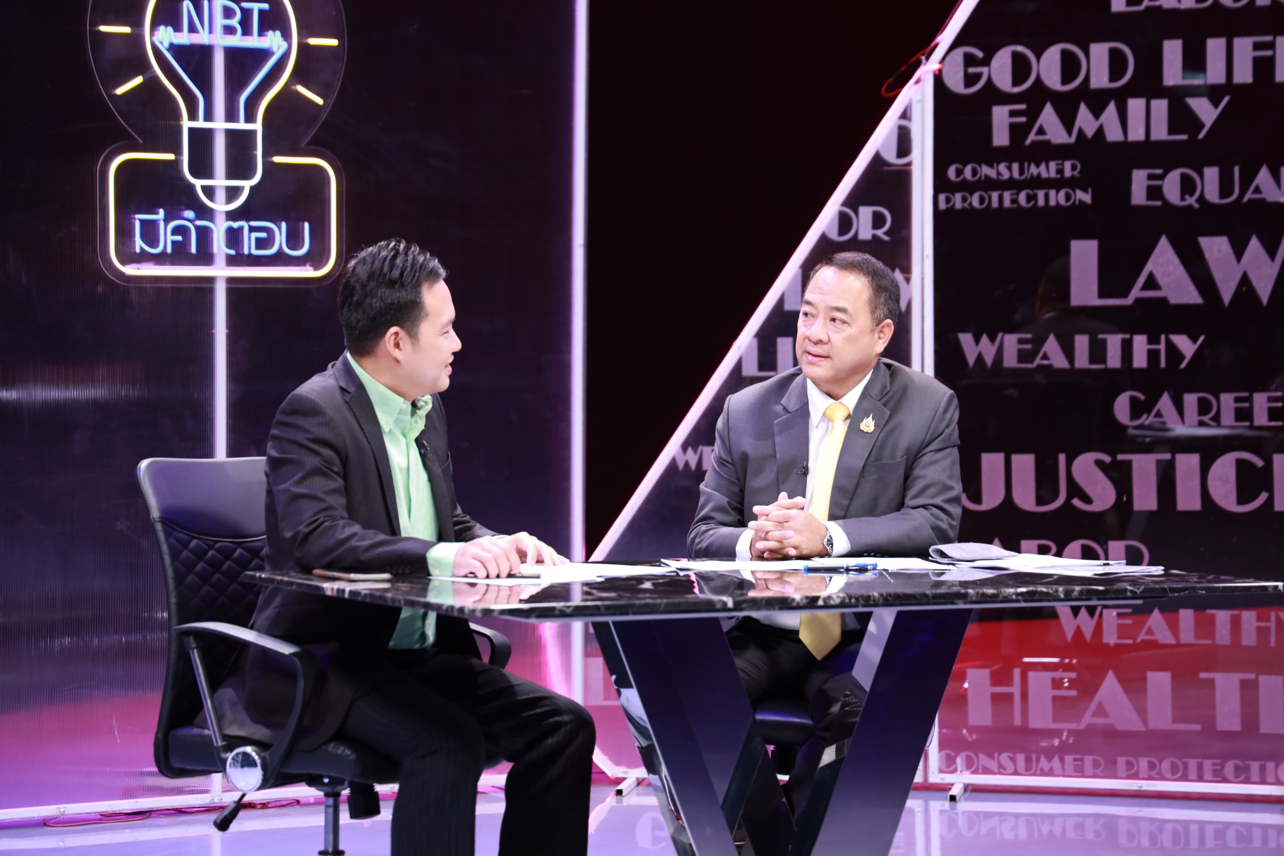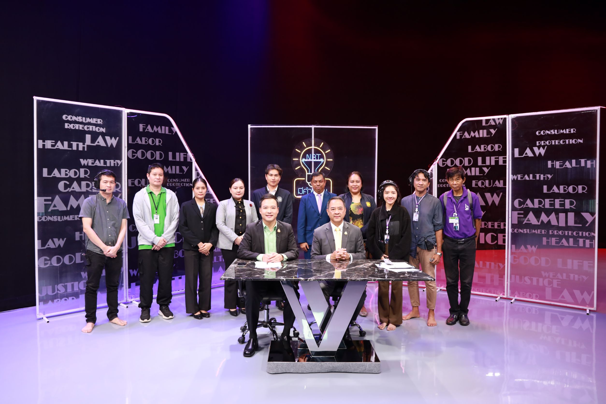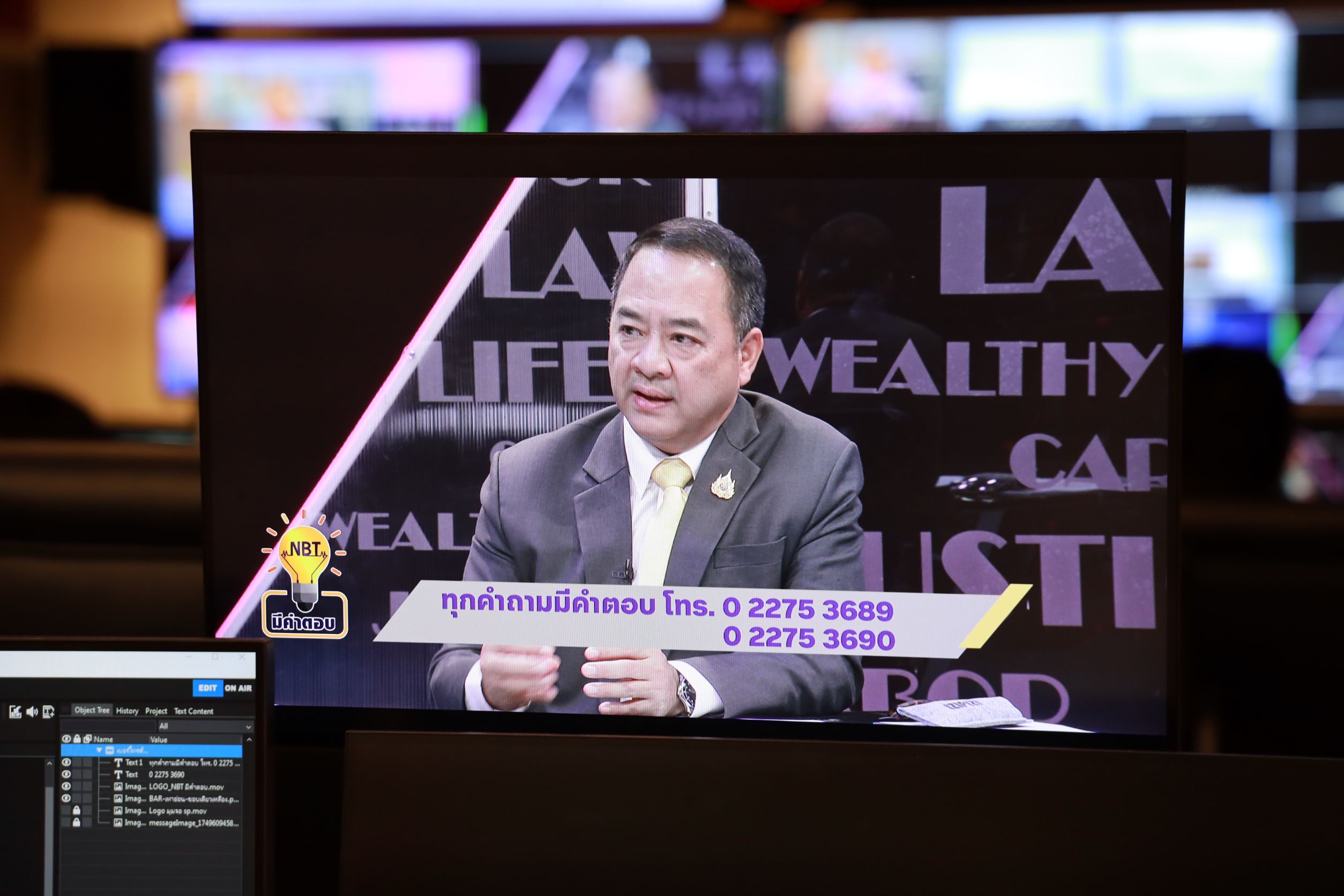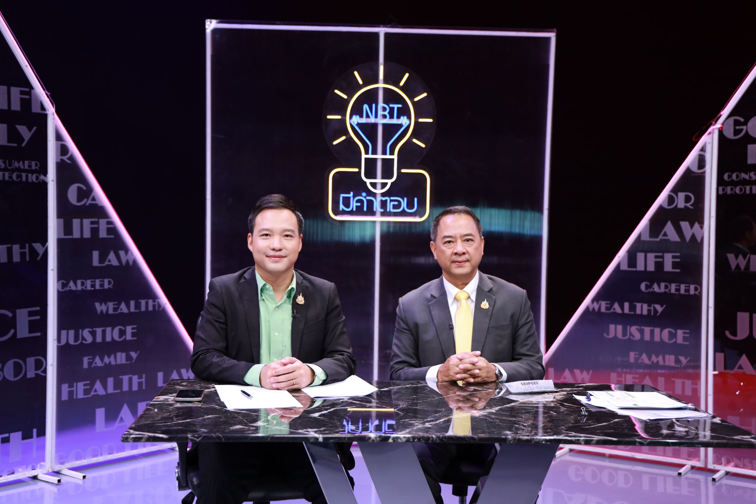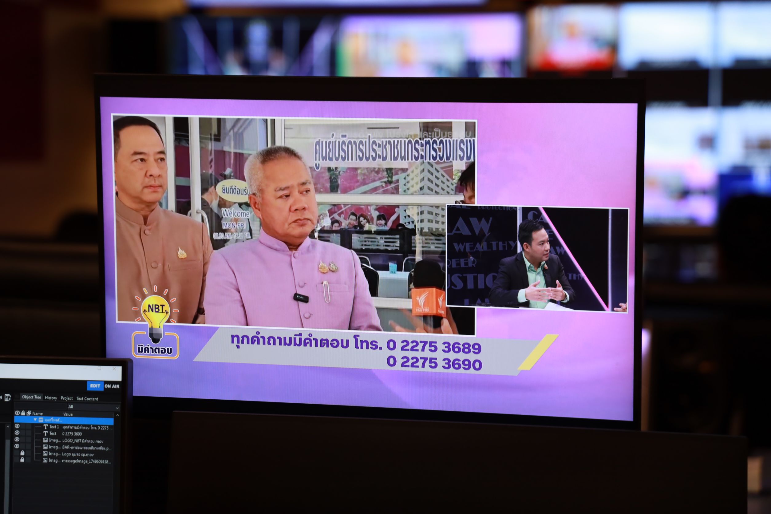 July 2, 2025, 15.30 hours – Mr. Boonsong Thapchaiyut, Permanent Secretary of Labour, assigned Mr. Samat Pattamasukon, the Deputy Permanent Secretary of Labour, to give a live interview on the topic “The Ministry of Labour’s Role in Supporting Thai Workers in Israel and Iran” on the program NBT Mee Kam Tob, aired on NBT2HD. The occasion took place at the recording studio of the National Broadcasting Services of Thailand (NBT2HD), Vibhavadi Rangsit Road, Din Daeng District, Bangkok.