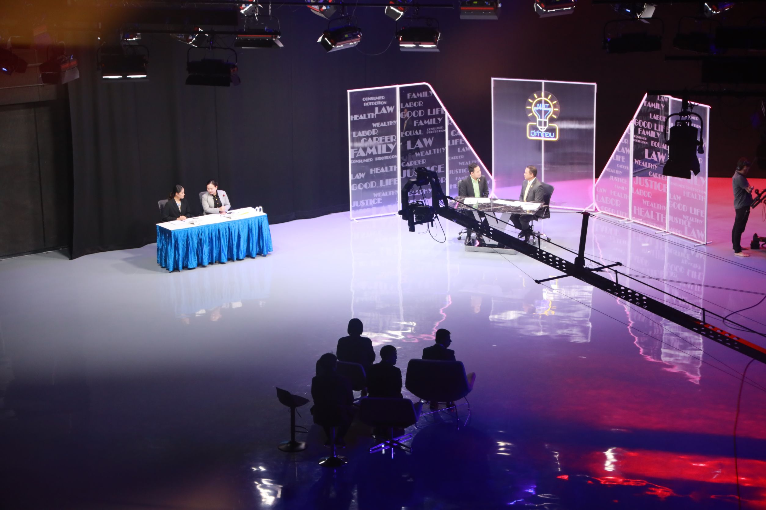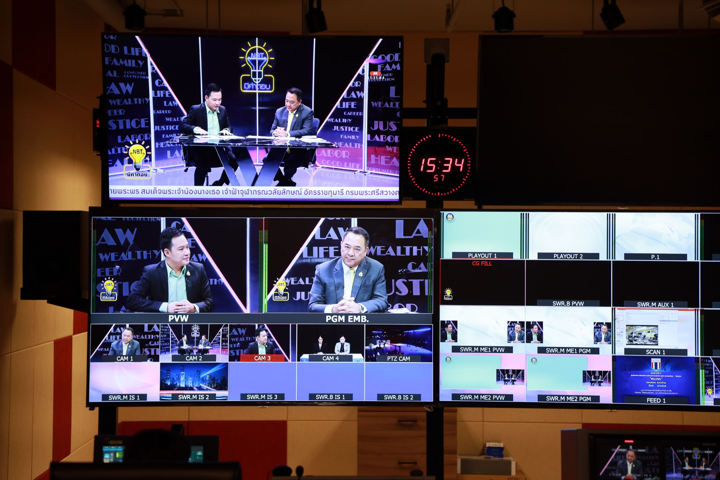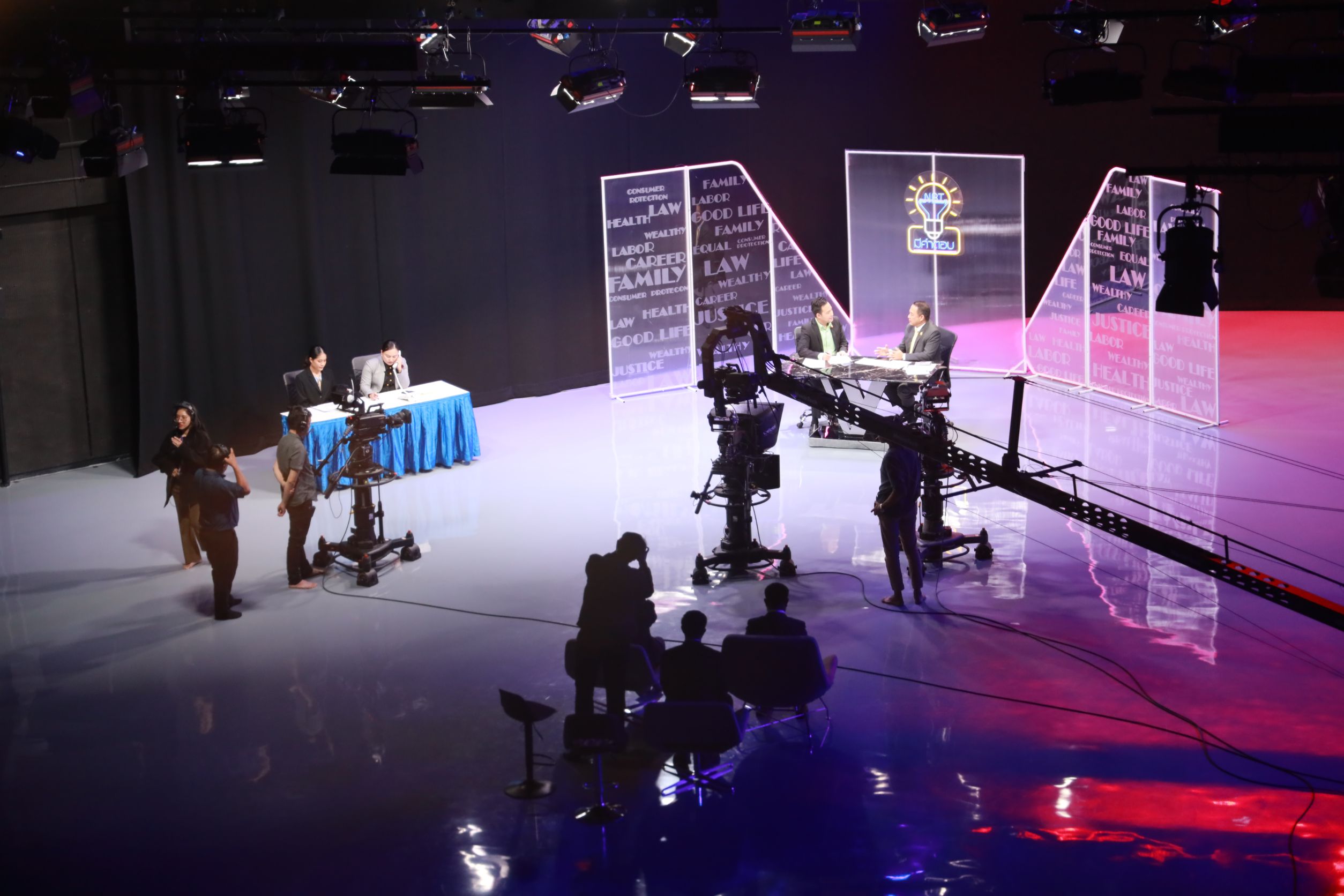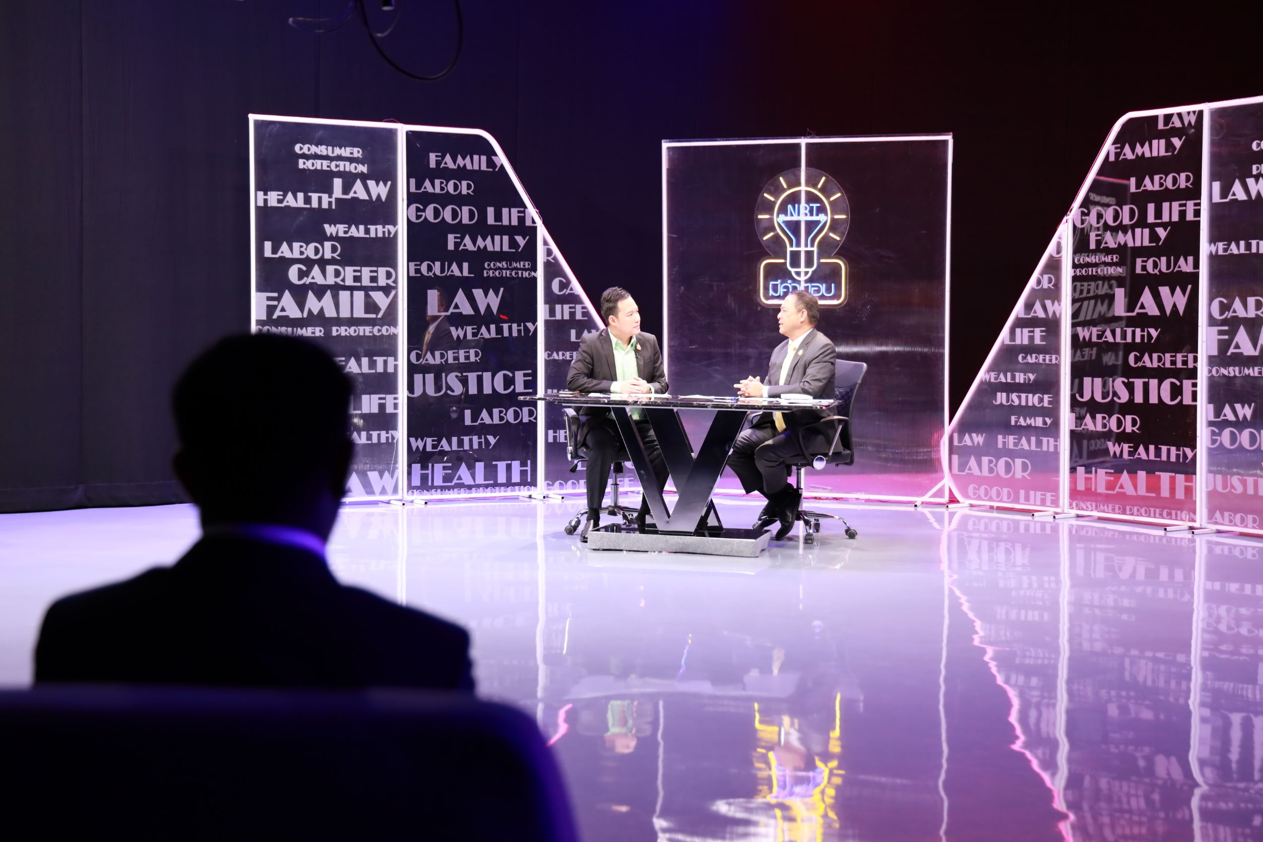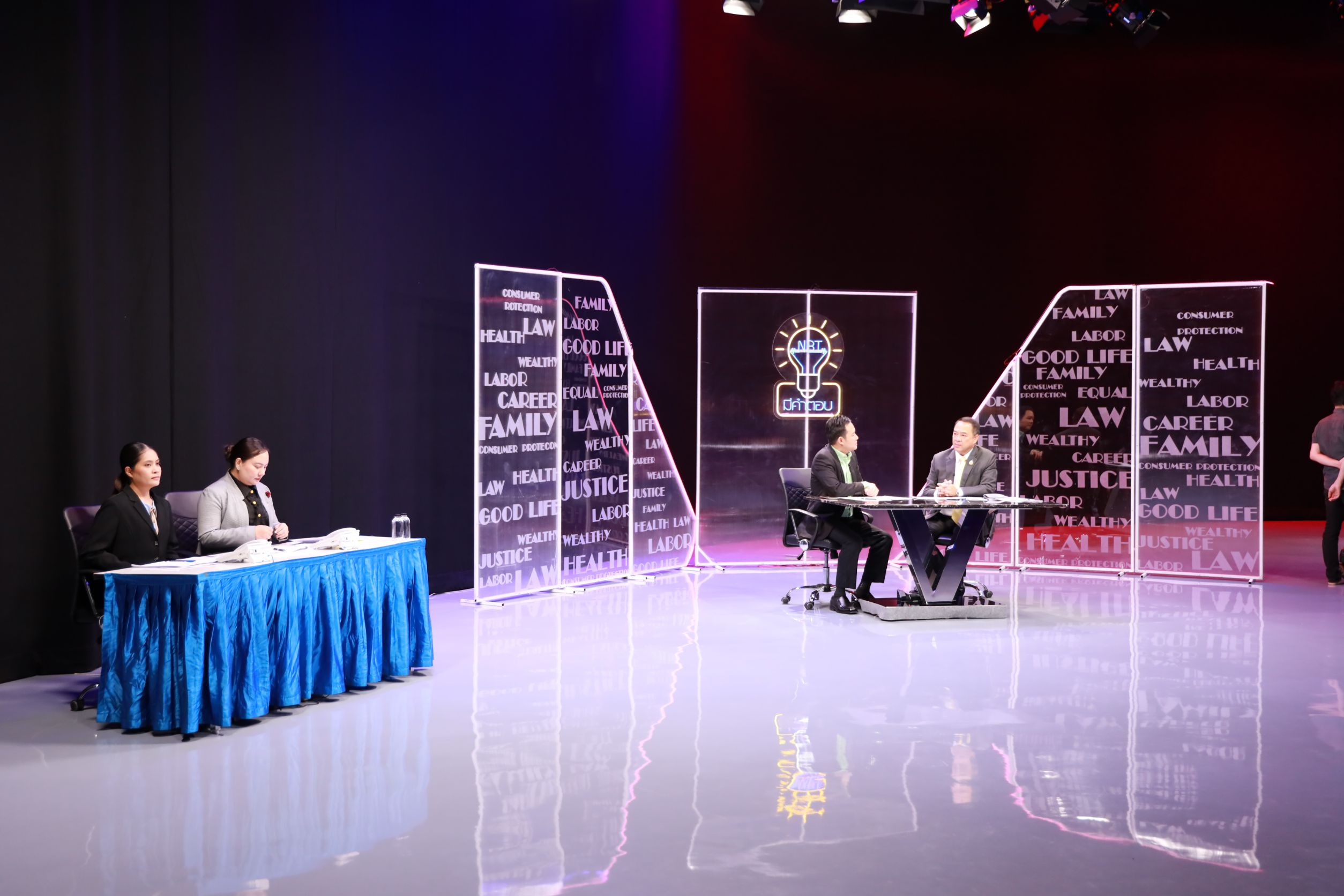 July 2, 2025, 15.30 hours – Mr. Boonsong Thapchaiyut, Permanent Secretary of Labour, assigned Mr. Samat Pattamasukon, the Deputy Permanent Secretary of Labour, to give a live interview on the topic “The Ministry of Labour’s Role in Supporting Thai Workers in Israel and Iran” on the program NBT Mee Kam Tob, aired on NBT2HD. The occasion took place at the recording studio of the National Broadcasting Services of Thailand (NBT2HD), Vibhavadi Rangsit Road, Din Daeng District, Bangkok.