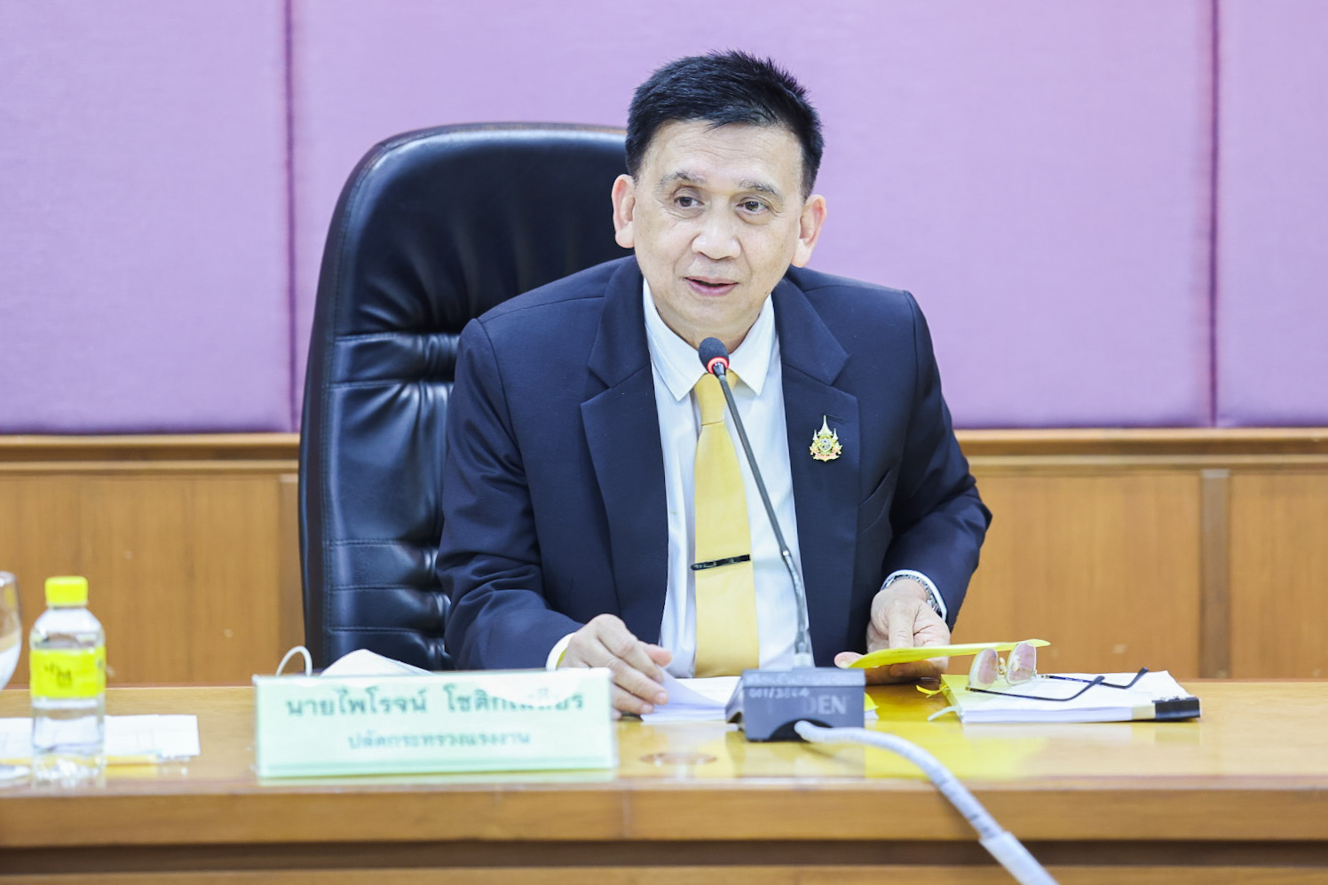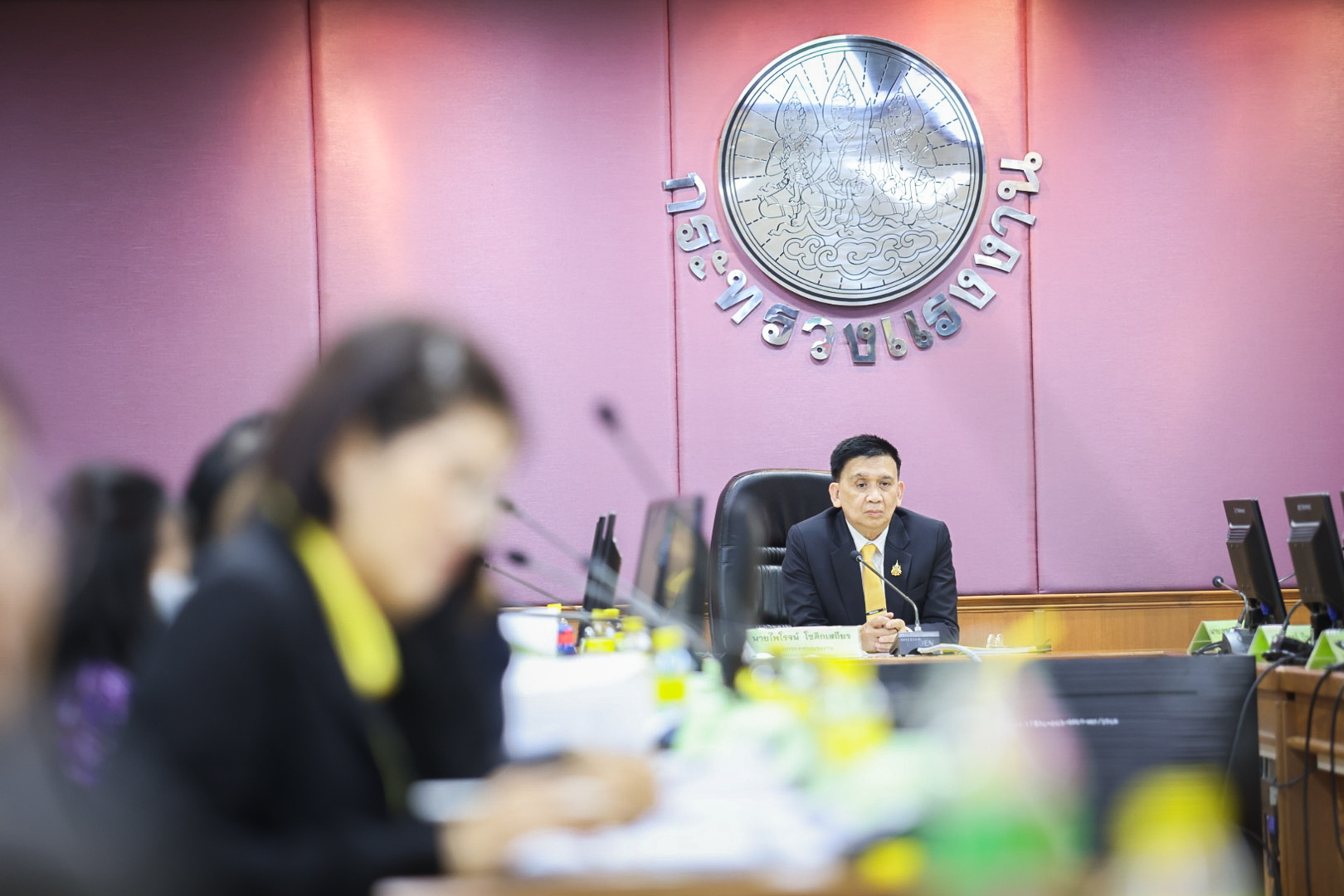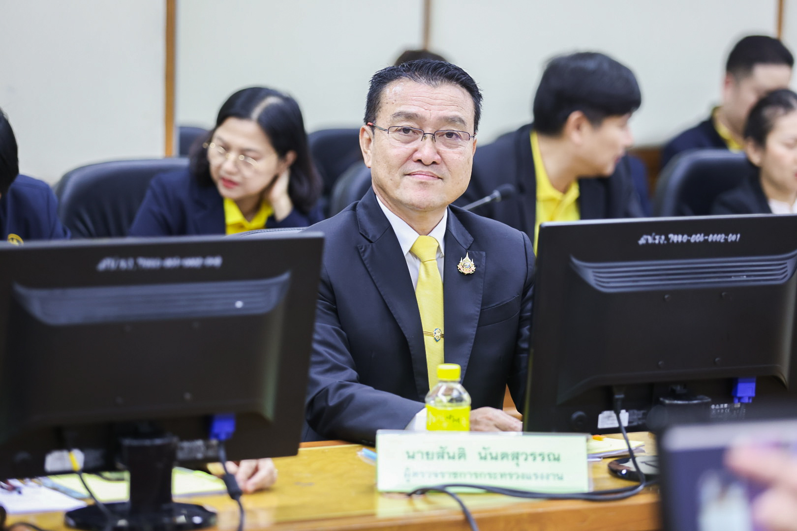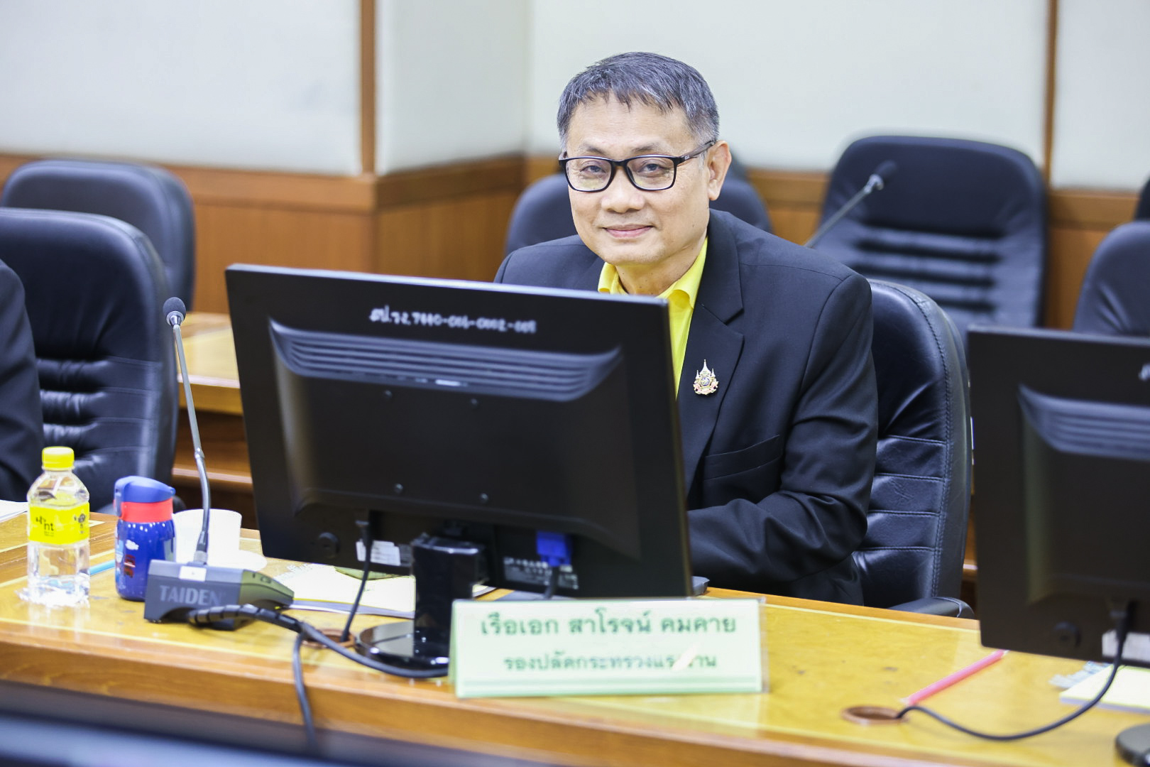 On August 5, 2024, at 15.00 hours, the Permanent Secretary of Labour, Mr. Pairoj Chotikasathien, chaired the Office of the Permanent Secretary of Labour Meeting No. 5/2024. Senior executives and agencies under the Office of the Permanent Secretary of Labour in central, regional, and international areas attended the meeting, which took place at the Prasong Rananant Meeting Room, 5th floor, Ministry of Labour, and online.