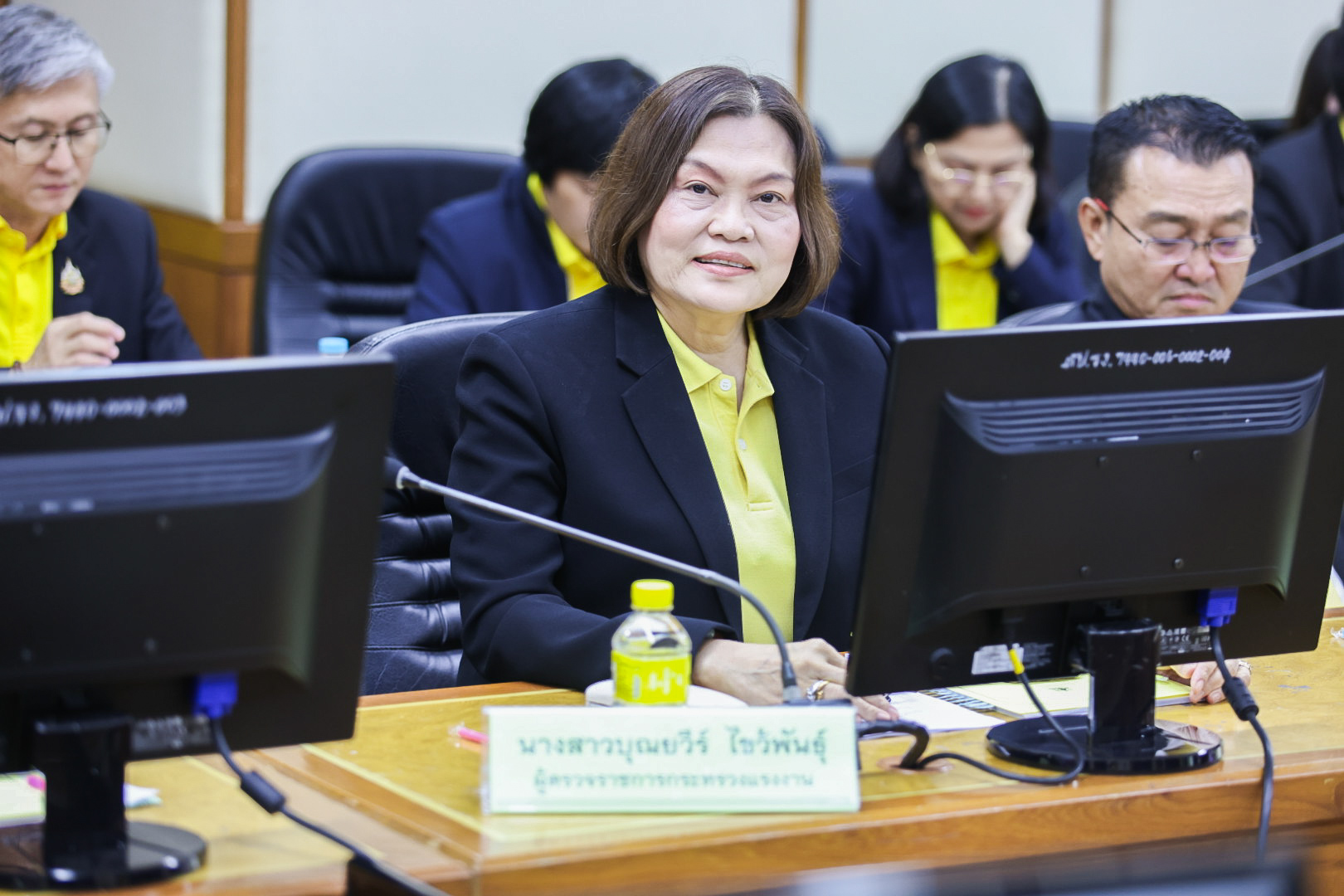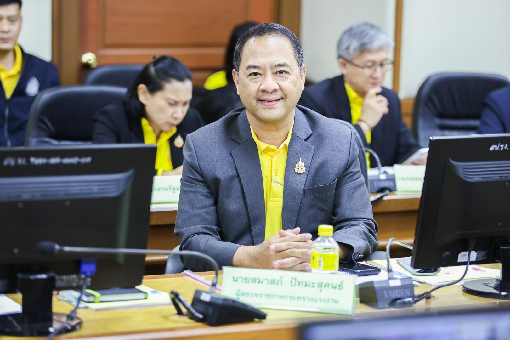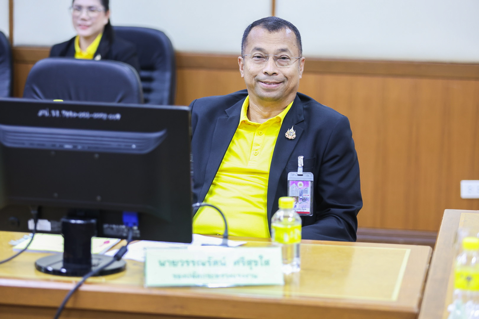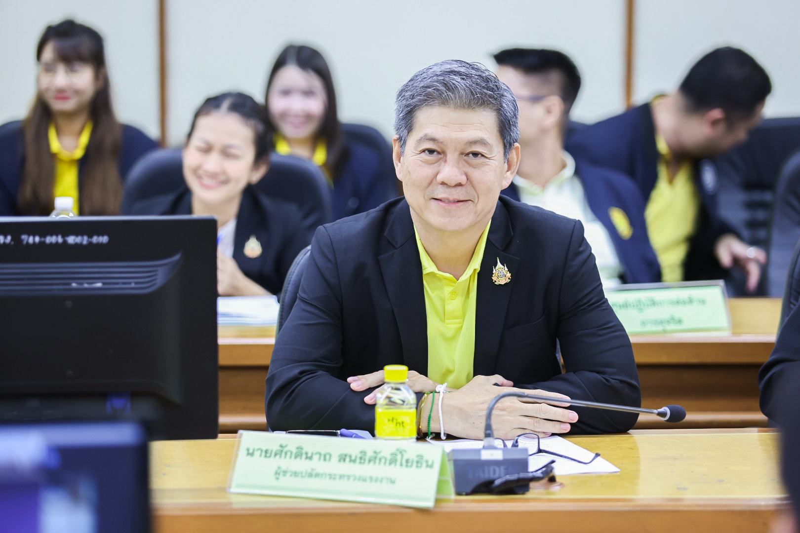 On August 5, 2024, at 15.00 hours, the Permanent Secretary of Labour, Mr. Pairoj Chotikasathien, chaired the Office of the Permanent Secretary of Labour Meeting No. 5/2024. Senior executives and agencies under the Office of the Permanent Secretary of Labour in central, regional, and international areas attended the meeting, which took place at the Prasong Rananant Meeting Room, 5th floor, Ministry of Labour, and online.