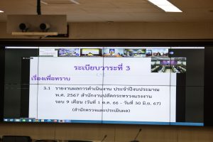 In this meeting, the agencies under the Office of the Permanent Secretary of Labour reported the performance results for the 2024 fiscal year, nine months (October 1, 2023, to June 30, 2024), the budget expenditure results of the Office of the Permanent Secretary of Labour, for the 2024 fiscal year (October 1, 2023, to July 31, 2024), the labour situation and trends report for July 2024, the regional performance report by the provincial labour offices of Mukdahan, Nakhon Pathom, Songkhla, and Khon Kaen, the performance report on findings of the Thai labour markets abroad, the installation of entry and exit cards in the area of the Ministry of Labour, and the results of the 112th Session of the International Labour Organization.