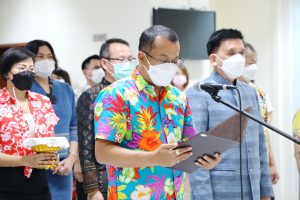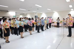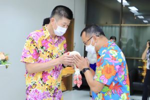 On April 11, 2022, at 16.00 hours, Permanent Secretary of Labour, Mr. Boonchob Suttamanaswong, gave blessings on the occasion of the Songkran Festival 2022. He blessed the Ministry of Labour’s executives, government officials, and staff. Deputy Permanent Secretary of Labour, Mr. Wannarat Srisuksai, Deputy Permanent Secretary of Labour, Ms. Bubpha Panpeng, the Ministry of Labour’s executives, government officials, and staff also joined the occasion together at the foyer in front of the Permanent Secretary of Labour’s room, 7th floor, Ministry of Labour.