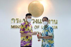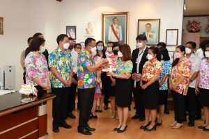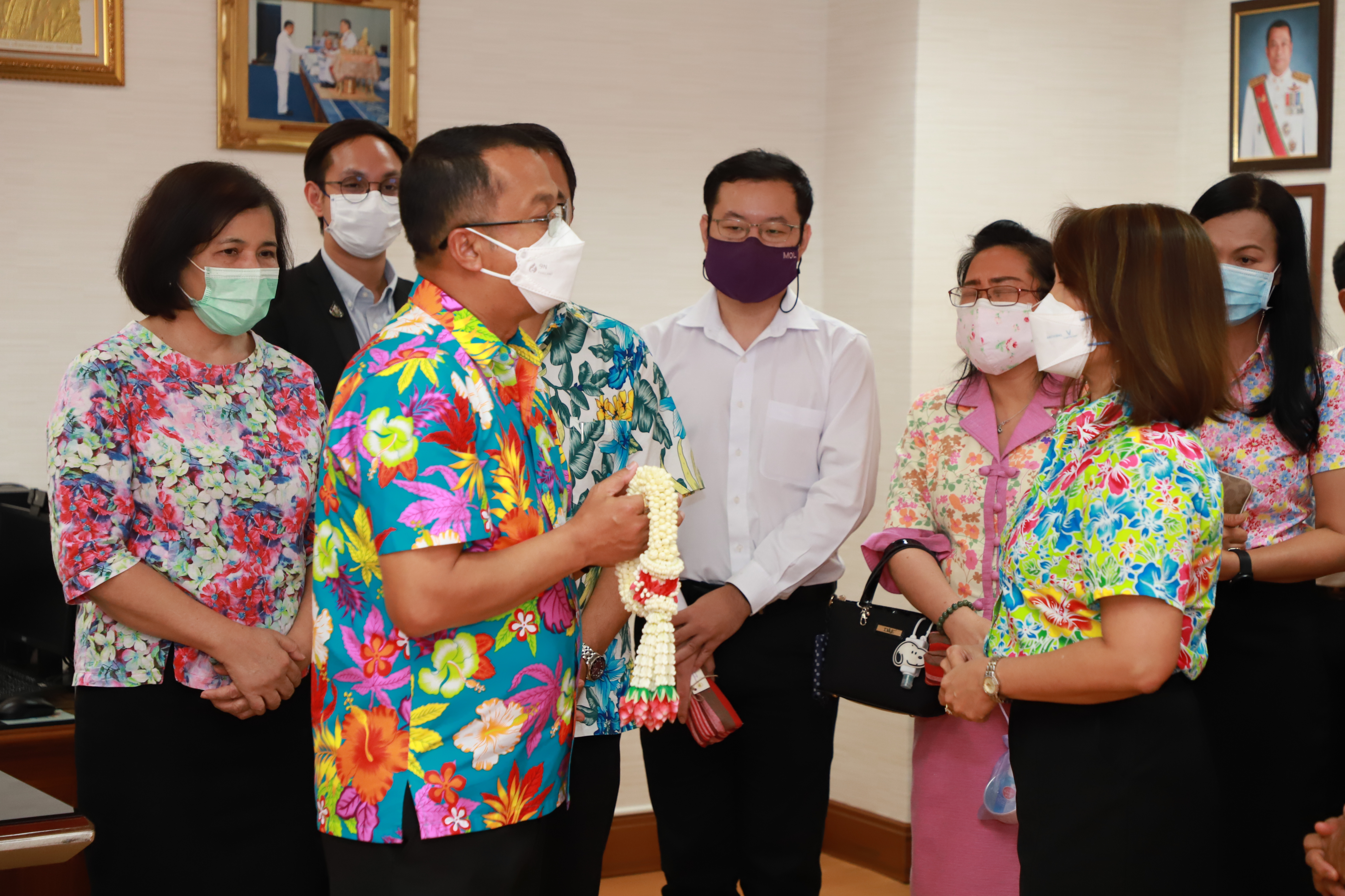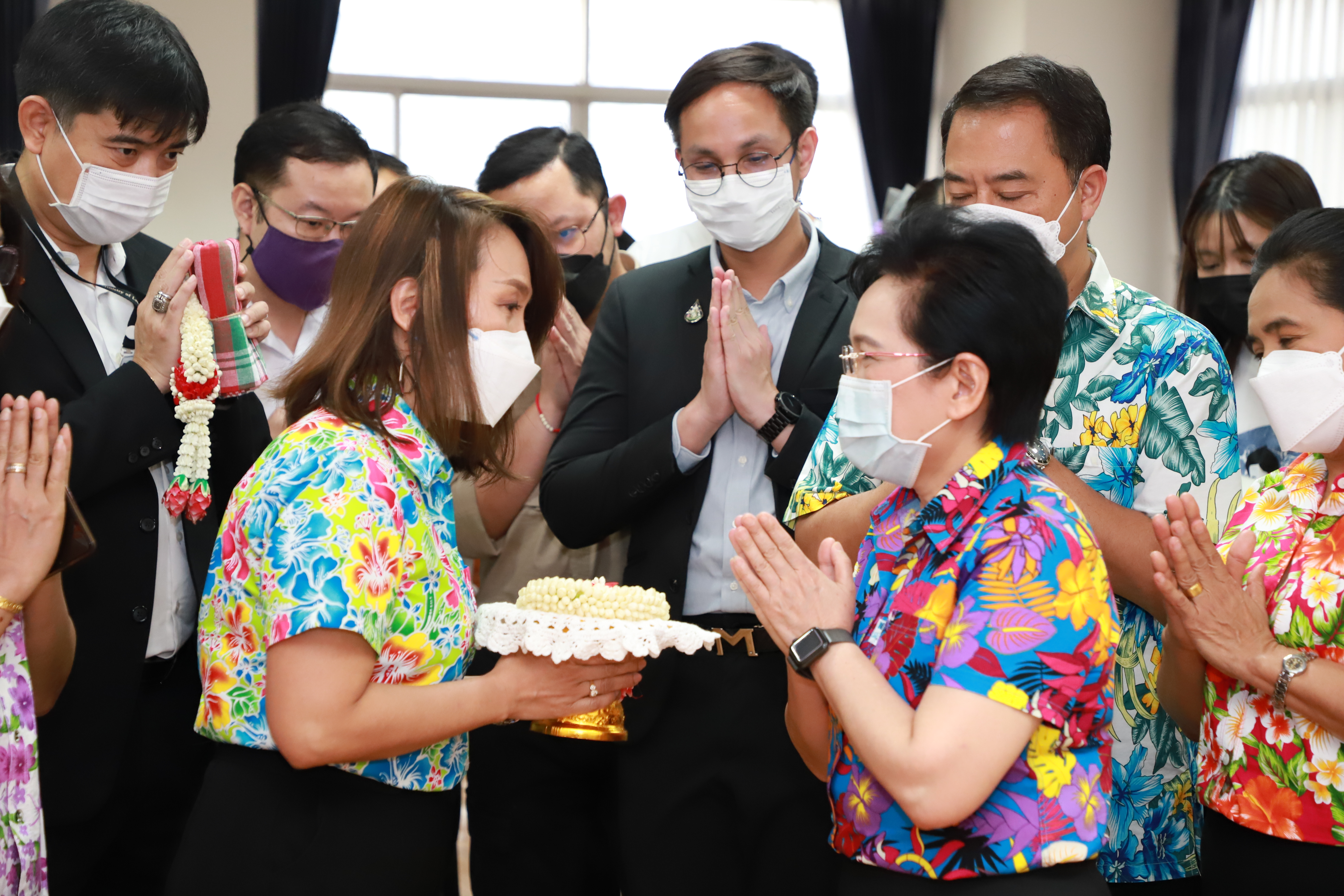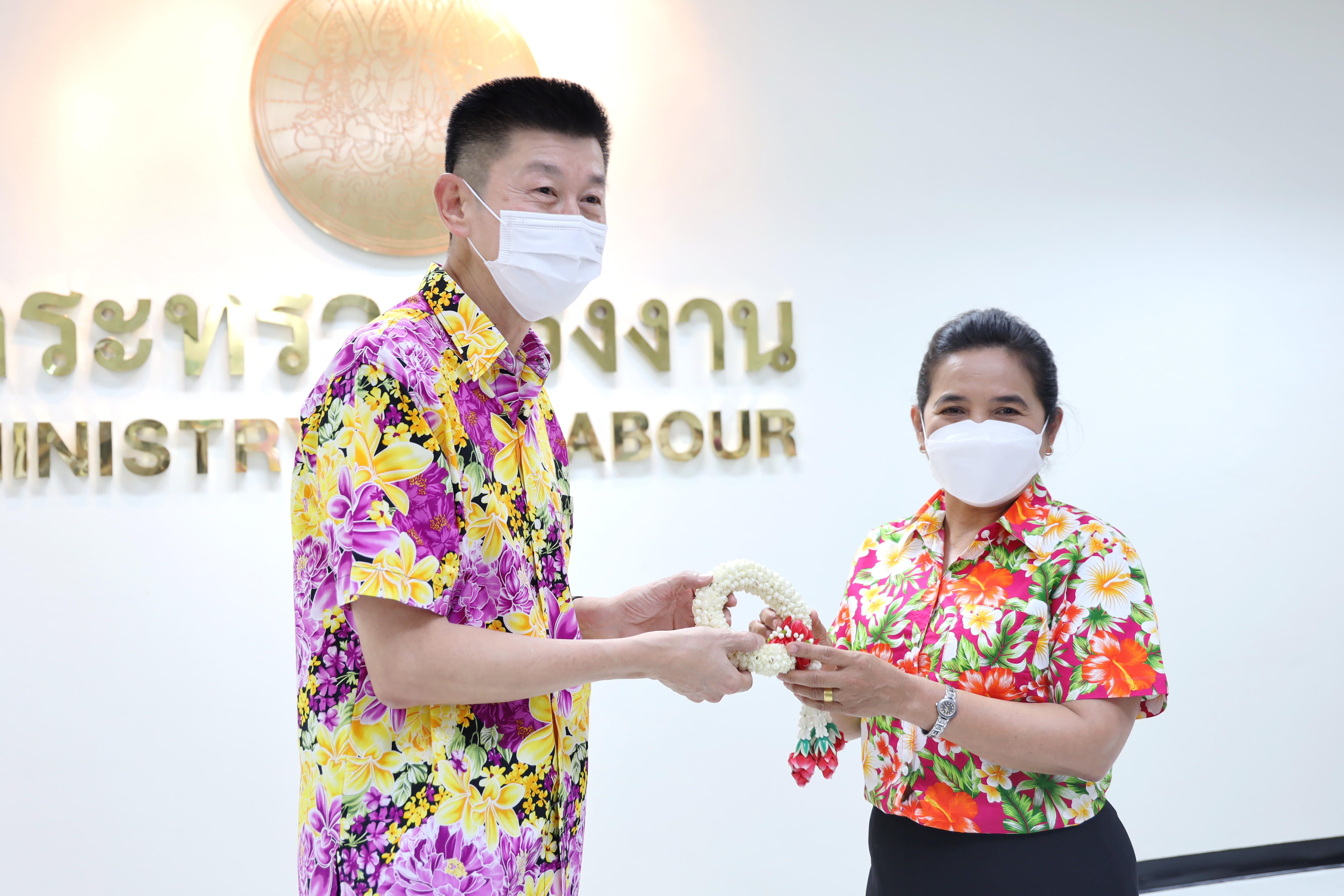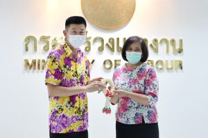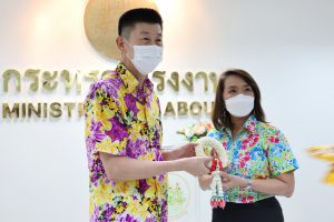 From there, Assistants to the Permanent Secretary of Labour, Mrs. Tongjai Suthat Na Ayutthaya, and Mr. Samat Pattamasukon gave blessings to the Ministry of Labour’s government officials and staff at the office of the Assistant to the Permanent Secretary of Labour, 7th floor, Ministry of Labour.