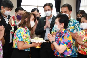On the same occasion, the Deputy Permanent Secretary of Labour, Mr. Wannarat Srisuksai and Ms. Bubpha Panpeng, gave blessings to the Ministry of Labour’s executives, government officials, and staff. The Ministry of Labour’s Inspector-General, Mrs. Sopa Kieatnircha, and the Ministry of Labour’s Inspector-General, Mrs. Darunee Nithithaweekul, led the delegation to join the ceremony at the Deputy Permanent Secretary of Labour’s room, 7th floor, Ministry of Labour.