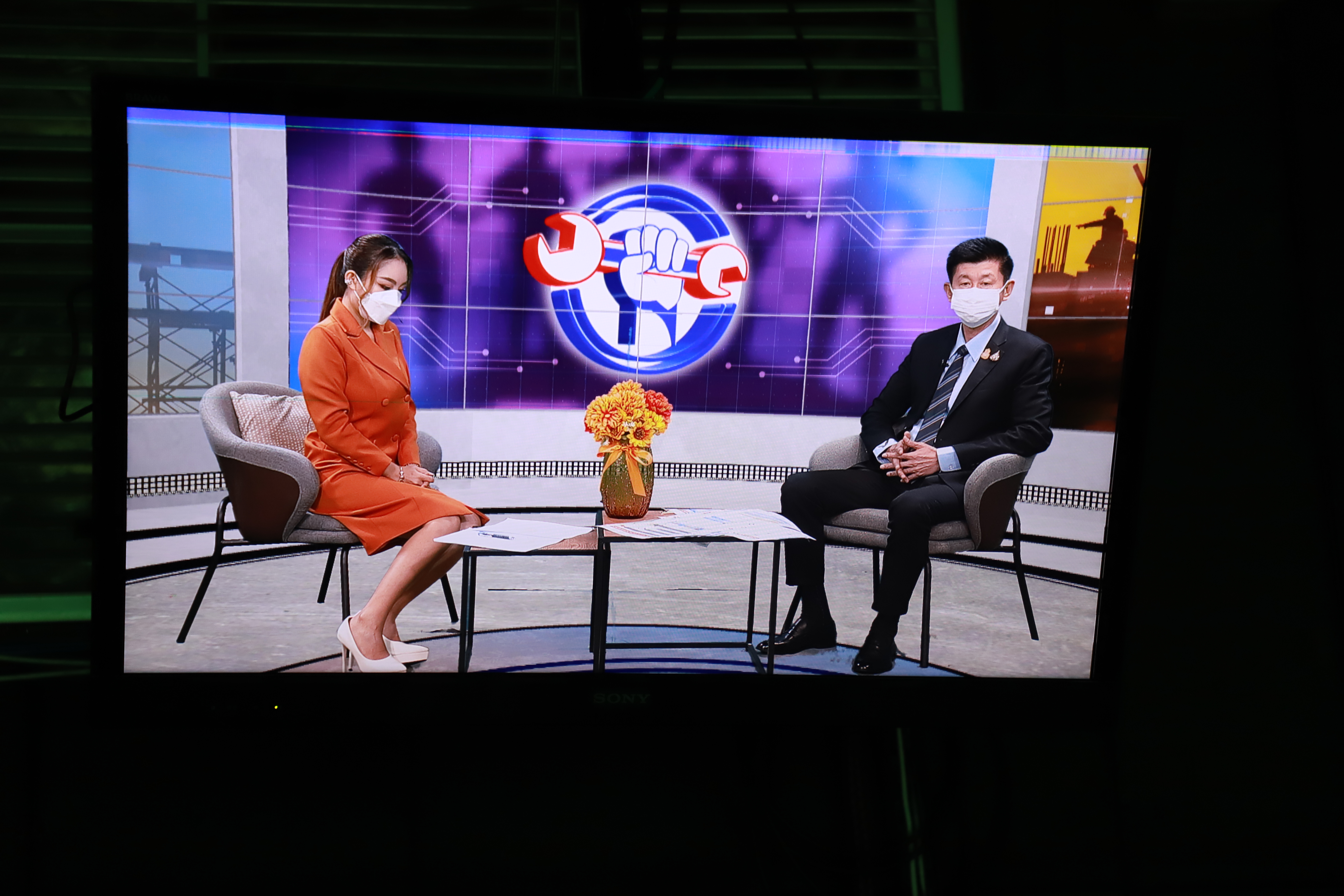 On June 17, 2022, Permanent Secretary of Labour, Mr. Boonchob Suttamanaswong, gave an interview on “The Workforce Builds a Nation.” He spoke about measures for importing foreign workers to support the country’s opening. The interview took place on the NBT television station, Vibhavadi Road, Bangkok, and will be broadcast on Saturday, June 25, 2022, from 17.00 to 17.30 hours.