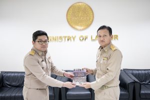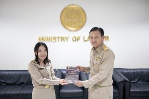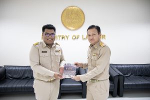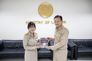 On October 21, 2020, Permanent Secretary of Labour Mr. Suthi Sukosol welcomed Mr. Prasit Jeawkok, Special Lecturer from the Volunteer School 904, to discuss the guidelines for public relations on the King and the operations of the Royal Volunteer School. Representatives of the Royal Volunteer School gave thanks to the Permanent Secretary of Labour for supporting the functions of the Royal Volunteer School and the Royal Volunteer Center and gave 550 copies of Thai history books to government officials and officials under the Ministry of Labour. This will promote further study, pass on correct knowledge, create attitudes and ideologies in honouring Thailand’s monarchy.