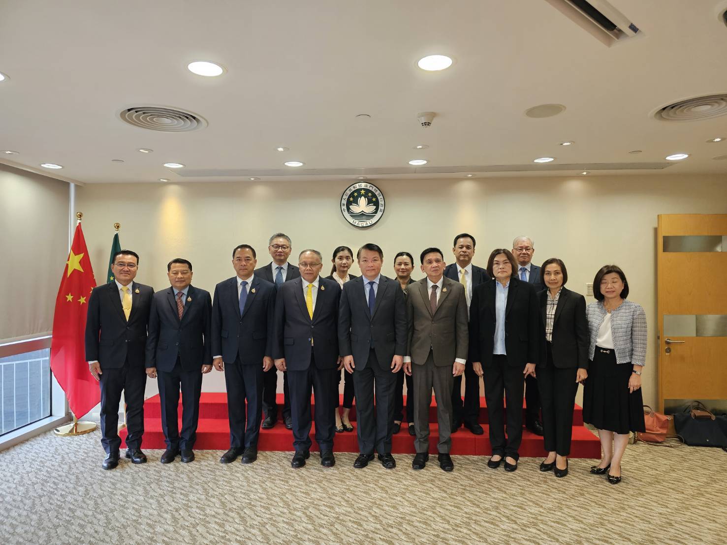 On August 7, 2024, at 10.00 hours, the Permanent Secretary of Labour, Mr. Pairoj Chotikasathien, joined the delegation of the Assistant to the Labour Minister, Mr. Siraphop Duangsodsri, who visited Macau to discuss labour issues with the Minister of Economy and Finance of Macau, Mr. Lei Wai Nong, to strengthen labour relations, exchange knowledge on labour, and exchange experiences in caring for the well-being of foreign workers between Thailand and Macau. The occasion took place at the Avenida Doutor. The Ministry of Labour’s Inspector-General, Mr. Samat Pattamasukon, the Ministry of Labour’s Inspector-Generals, Mr. Somphon Kwangkaew, Ms. Bunyawee Khaipan, Mrs. Marasri Jairangsi, Mr. Santi Nantasuwan, and the Department of Employment’s Deputy Director-General, Mr. Sibmuenchai Phothisin, joined the occasion.