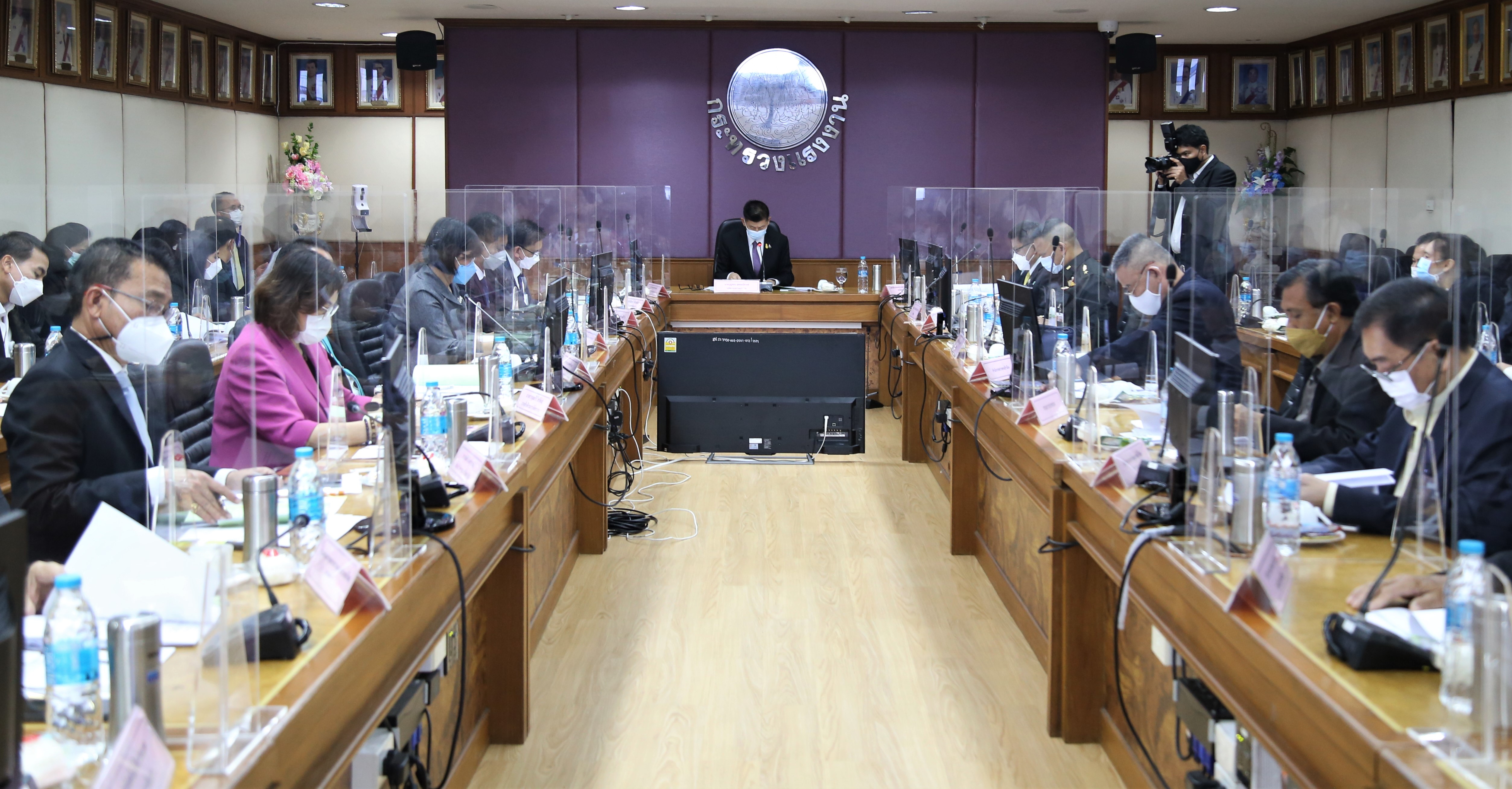 On February 2, 2022, at 10.00 hours, the Permanent Secretary of Labour, Mr. Boonchob Suttamanaswong, chaired the meeting of the Foreign Worker Management Policy Committee No. 1/2022. The meeting considered the management of foreign workers under Section 83 of the Fisheries Royal Decree B.E. 2558 and the implementation of the MOU for workers after the expiration of 4 years to continue to work. The meeting took place at the Prasong Rananant meeting room, 5th floor, Ministry of Labour.