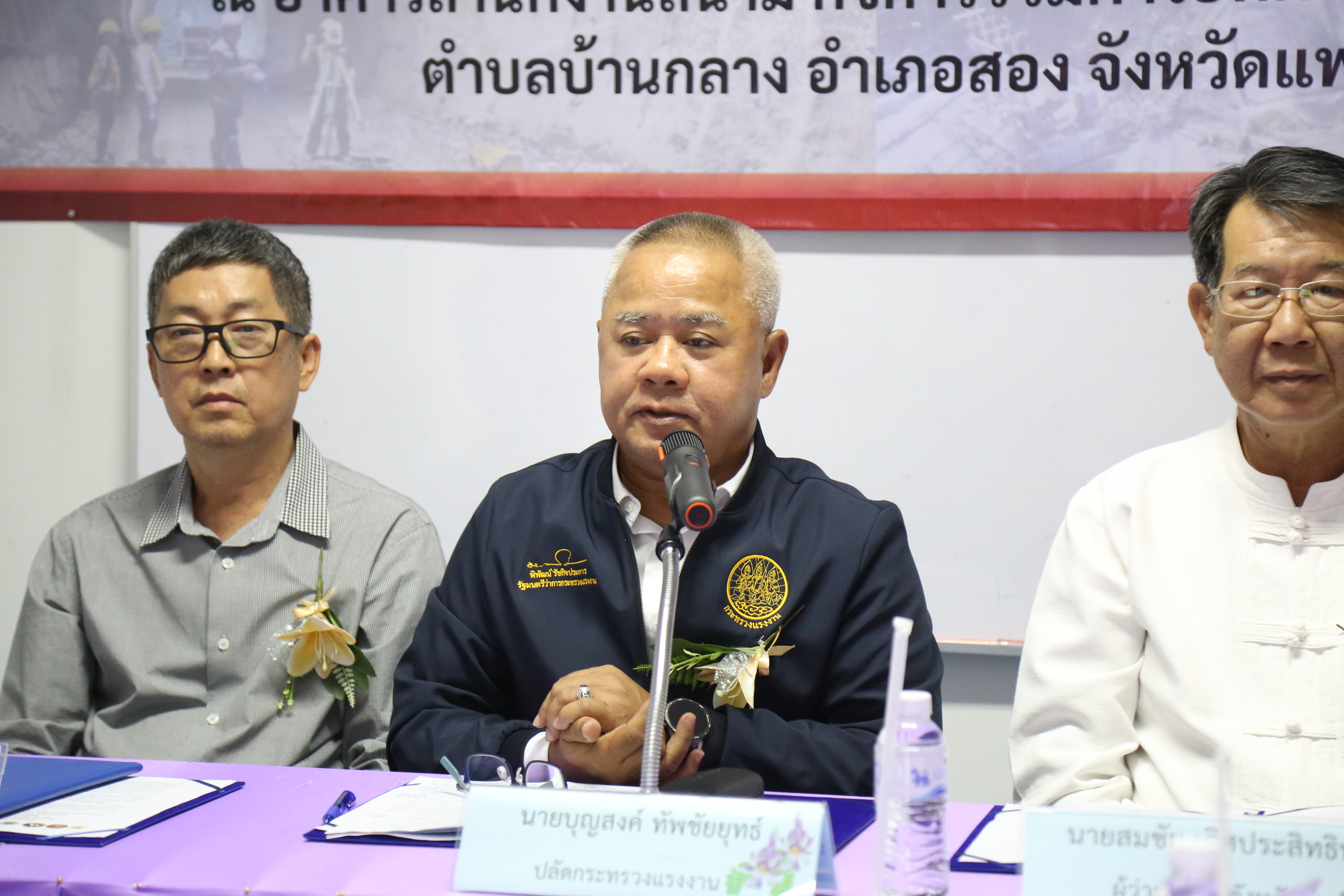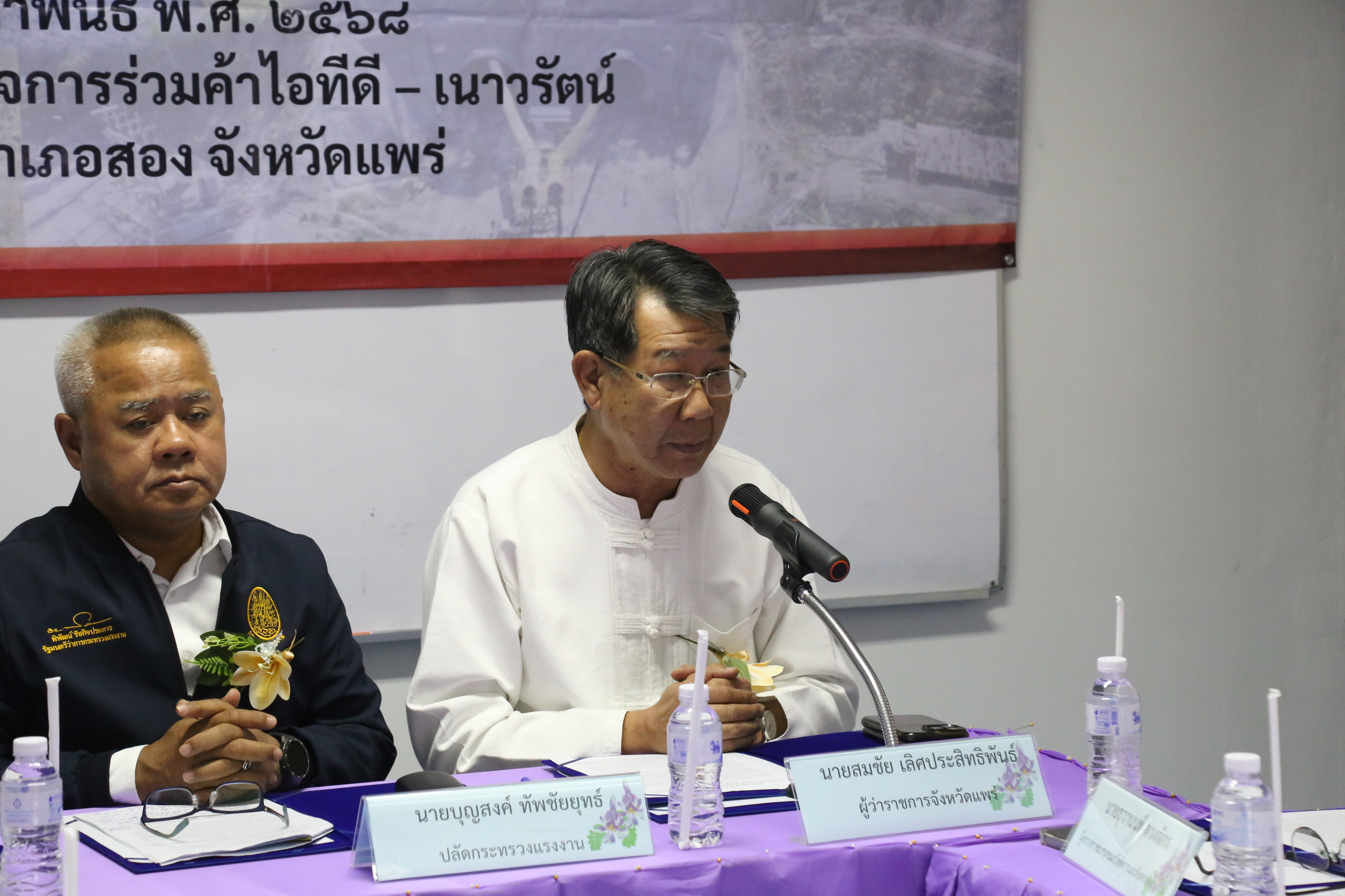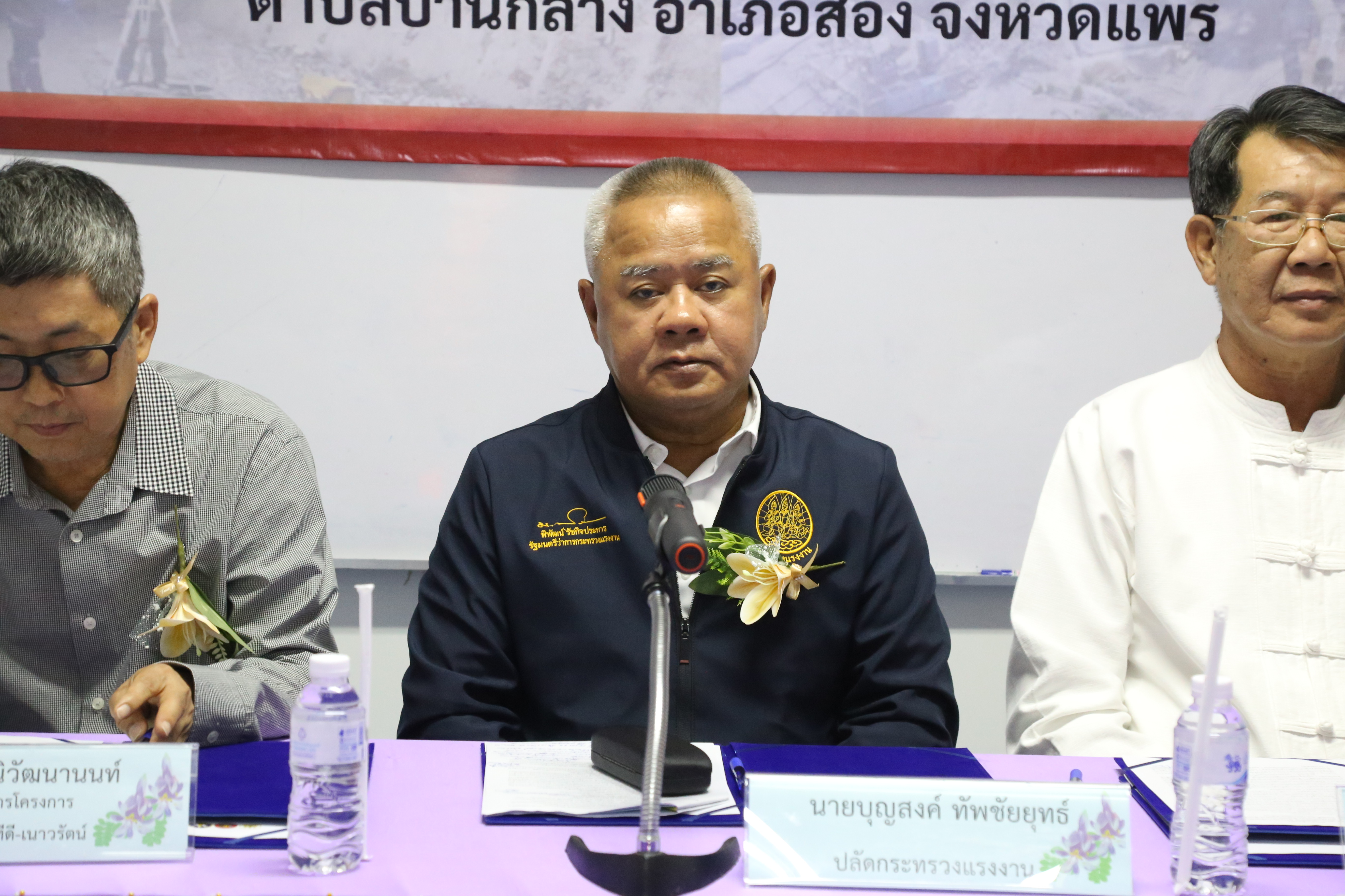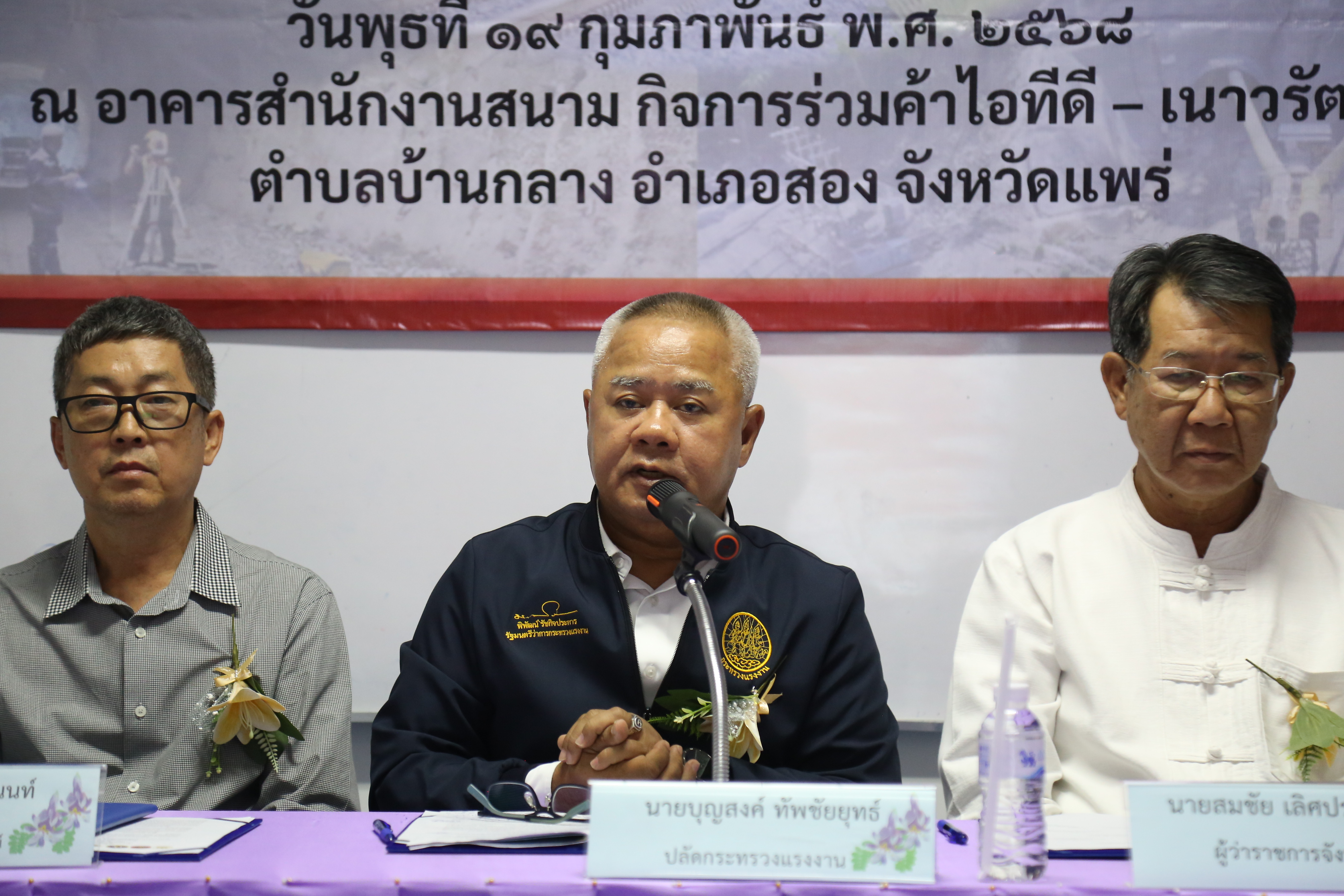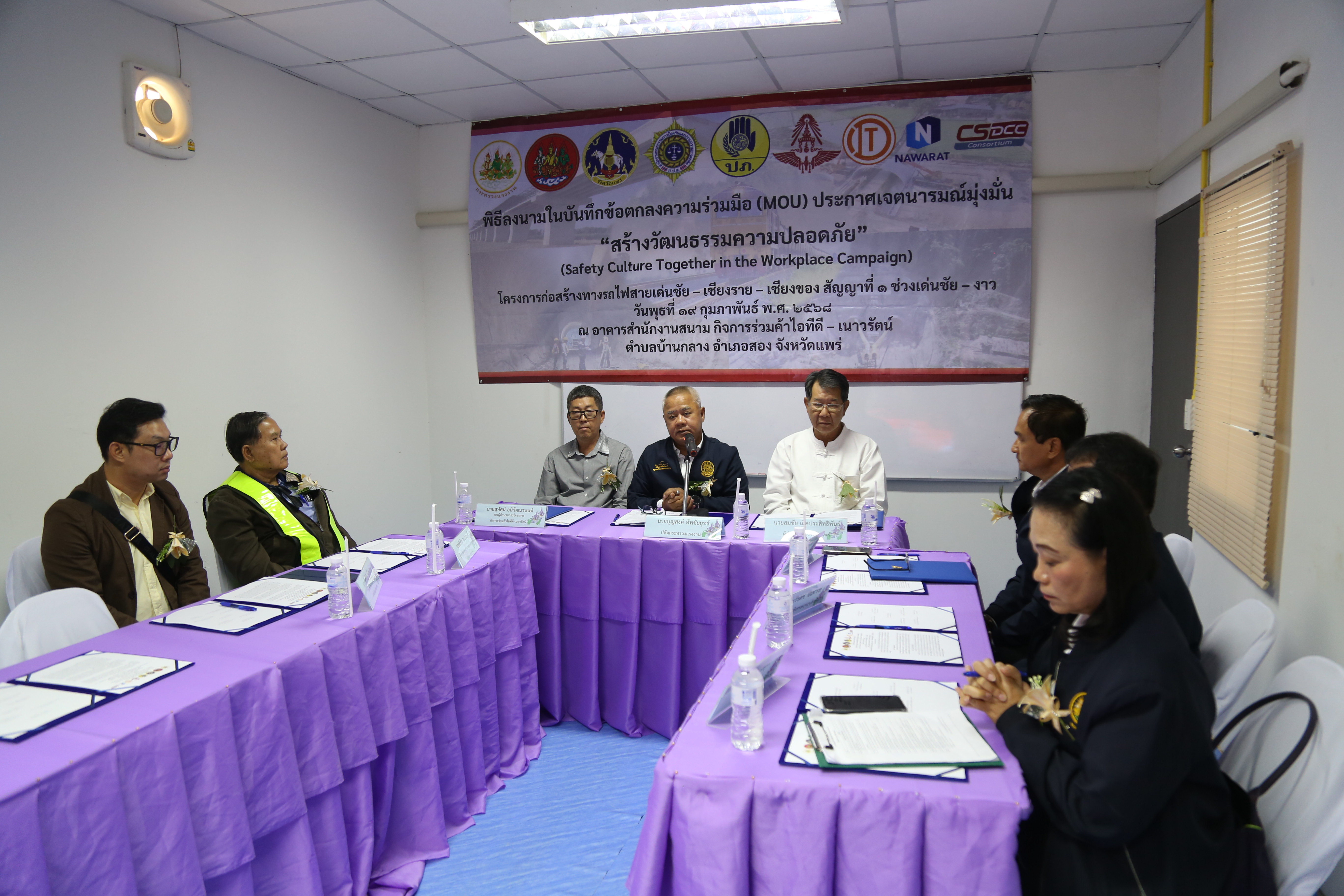 On February 19, 2025, Mr. Boonsong Thapchaiyut, the Permanent Secretary of Labour, chaired the opening ceremony of the campaign to boost participation for worker families, drive policies, and create a safety culture. He also witnessed the signing ceremony of the Memorandum of Understanding (MOU) to declare the “Safety Culture Together in the Workplace Campaign” the (Den Chai – Chiang Rai – Chiang Khong Railway Construction Project, Contract 1, Den Chai – Ngao Section). Mr. Somchai Lertprasitphan, Governor of Phrae Province, executives of the Ministry of Labour, heads of government agencies under the Ministry of Labour in Phrae Province, and private sector executives joined the welcome at the ITD – Nawarat Joint Venture Field Office Building, Thung Nao Subdistrict, Song District, Phrae Province.
