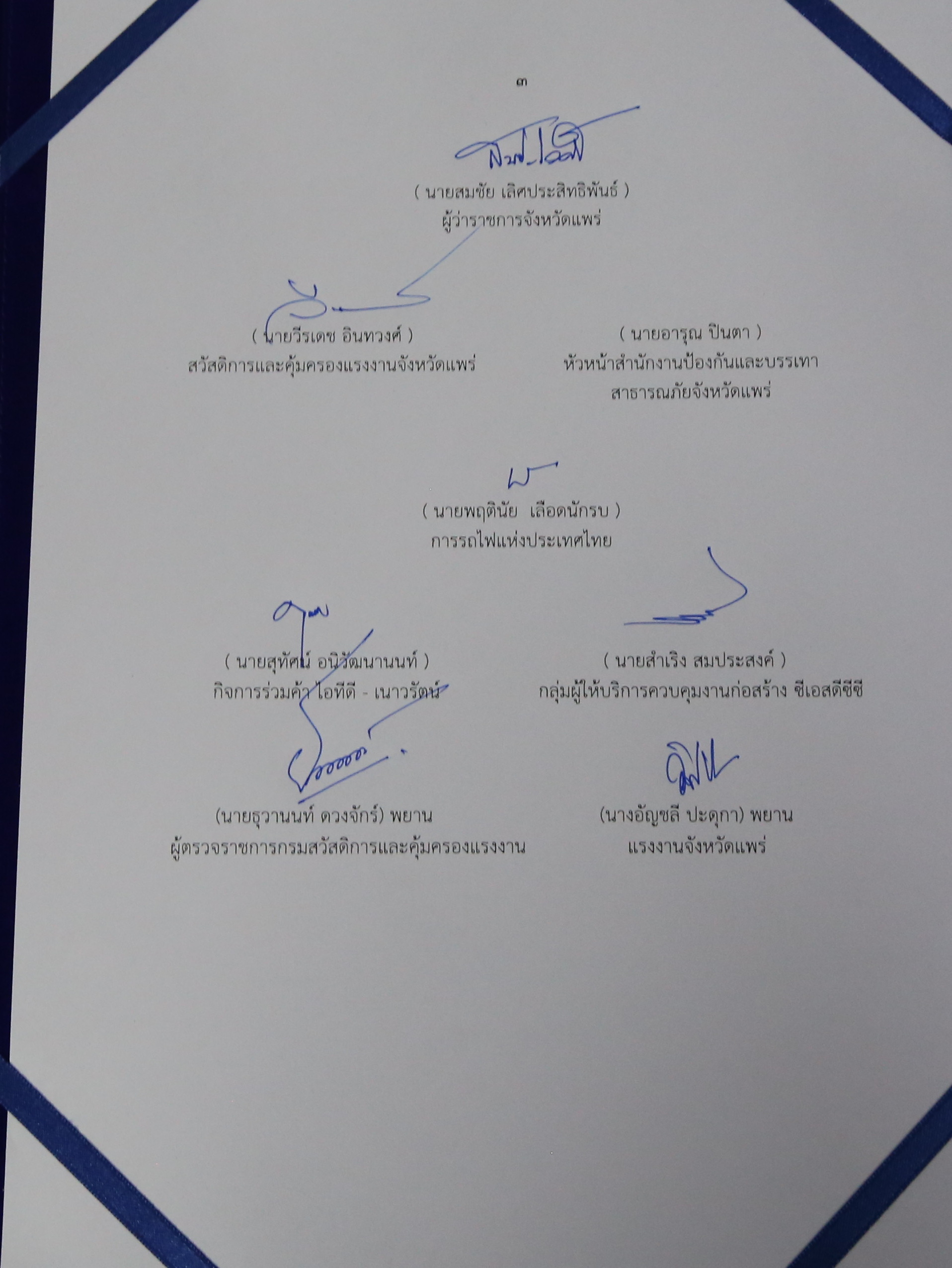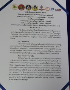 “The signing of the MOU to announce the “Safety Culture Together in the Workplace Campaign” is a collaboration between the Ministry of Labour, represented by the Department of Labour Protection and Welfare, the State Railway of Thailand, the ITD – Nawarat joint venture, and the Construction Supervision Service Provider Group, CSDC, to drive the policy to create a safety culture effectively and to spread it throughout the country,” said Mr. Boonsong.