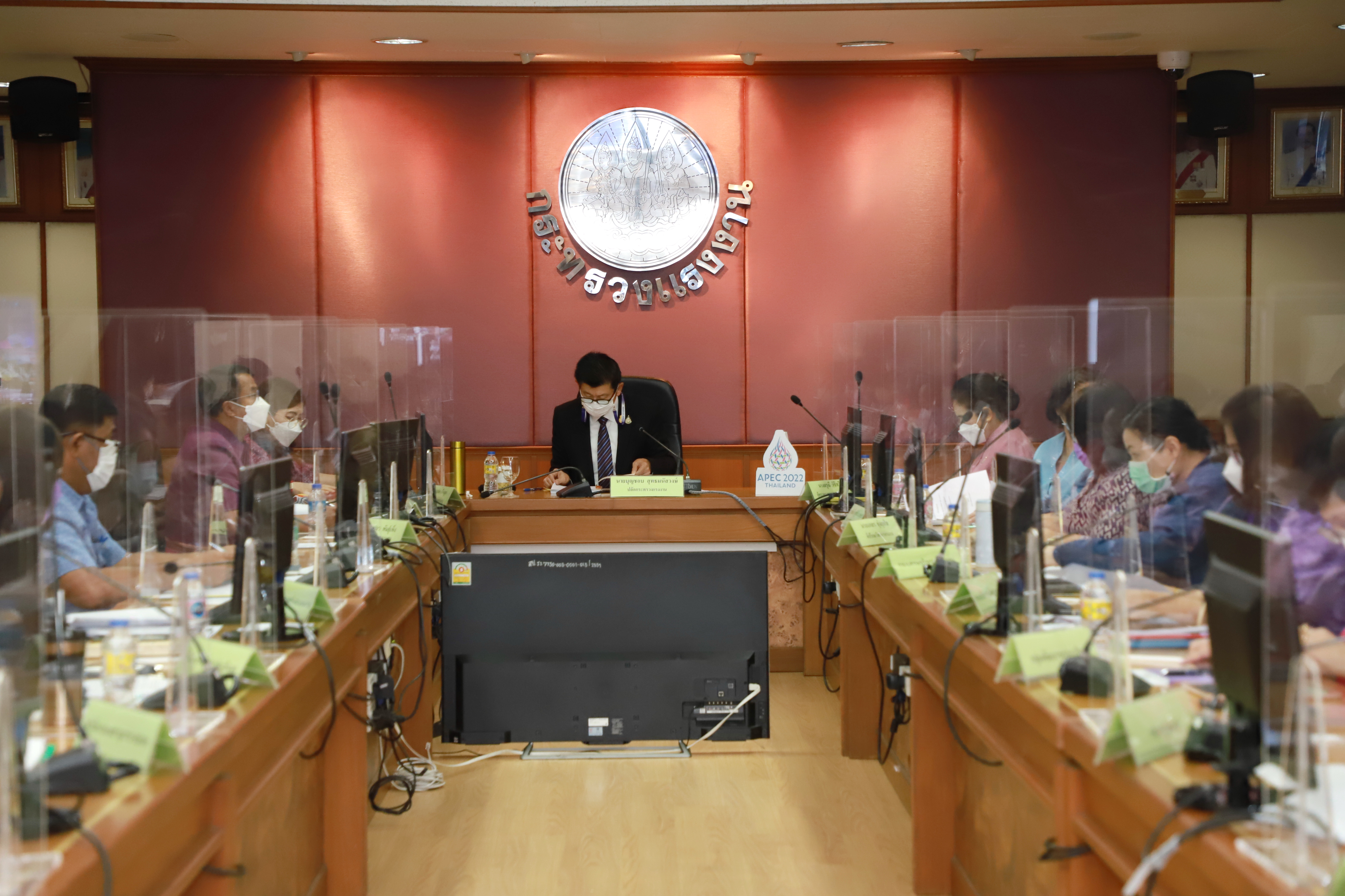 On June 21, 2022, Permanent Secretary of Labour, Mr. Boonchob Suttamanaswong, presided over the Office of the Permanent Secretary of Labour’s Meeting No. 5/2022 at the Prasong Rananant Conference Room, 5th floor, Ministry of Labour. The meeting acknowledged the report on operating results and expenditure for the 2022 fiscal year for the eight months (October 2021 – May 2022). It also considered the report on the situation of reporting indications about forced labour or services and human trafficking against labour at the provincial level, the announcement of the Open Data Integrity and Transparency Assessment (OFT) results of the Office of the Permanent Secretary of Labour for the 2022 fiscal year and minutes of the 110th International Labour Conference. It also covered the Annual Report on the Labour Situation and Trends for May 2022 and followed up on the results of the meeting following the orders of the Permanent Secretary of Labour.