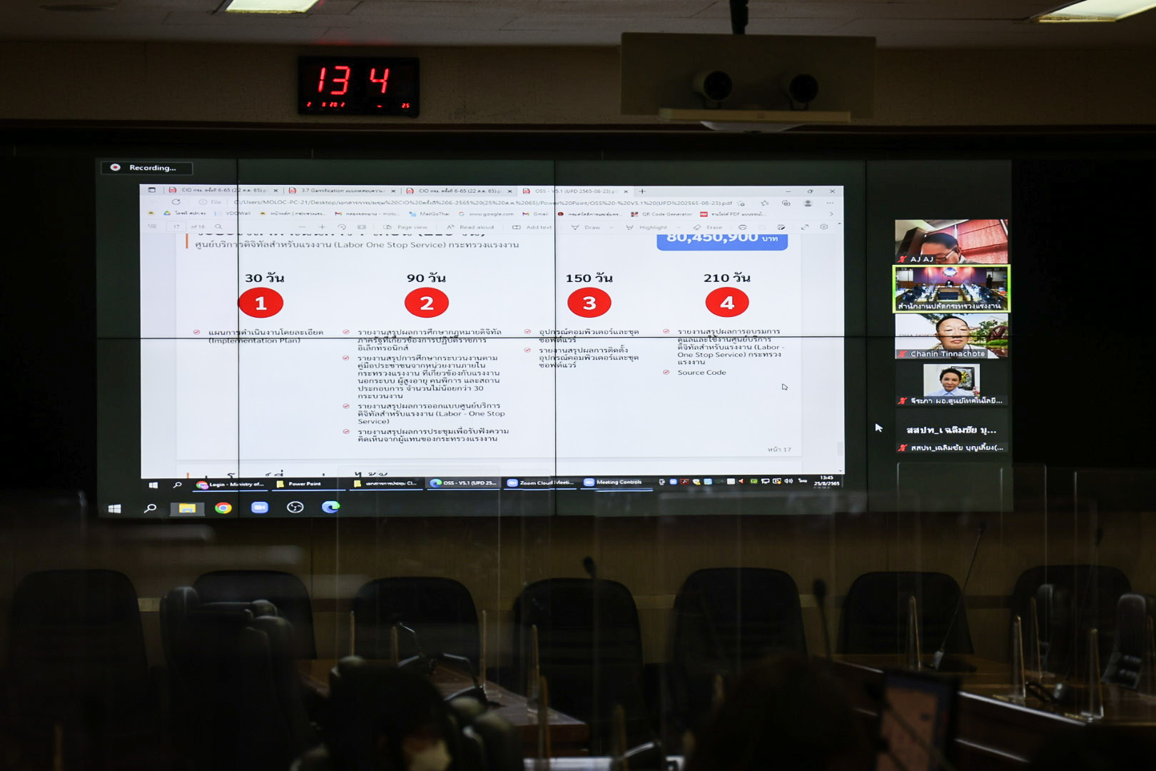 On August 25, 2022, at 13.30 hours, Permanent Secretary of Labour, Mr. Boonchob Suttamanaswong, chaired the Ministry of Labour’s Computer System Management and Procurement Committee Meeting No. 6/2022, with relevant agencies who attended the meeting via Zoom. The meeting took place at the Prasong Rananant Meeting Room, 5th Floor, Ministry of Labour. The meeting considered the project and procurement of computer equipment by requesting support for the central budget for 2022. It considered the Labour One Stop Service project by the Ministry of Labour, the database management and service platform, the development project for informal workers, the Ministry Security Operation (MSOC) project, the Disaster Recovery project by the Office of the Permanent Secretary of Labour, and the project to improve the information system to support the issuance of electronic books. The meeting provided the results of the consideration of details about the training to prepare for work under the Skill Development Promotion Act, B.E. 2545 by the Department of Skill Development, the project to improve the efficiency of the Thai recruitment system, providing jobs for job creation opportunities and careers under the gamification concept, the electronic document system development project, and the electronic office management system by the Department of Employment.