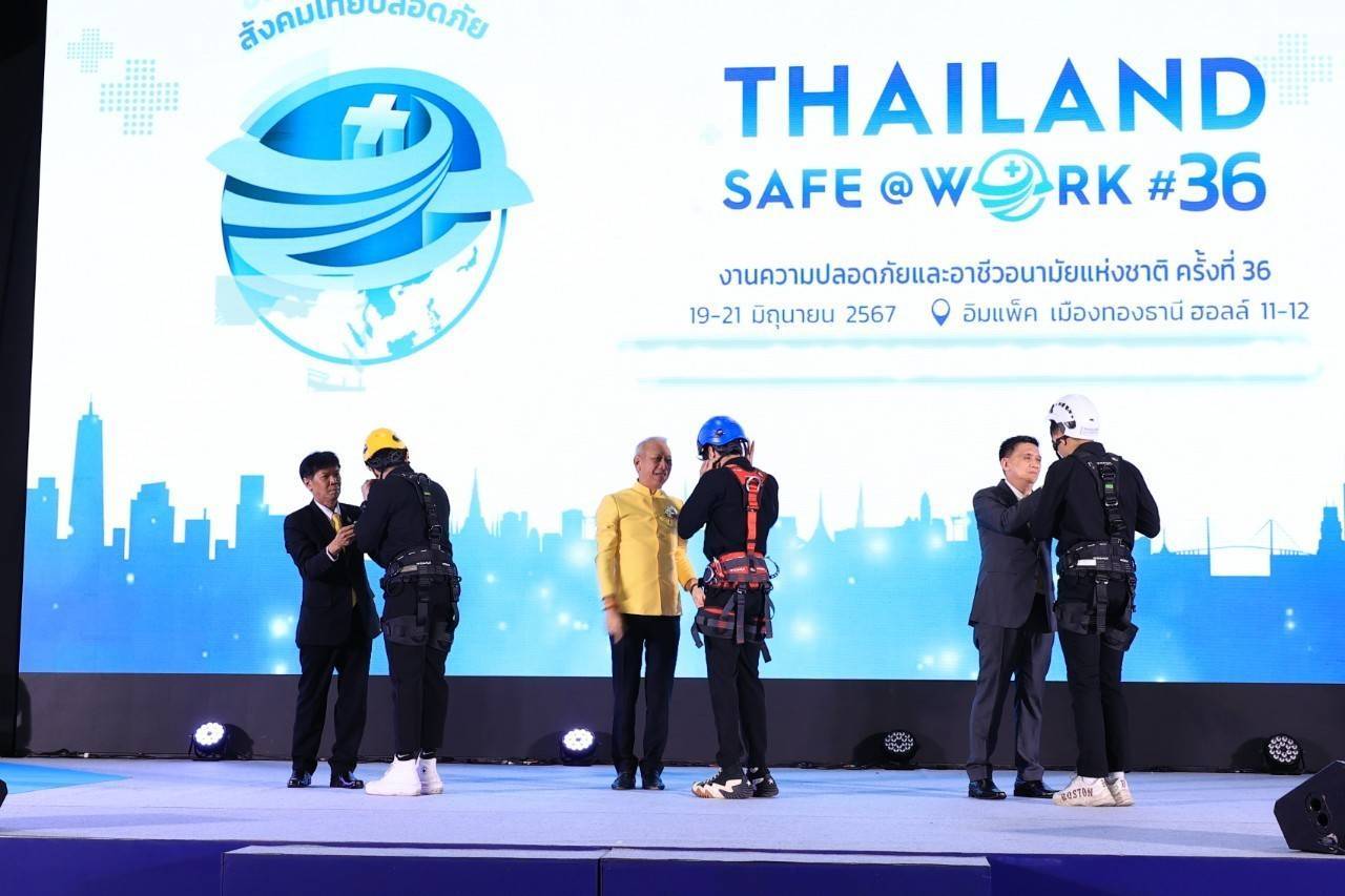 On June 19, 2024, at 09.30 hours, the Permanent Secretary of Labour, Mr. Pairoj Chotikasathien, joined in the opening ceremony of the THAILAND SAFE@WORK#36 event. The Labour Minister, Mr. Phiphat Ratchakitprakarn, commenced the event. Mr. Amnuay Phurahong, serving as Chairman of the Executive Committee of the Thailand Institute Of Occupational Safety And Health (Public Organization) reported on the objectives of the event. The Assistant to the Labour Minister, Mr. Siraphop Duangsodsri, the Secretariat to the Labour Minister, Mr. Aree Krainara, from the Prime Minister’s Secretariat’s Office, performing duties for the Ministry of Labour, Mr. Phuchong Worasri, the Ministry of Labour’s Spokesperson, Mr. Phumiphat Mueanchan, the Deputy Permanent Secretary of Labour, Mr. Wannarat Srisuksai, the Ministry of Labour’s Inspector-General, Mr. Nantachai Panyasurarit, the Ministry of Labour’s Inspector-General, Mr. Samat Pattamasukon, the Ministry of Labour’s Inspector-General, Mrs. Marasri Jairangsi, and the Ministry of Labour’s executives joined the occasion at the IMPACT Muang Thong Thani.