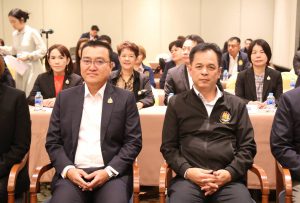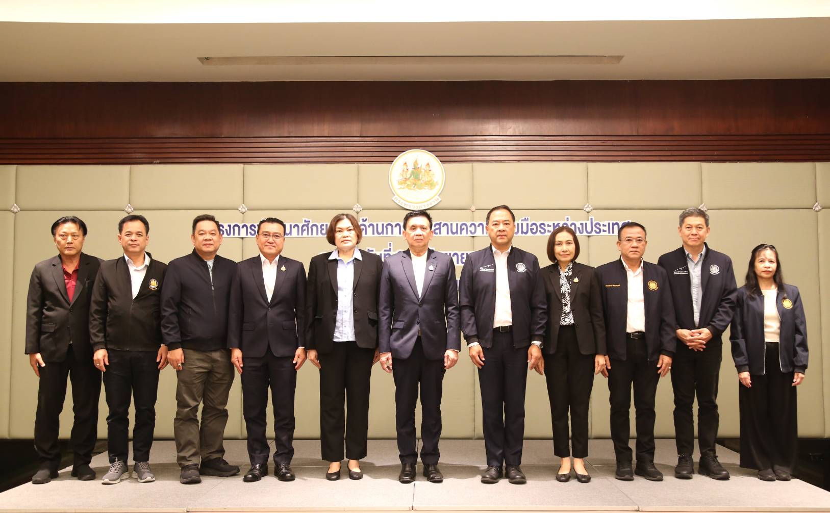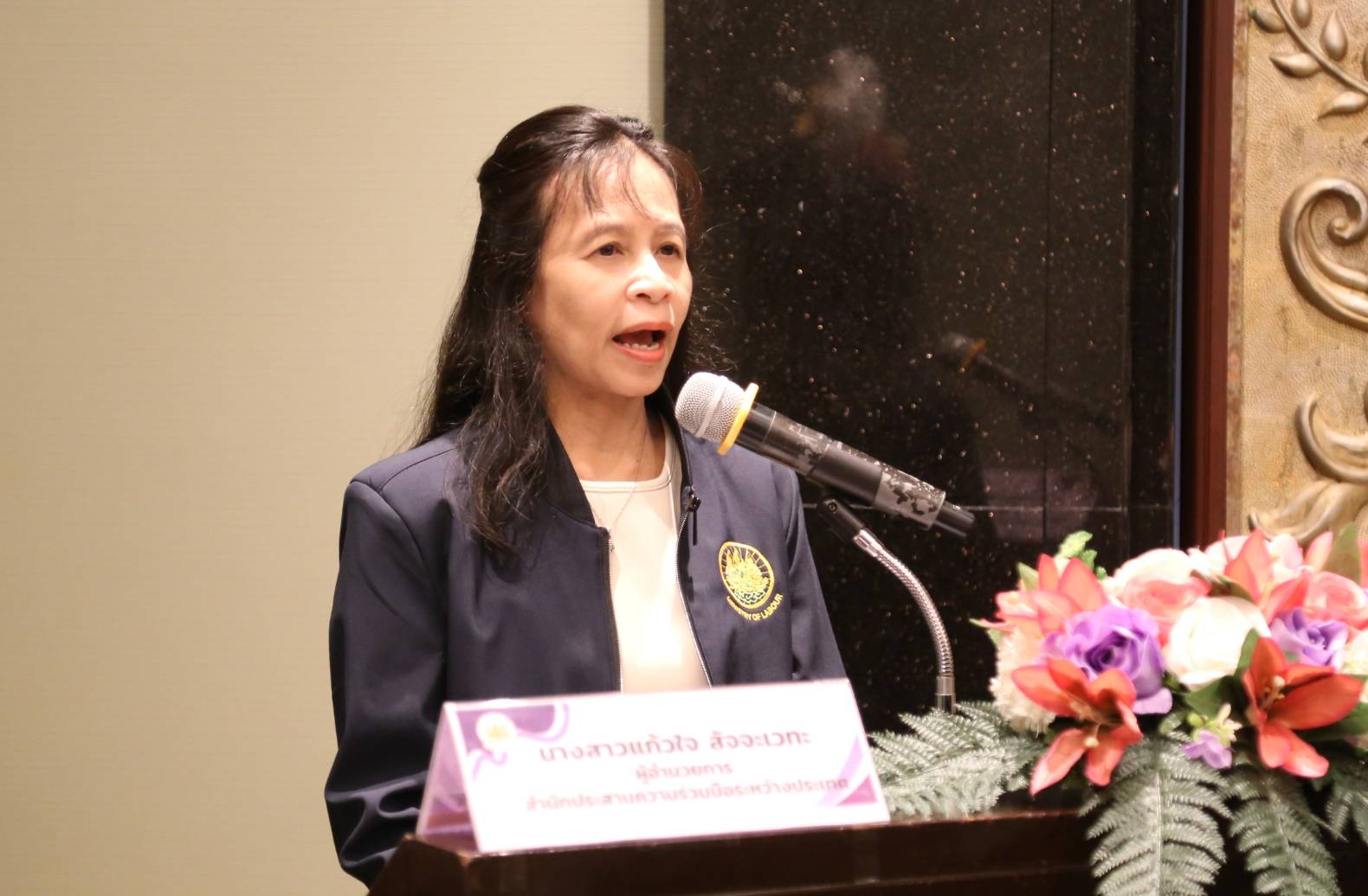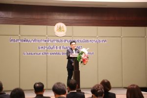 Mr. Pairoj said that he was pleased and honoured to be the chairman of the opening ceremony of the seminar under the project to develop potential in international cooperation today. International cooperation is an important mission in the current global situation; it is important in the international dimension and requires cooperation from the government and private sectors or related agencies to integrate various aspects of work, such as economy, trade, investment, labour, and human resources, both at the bilateral and multilateral levels. Therefore, international cooperation is an important mechanism to drive the economy, especially the labour economy, which plays a role in the dimension of employment, job creation, income generation, and improving the quality of life of Thai workers and their families through maintaining and expanding markets for Thai workers to work abroad. It is also an important tool in the dimension of enhancing cooperation and negotiations with friendly countries, organizations, and various business sectors.