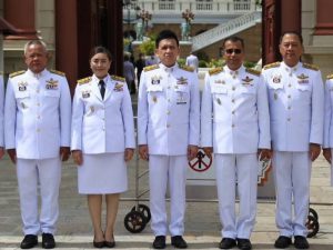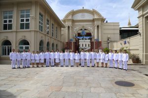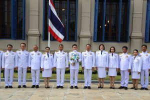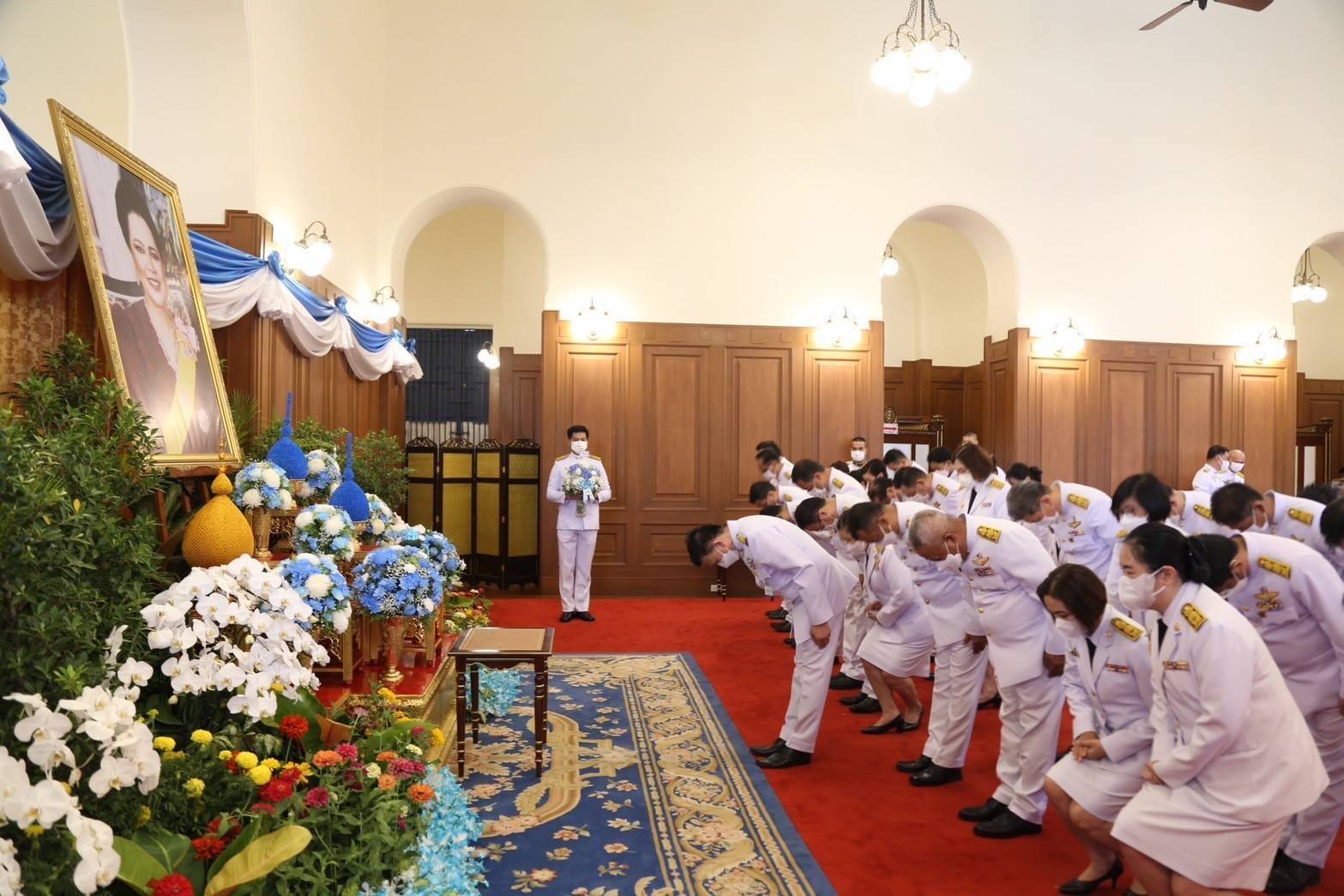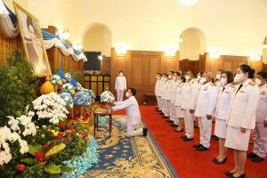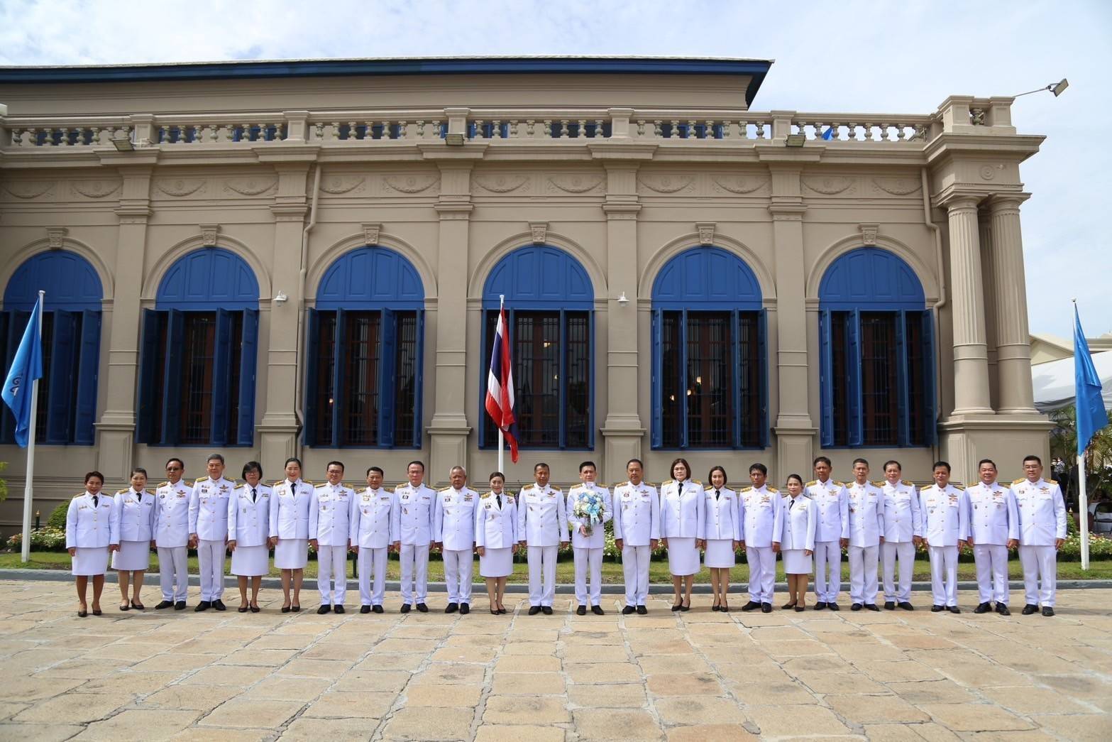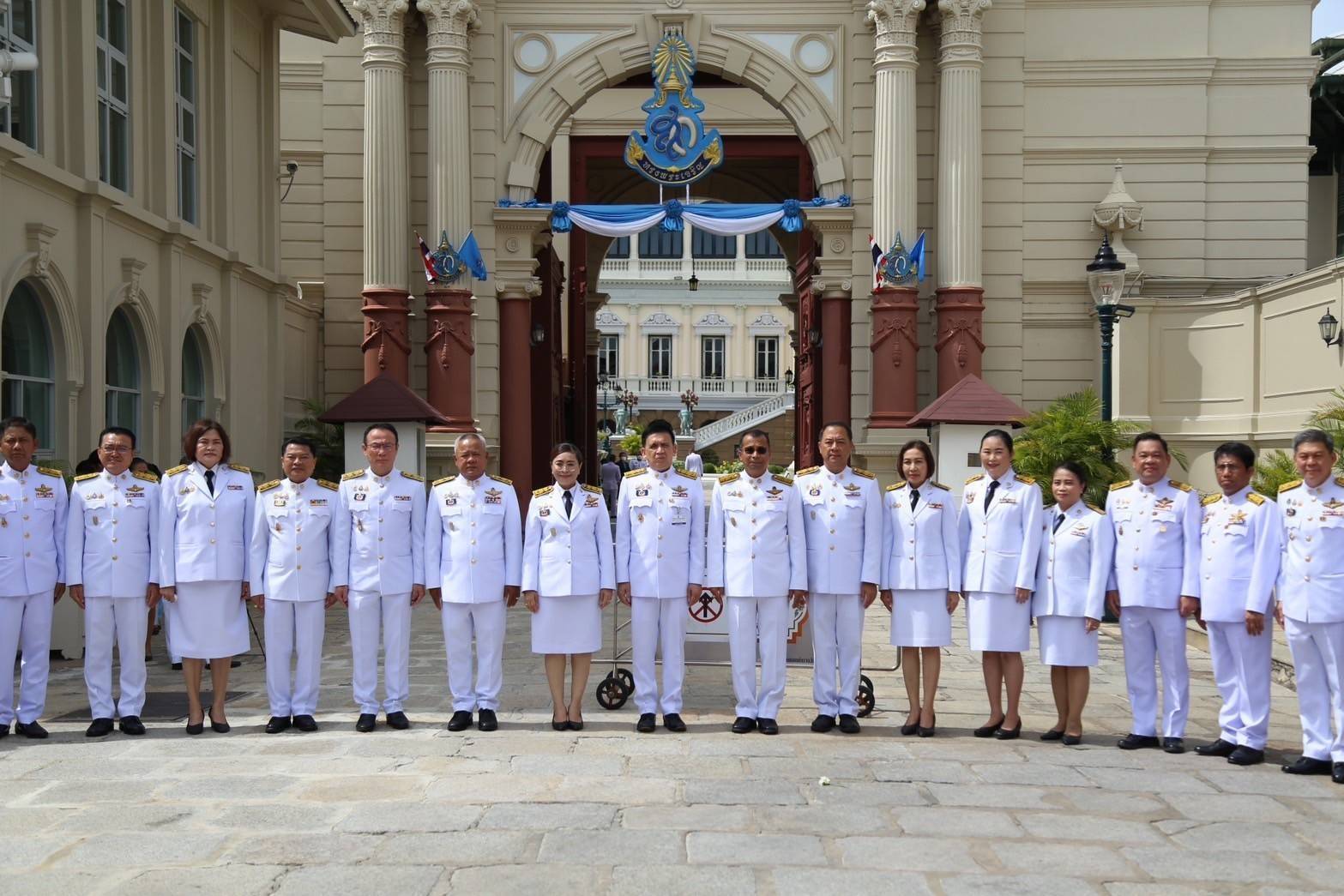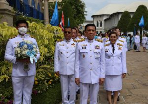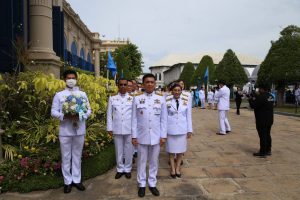 On August 12, 2024, the Permanent Secretary of Labour, Mr. Pairoj Chotikasathien, leads the Ministry of Labour’s executives to present a flower vase and sign the book to offer best wishes on the occasion of Her Majesty Queen Sirikit, the Queen Mother’s birthday. The Ministry of Labour’s executives joined the occasion at the Sahathai Samakhom Pavilion in the Grand Palace.
