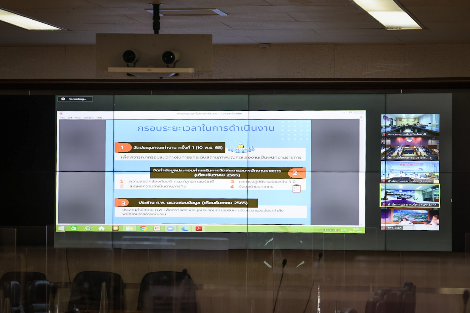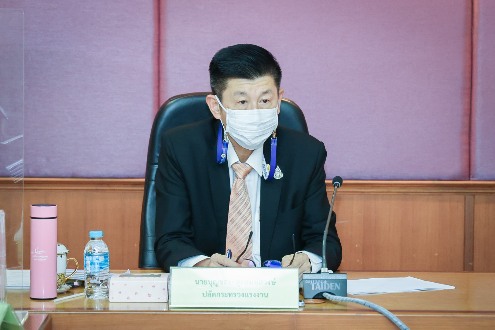 On November 10, 2022, at 15.30 hours, the Permanent Secretary of Labour, Mr. Boonchob Suttamanaswong, presided over the working group meeting to consider promoting the status of labour graduates to government staff no. 1/2022. The Deputy Permanent Secretary of Labour, Mrs. Bubpha Phanpeng, the Ministry of Labour’s Inspector-General, Mr. Samat Pattamasukon, and relevant agencies under the Office of the Permanent Secretary of Labour attended the meeting at the Prasong Rananant meeting room, 5th floor, Ministry of Labour. The meeting considered the guidelines for preparing the new government employee rate framework.
