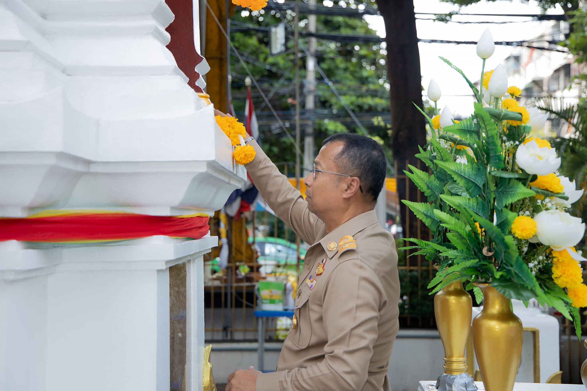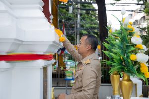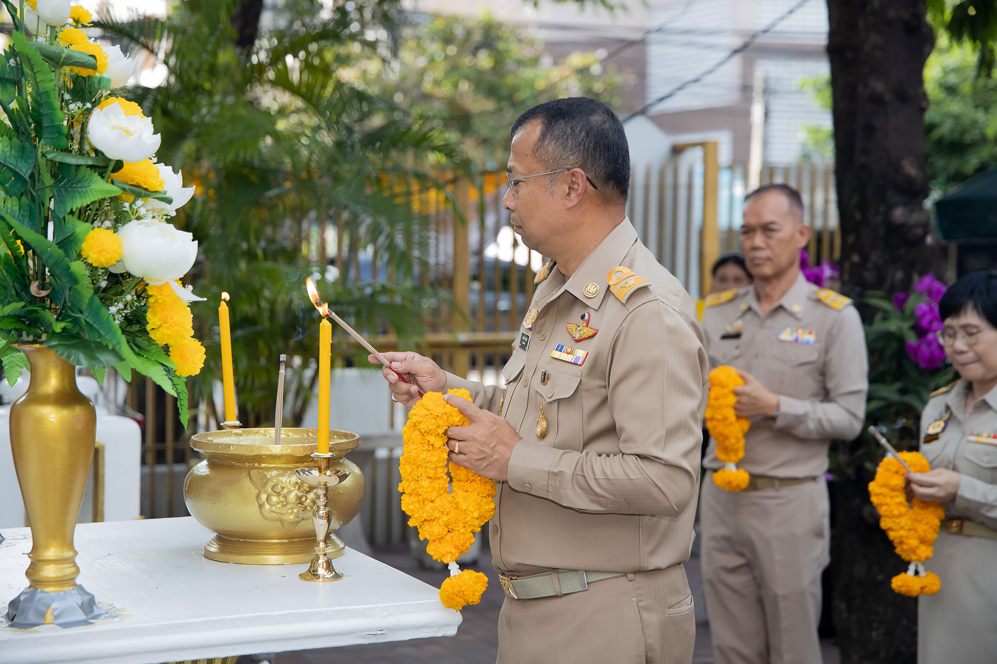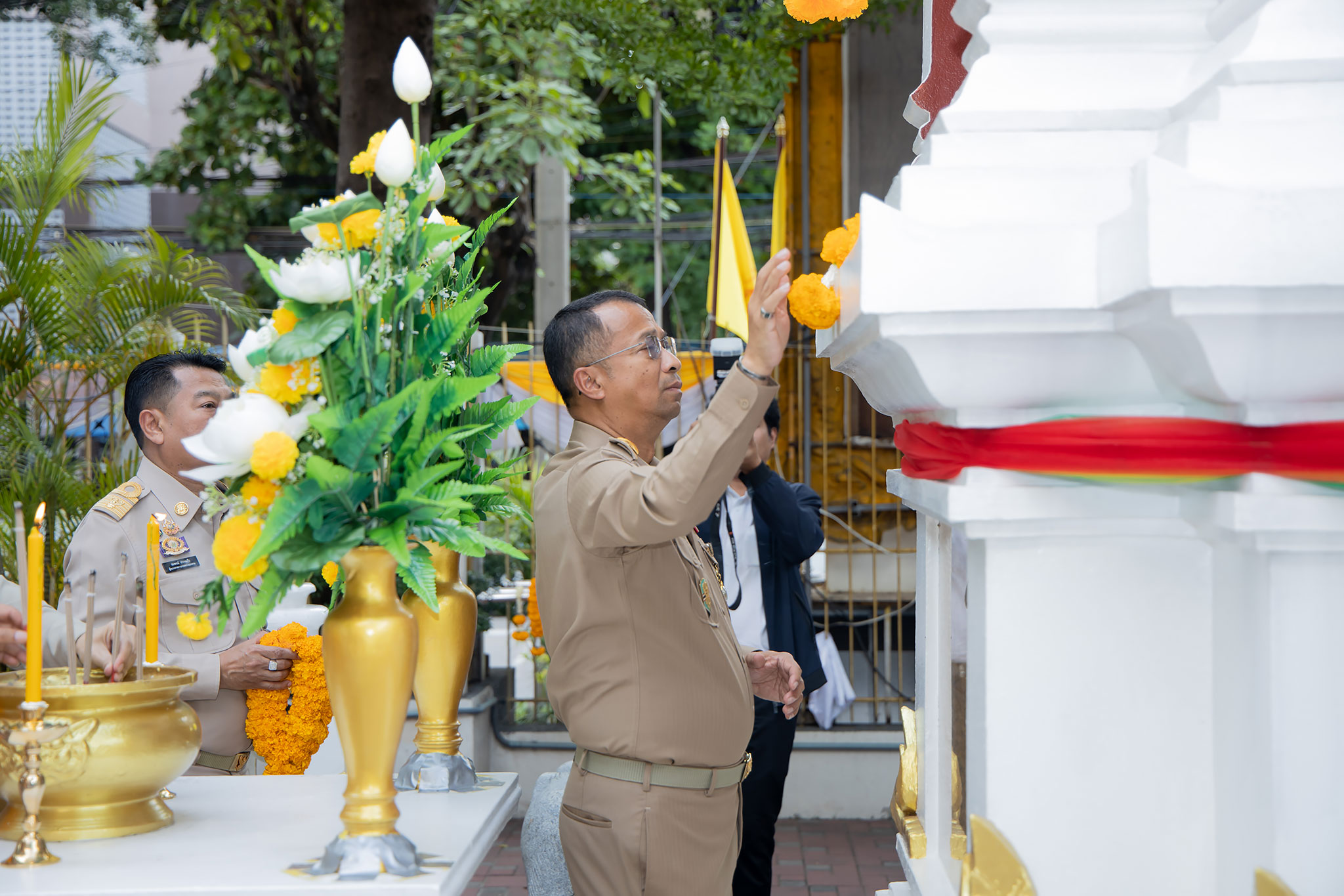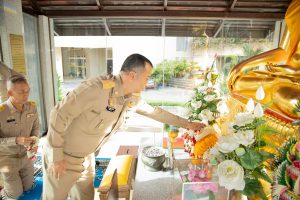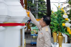 On September 30, 2024, at 16.00 hours, the Permanent Secretary of Labour, Mr. Pairoj Chotikasathien, the Deputy Permanent Secretaries of Labour, Mr. Wannarat Srisuksai, the Ministry of Labour’s Inspector-General, Mr. Somphon Kwangkaew, and the Ministry of Labour’s executives paid homage to the sacred objects of the Ministry of Labour, including the Thao Maha Phrom Thewarit Shrine, the Pho Pu Chai Mongkol Shrine, and Phra Phuttha Sutthithammabophit on the occasion of retirement in 2024. Senior executives, civil servants, and officials of agencies under the Ministry of Labour joined the ceremony at the Ministry of Labour.