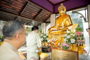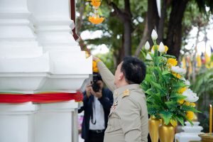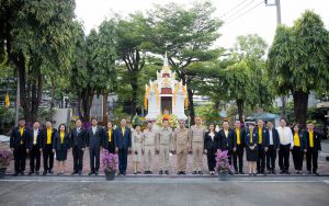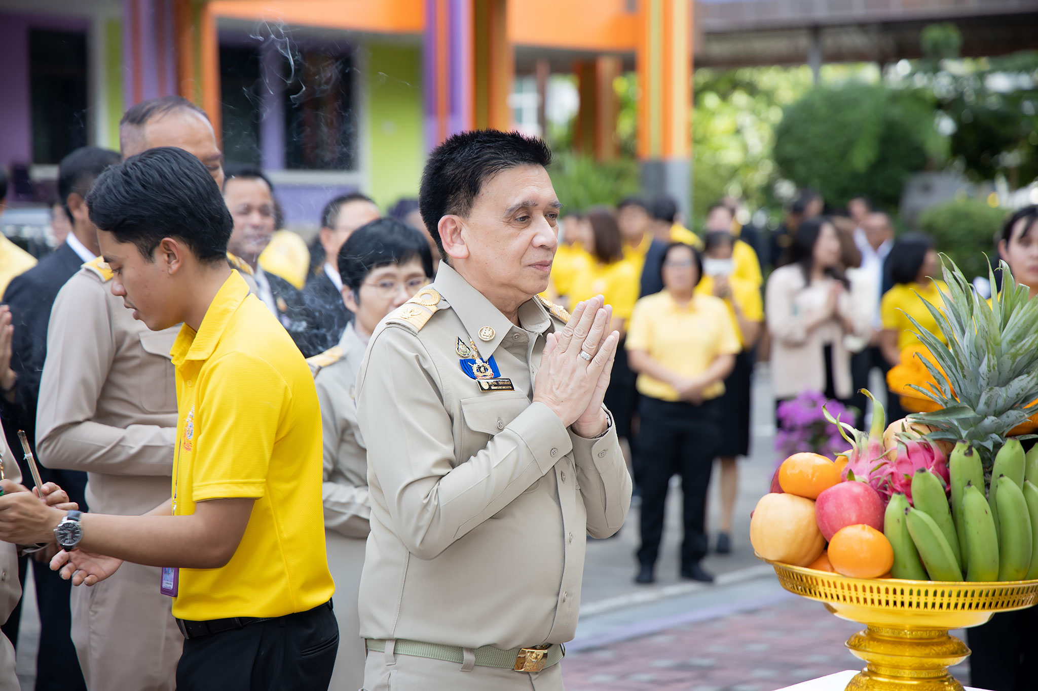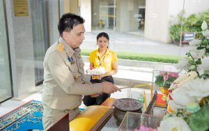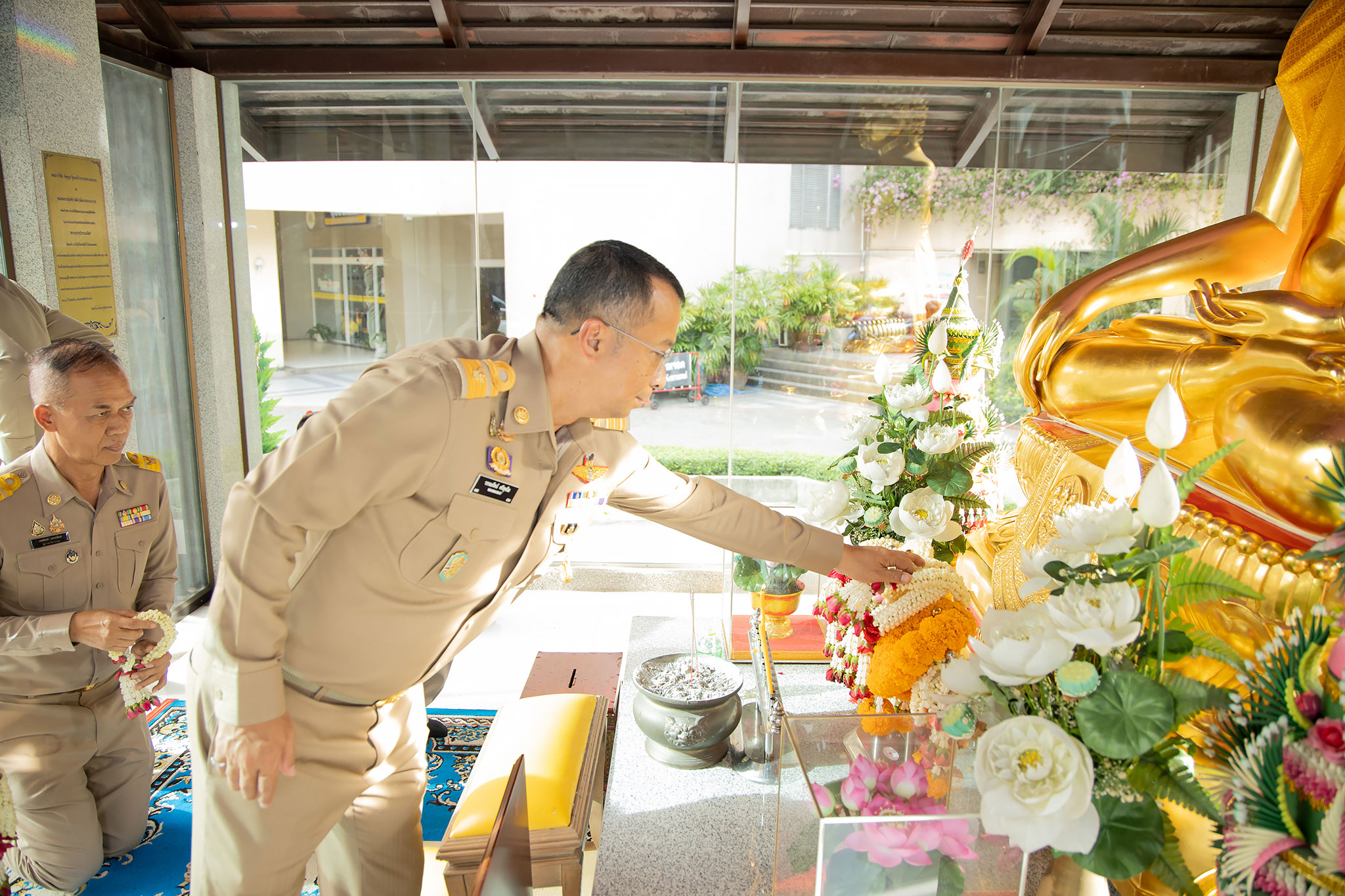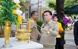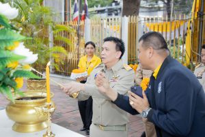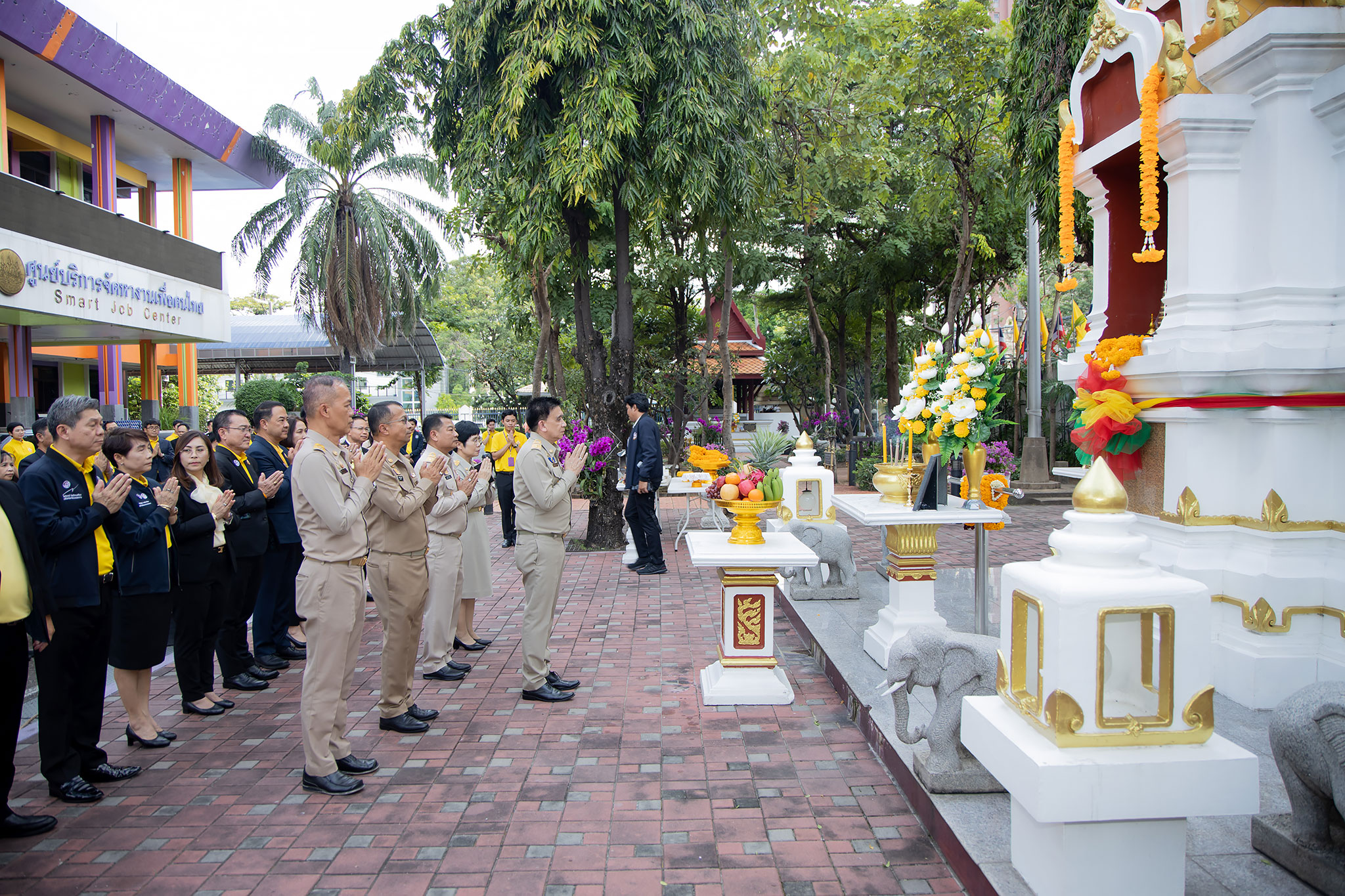On September 30, 2024, at 16.00 hours, the Permanent Secretary of Labour, Mr. Pairoj Chotikasathien, the Deputy Permanent Secretaries of Labour, Mr. Wannarat Srisuksai, the Ministry of Labour’s Inspector-General, Mr. Somphon Kwangkaew, and the Ministry of Labour’s executives paid homage to the sacred objects of the Ministry of Labour, including the Thao Maha Phrom Thewarit Shrine, the Pho Pu Chai Mongkol Shrine, and Phra Phuttha Sutthithammabophit on the occasion of retirement in 2024. Senior executives, civil servants, and officials of agencies under the Ministry of Labour joined the ceremony at the Ministry of Labour.