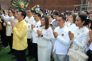 Mr. Pairoj continued that the grand Buddha consecration ceremony of the Luang Pu Thuat Treading on the Seawater, Ministry of Labour 2024, this time received good cooperation from all sectors. Most importantly, he thanked Phra Wachirayanawisit (Suriyan Kosapanyo), Assistant Abbot of Wat Mahachaiwanaram (Wat Pa Wang Nam Yen), Maha Sarakham Province, for supporting the occasion. This will be something that will help the minds of Thai workers to work abroad and achieve tangible results.