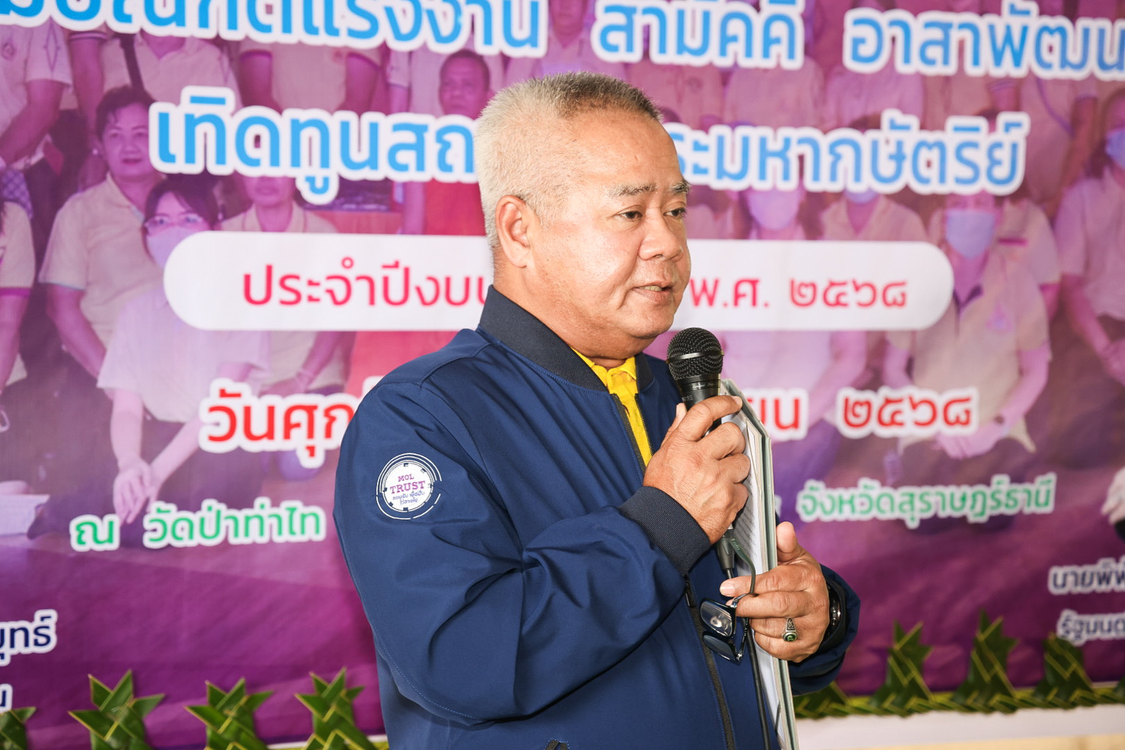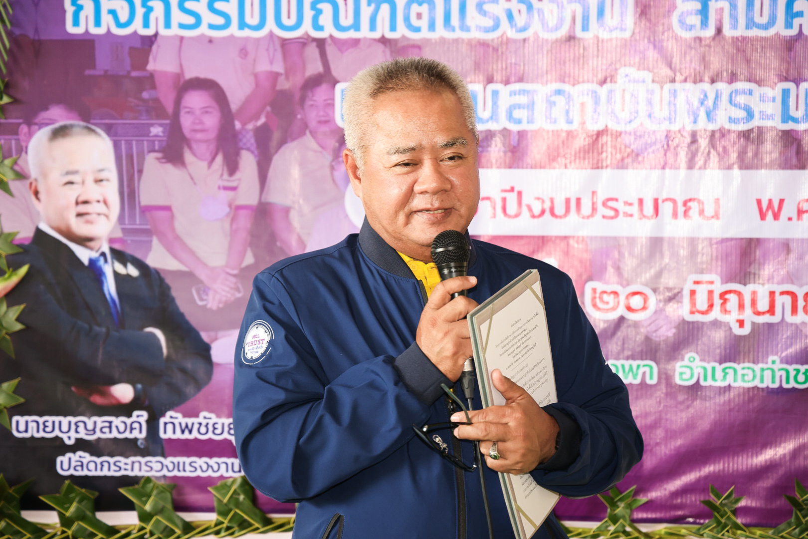June 20, 2025, 14.00 hours – Mr. Boonsong Thapchaiyut, Permanent Secretary of Labour, presided over the opening ceremony of the Labour Graduate Service Efficiency Enhancement Project in Surat Thani Province for the fiscal year 2025. The project included the activities of United Labour Graduates, Volunteers for Community Development, and Uphold the Monarchy. The event was held at Wat Pa Tha Thai, Khlong Pha Subdistrict, Tha Chana District, Surat Thani Province, with opening remarks delivered by Mrs. Rattana Thawon, Surat Thani Provincial Labour Officer.