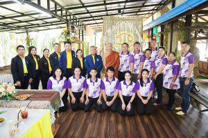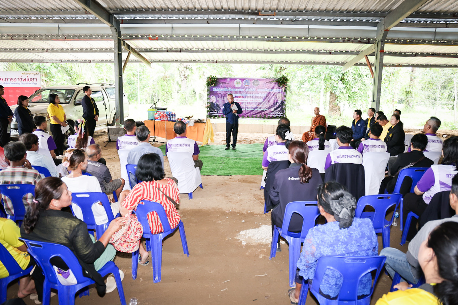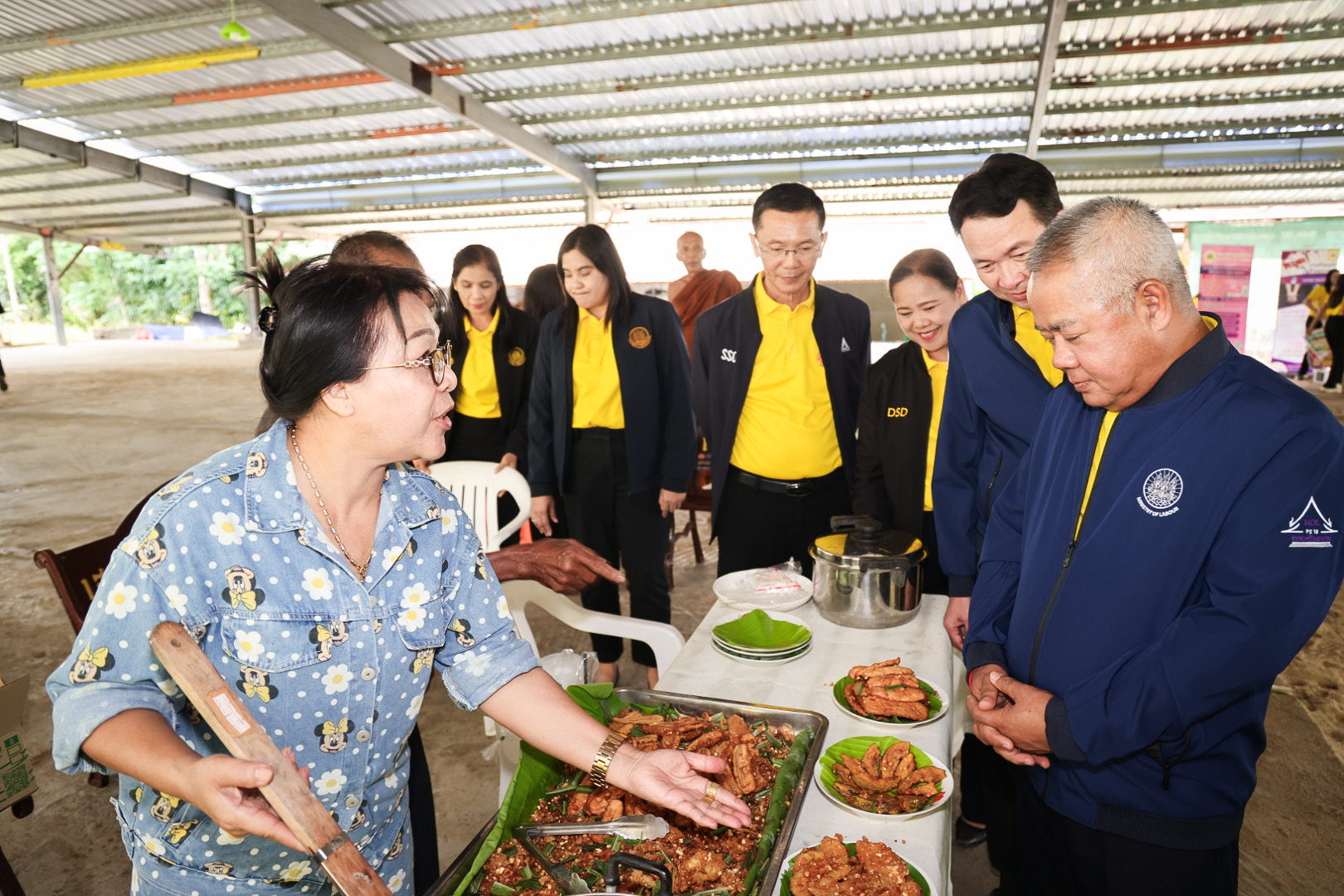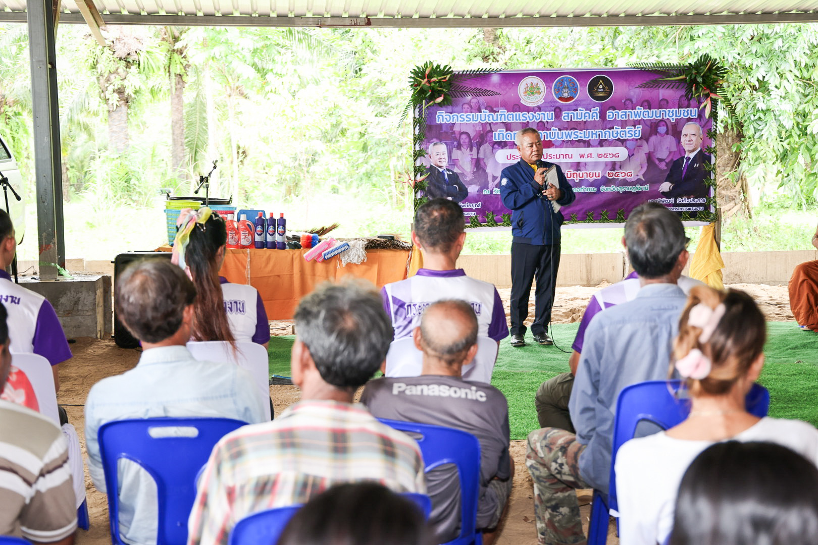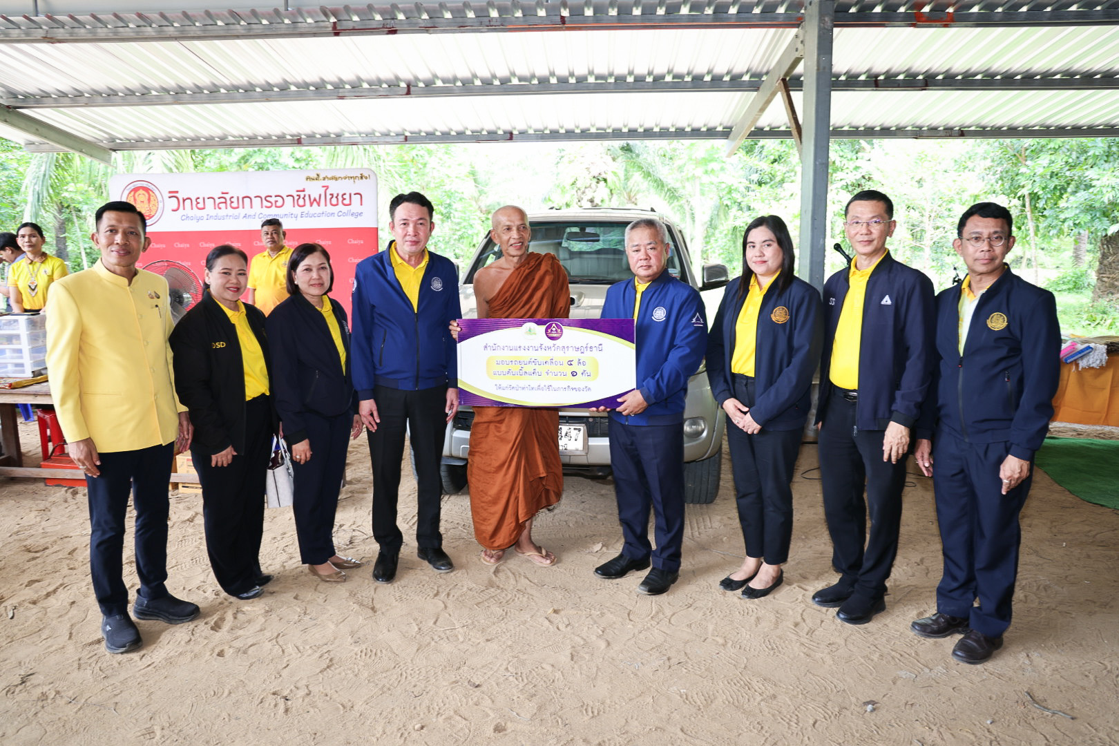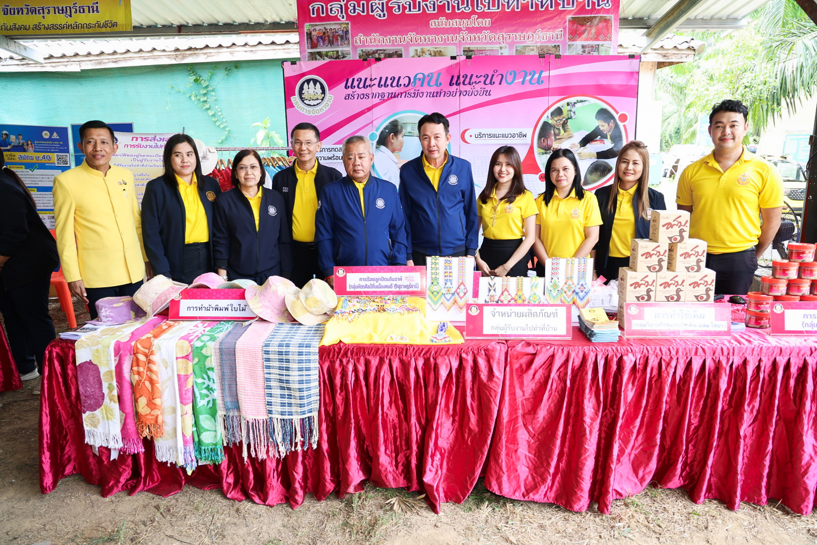 Following the event, Mr. Boonsong Thapchaiyut, Permanent Secretary of Labour, presented an official vehicle and office equipment from the Surat Thani Provincial Labour Office to Wat Pa Tha Thai. He visited exhibition booths of affiliated labour agencies and partner networks, participated in community service activities to develop the temple grounds, and met with labour graduates and volunteers from the area and neighboring communities to listen to their concerns and provide operational guidance.