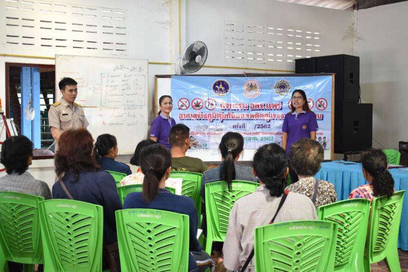 Today (February 4, 2019), Provincial Labour Office of Phrae Ms. Pranee Chalarak, assigned provincial labour volunteers and networks in 4 areas, including Huay Mai subdistrict, Hua Muang subdistrict, Song district, Mae Yang Tan subdistrict, Rong Kwang district and Wang Luang subdistrict, Nong Muang Khai district to organize the “Phrae provincial labour volunteers building abstinence from drugs in the informal sector 2019″ activities. The program is organized under intensive operations in drug prevention and resolution from the governor of Phrae province. On this occasion, there were 75 informal workers registered to listen to the information, most of which were farmers.