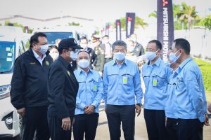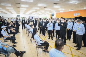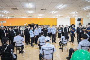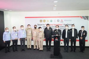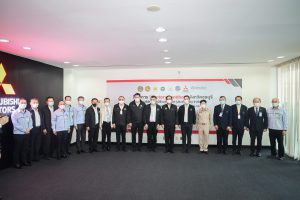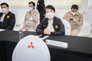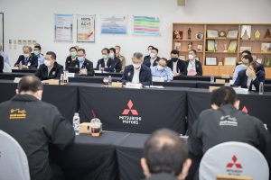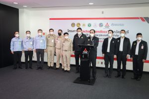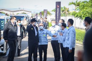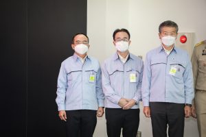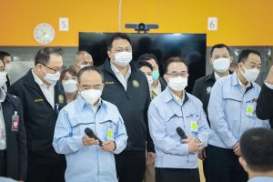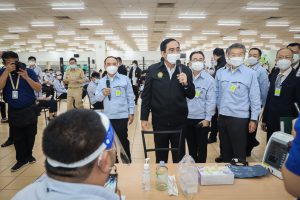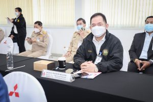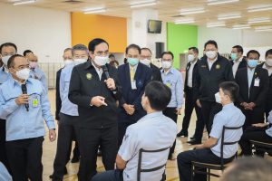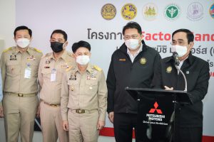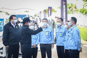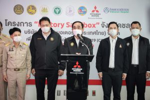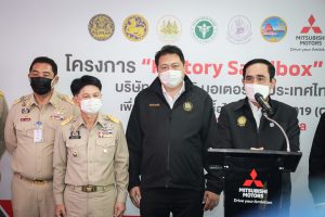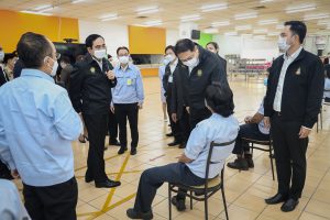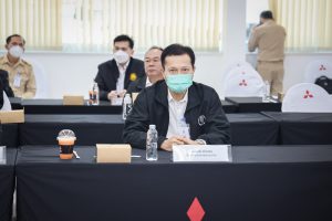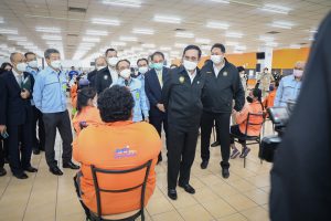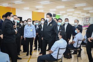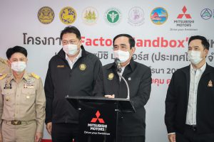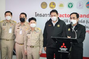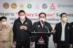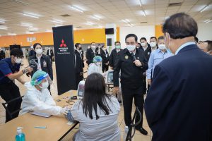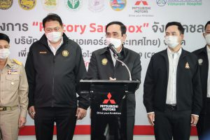 On September 17, 2021, Prime Minister and Minister of Defense General Prayuth Chan-ocha visited to follow up on the Factory Sandbox project at Mitsubishi Motor Company Limited (Laem Chabang), Thung Sukla Subdistrict, Sriracha District, Chonburi Province. Labour Minister Mr. Suchart Chomklin, Chonburi Provincial Governor Mr. Pakrathorn Thienchai, Chairman of Mitsubishi Motors (Thailand) Co., Ltd. Mr. Chokki Morikazu and the delegation gave a welcoming, together with other senior executives from the Ministry of Labour. General Prayuth said that the COVID-19 pandemic had affected the world and in all sectors. The government and private sector must work together to drive the country forward, create jobs, and build investor confidence. He thanked the Ministry of Labour, the Ministry of Interior, the Ministry of Public Health, and the Ministry of Industry for working together to integrate the government’s efforts in helping and healing those affected by COVID-19. The government has made vaccinations a national agenda to build immunity among Thai people by starting a Kickoff on June 7, 2021. He thanked all parties involved in driving the government’s national agenda.