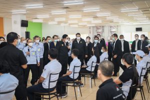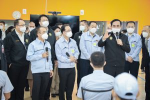 General Prayuth spoke about past investments in Chonburi. He said that there had been enormous investments in infrastructure to drive the economy, especially the development of logistics, including the high-speed rail project connecting three airports and the development of the new port phase. This is to make the EEC a HUB for trade and investment within the region, increase the country’s competitiveness and promote the future industry, following the 20-year national strategy. The Ministry of Labour has contributed to vaccinating insured persons in the workplace, providing remedies for insured persons affected by lockdown measures, under Sections 33, 39, and 40, and worker campsites. Therefore, he emphasized the following key issues: 1) To systematically monitor the “Factory Sandbox” project and prevent the spread of COVID-19, especially the Bubble and Seal operation to provide organized supervision. 2) Drive vaccinations to insured persons to supervise and organize the services thoroughly, especially in high-risk areas, to prevent the spread of COVID-19. 3) Provide remedies for employers and insured persons under Section 33 in businesses affected by government measures in the most restrictive and controlled areas, and to provide effective remedial payment services and Section 40 groups, that must check their eligibility for remedies, to publicize this widely so that insured persons receive assistance to survive the situation.