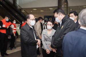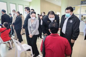 On this occasion, the Prime Minister and his delegation visited the operations of the staff at the COVID-19 vaccination service area on the 3rd floor of Ramathibodi Chakri Naruebodin Hospital, then listened to the progress report of the Chakri Naruebodin Medical Institute, Ramathibodi Chakri Naruebodin Hospital, the Queen Sirikit Learning Center and the progress on the Rama-Tanarak Senior Housing project. The Dean of the Faculty of Medicine at Ramathibodi Hospital and the Director of Ramathibodi Chakri Naruebodin Hospital gave the report. The Prime Minister and the delegation also met with relevant agencies on water management and the problem of flooding in Samut Prakan Province and delivered policies and orders.