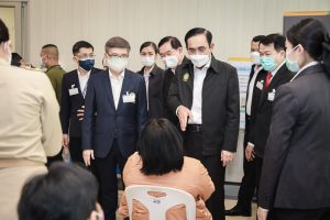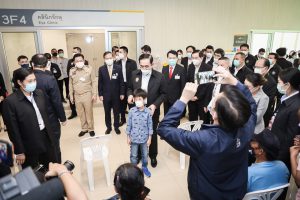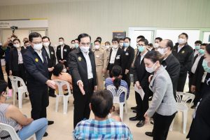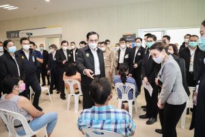 On September 12, 2021, Prime Minister and Minister of Defense General Prayuth Chan-ocha visited the Chakri Naruebodin Medical Institute, Faculty of Medicine Ramathibodi Hospital at the Ramathibodi Chakri Naruebodin Hospital Building, Bang Phli District, Samut Prakan Province. Minister of the Interior General Anupong Paochinda, Labour Minister Mr. Suchart Chomklin, and the Ministry of Labour’s executives from relevant departments joined the occasion.
