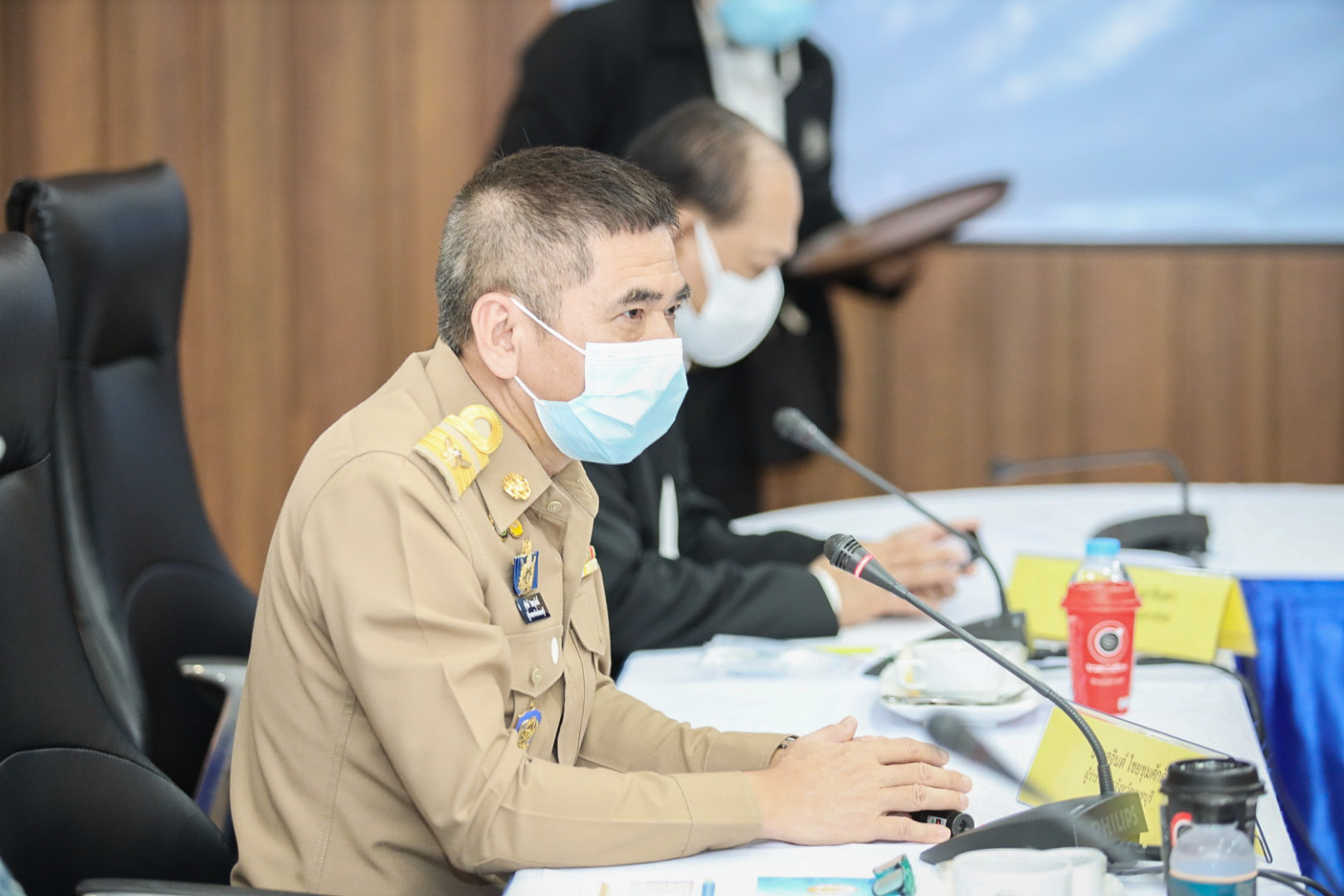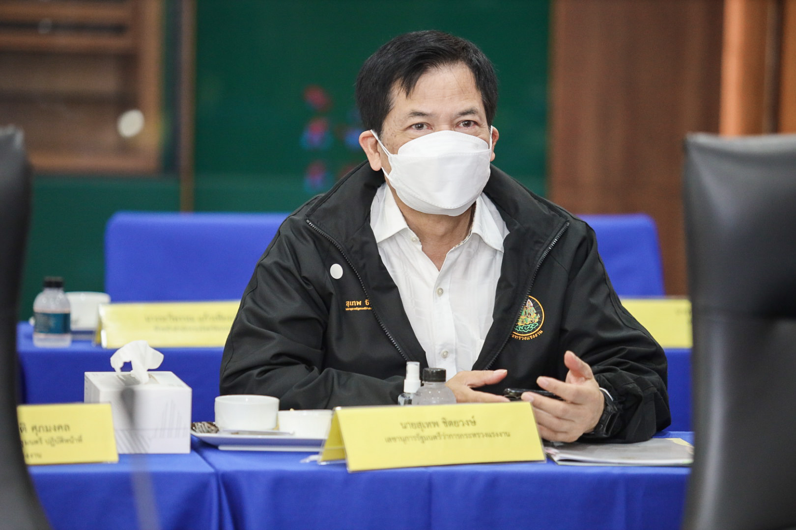 General Prayuth continued that the Ministry of Labour is one of the core agencies driving vaccinations as a national agenda. The Ministry of Labour has contributed to vaccinating insured persons in the workplace, providing remedies for insured persons affected by lockdown measures, under Sections 33, 39, and 40, and worker campsites. Therefore, he emphasized the following key issues: 1) To systematically monitor the Factory Sandbox project and prevent the spread of COVID-19, especially the Bubble and Seal operation to provide organized supervision. 2) Drive vaccinations to insured persons. 3) Provide remedies for employers and insured persons under Section 33 in businesses affected by government measures in the most restrictive and controlled areas, and to provide effective remedial payment services and Section 40 groups that must check their eligibility for remedies, to publicize this widely so that insured persons receive assistance to survive the situation.