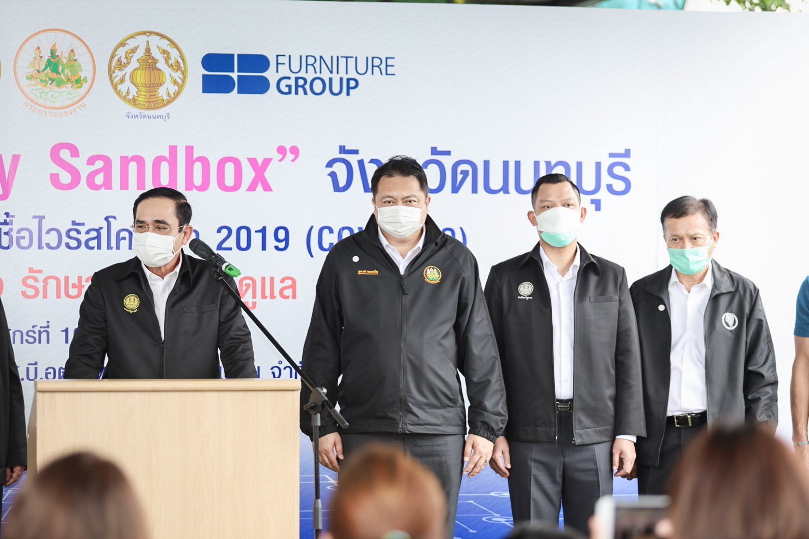 On September 10, 2021, Prime Minister and Minister of Defense General Prayuth Chan-ocha visited to follow up on the Factory Sandbox project at SB Furniture Industry Co., Ltd., Lahan Subdistrict, Bang Bua Thong District, Nonthaburi Province. Labour Minister Mr. Suchart Chomklin, Permanent Secretary of Labour Mr. Suthi Sukosol, Nonthaburi Provincial Governor Mr. Suchin Chaichumsak, Executive Chairman of SB Furniture Industry Co., Ltd Mr. Saraya Chavaldit and other senior executives from the Ministry of Labour also joined the occasion. General Prayuth said that the COVID-19 pandemic had affected the world and in all sectors. The government and private sector must work together to drive the country forward, create jobs, and build investor confidence. He thanked the Ministry of Labour, the Ministry of Interior, the Ministry of Public Health, and the Ministry of Industry for working together to integrate the government’s efforts in helping and healing those affected by COVID-19. The government has made vaccinations a national agenda to build immunity among Thai people by starting a Kickoff on June 7, 2021. He thanked all parties involved in driving the government’s national agenda.