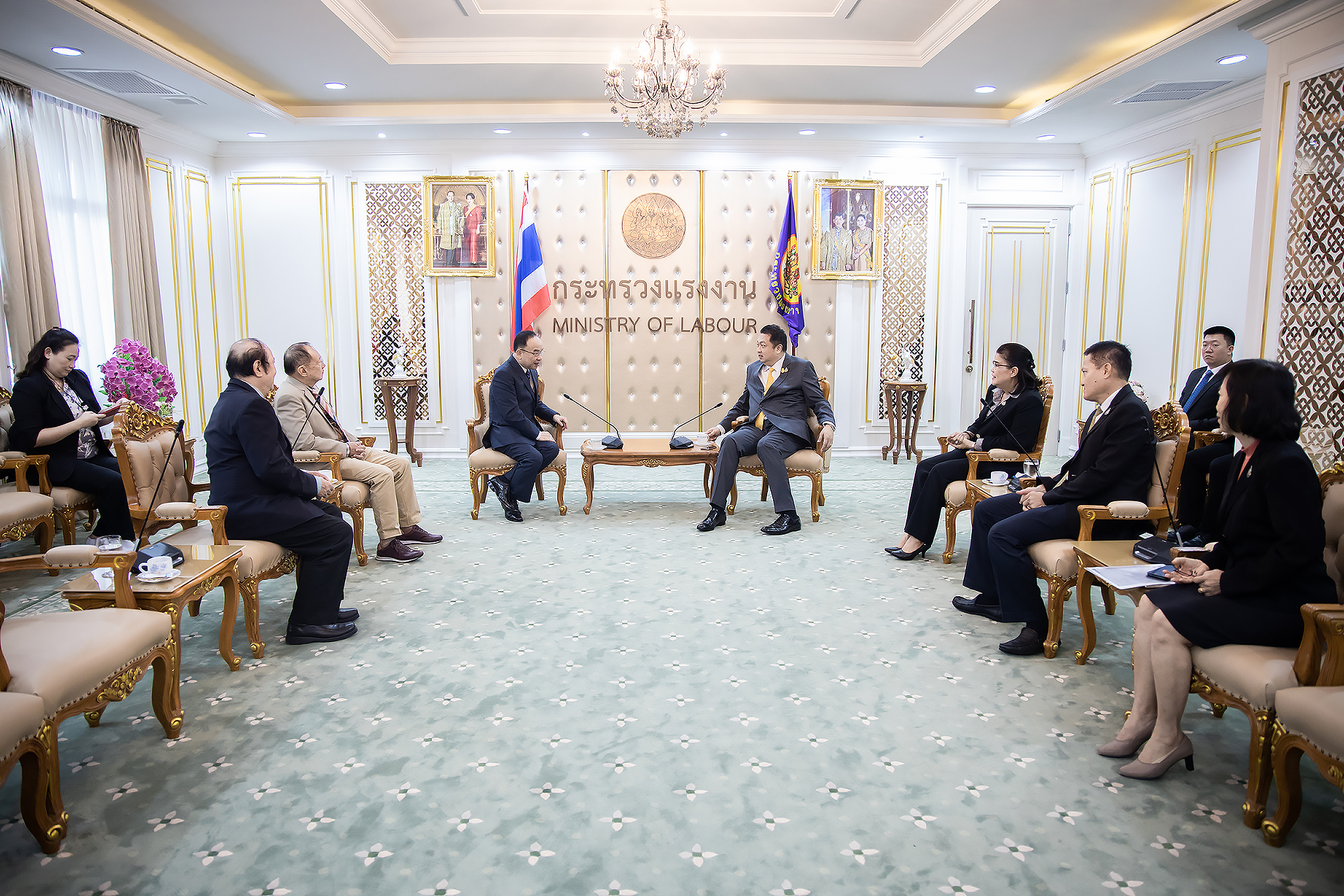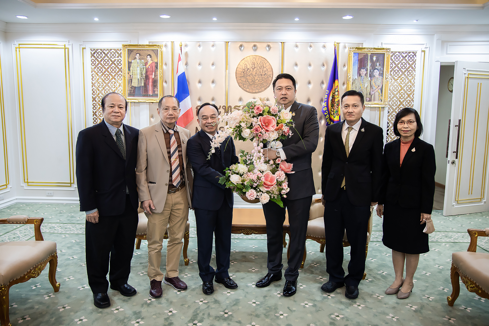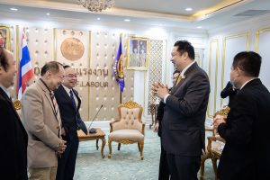 On October 7, 2020, Labour Minister Mr. Suchart Chomklin welcomed the President of the Private Hospital Association MD Prof. Dr. Chalerm Harnpanit and committee, in a meeting to congratulate the Labour Minister on appointment to his position. The visiting committee also acknowledged labour policies and recommendations from the Labour Minister to guide medical services and coordination between the public and private sectors. The efforts aim to achieve national policies and strategies effectively. The meeting took place at the Chatumongkol Room, 6th floor, Ministry of Labour. Permanent Secretary of Labour Mr. Suthi Sukosol also joined the occasion to welcome the committee.