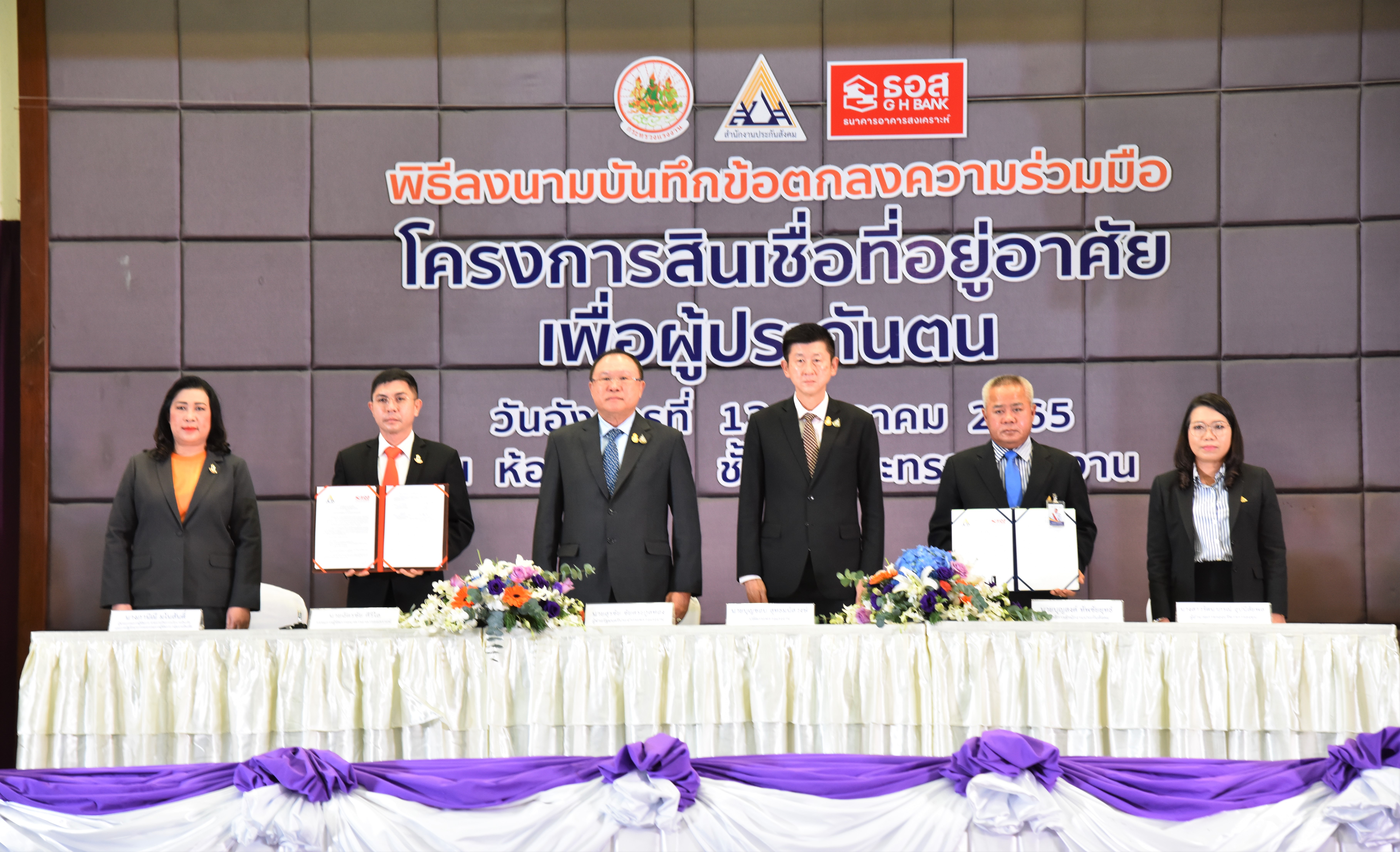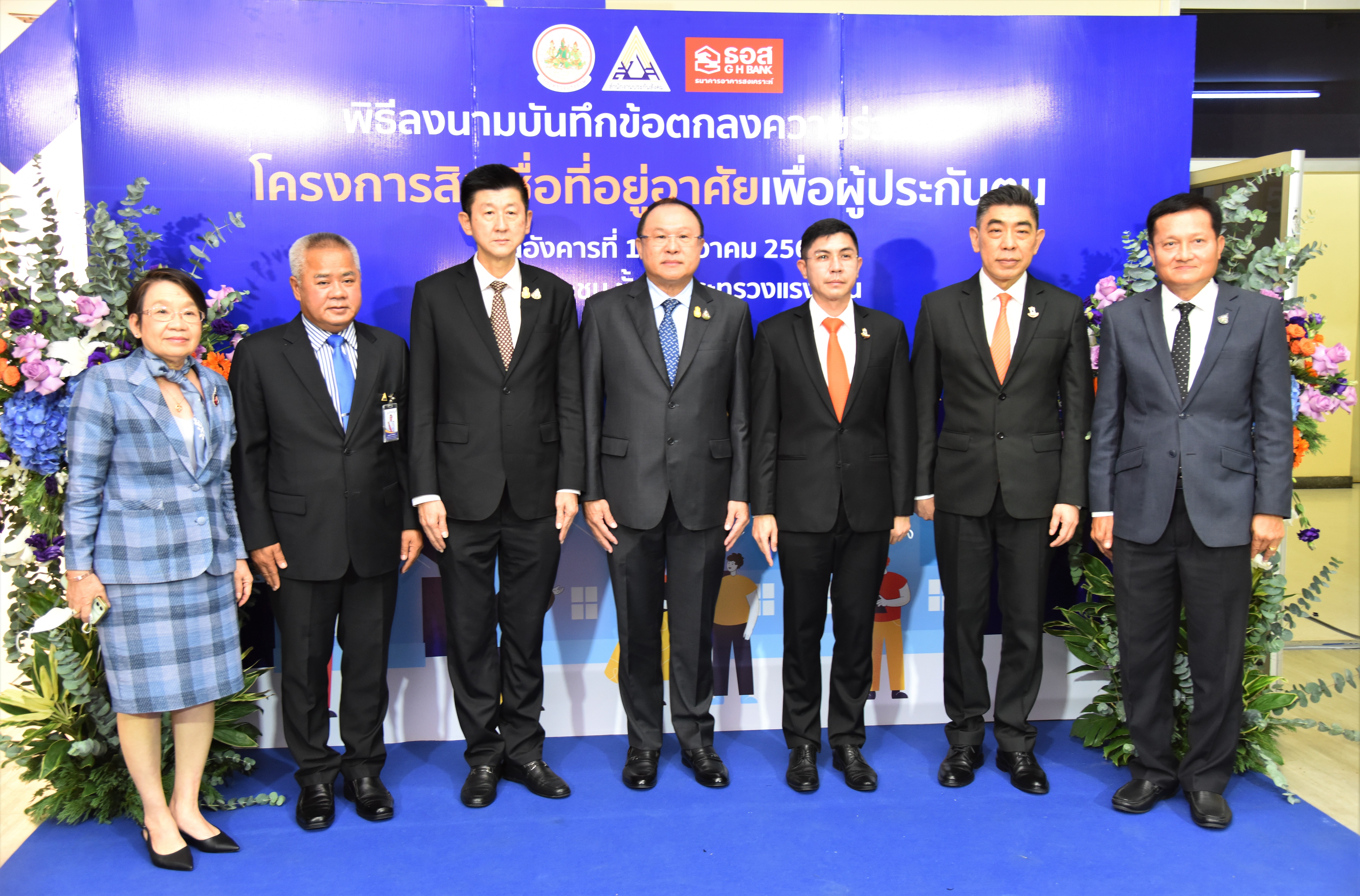 The Government Housing Bank’s Managing Director, Mr. Chatchai Sirilai, said that today, GHB is very pleased to sign the Memorandum of Understanding with the Social Security Office, in which the GHB is ready to support government policies to help reduce the burden of expenses for people under the housing loan program for insured persons. The Government Housing Bank is ready to help alleviate payment costs for residential installments through low-interest loans and fixed rates for years 1-5, equal to 1.99% per year, years 6-8, equal to MRR-2.00% (4.15%) per year, and for the 9th year until the end of the contract period, equal to MRR-0.50% (5.65%) per year. The current MRR interest rate of GHB is 6.150% per year. It allows installment payments of up to 40 years for loans not exceeding 2 million Baht. The insured person can request a code to join the project through the GHB ALL or GHB ALL GEN application from December 16, 2022, at 8.00 hours to January 15, 2023, at 24.00 hours. The insured persons will receive a code for joining the project through GHB Buddy in the Line Application. Then, they can use the code received to apply for a loan at GHB ALL GEN branches nationwide. Insured persons interested in participating in the project can download the GHB ALL GEN application at the App Store, Google Play, and App Gallery. For more information, please contact Government Housing Bank (GHB), all branches nationwide, the G H Bank Call Center by calling 0-2645-9000, or the Facebook Fanpage of the Government Housing Bank, and follow the news of the bank on the GHB ALL or GHB ALL GEN application, and www.ghbank.co.th.