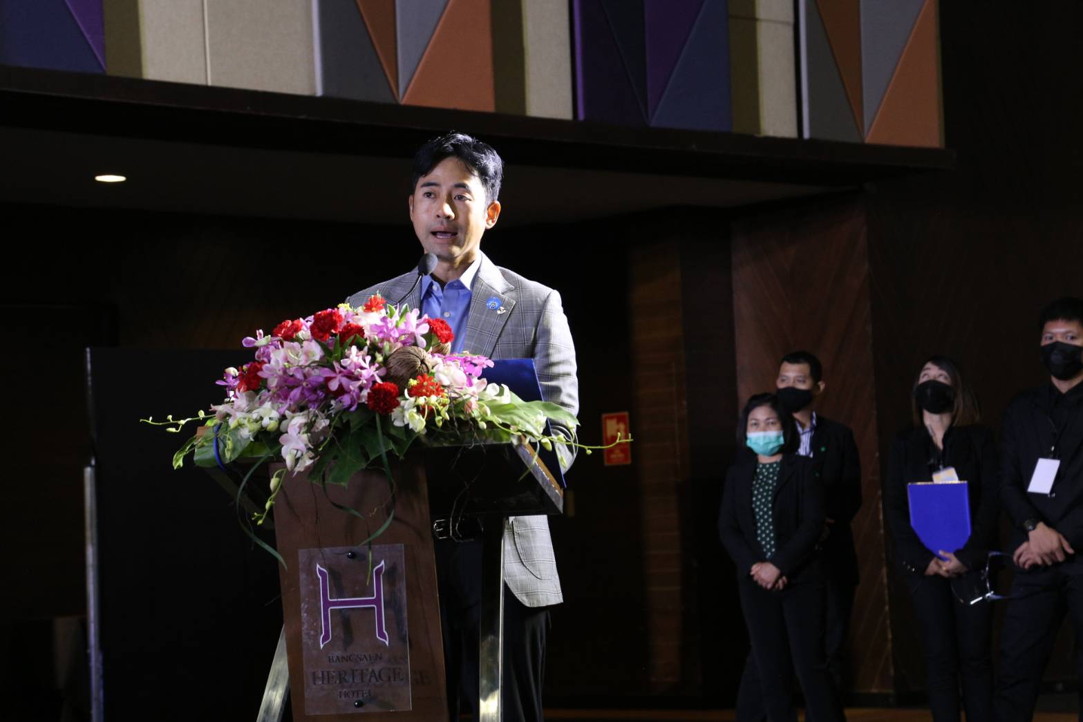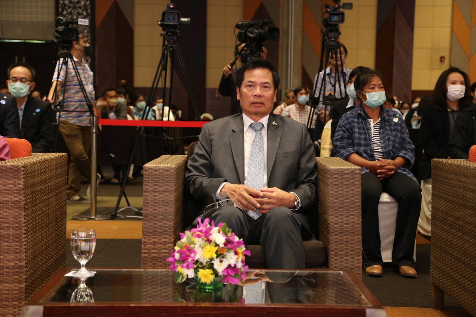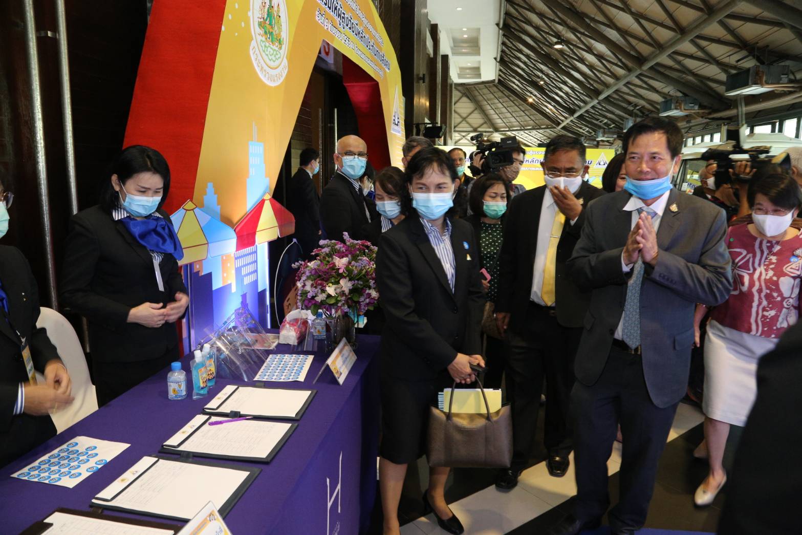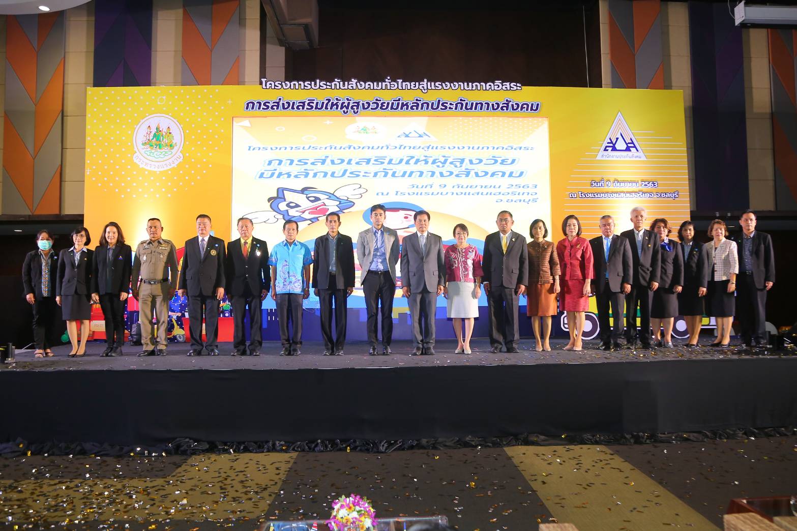 On September 9, 2020, at 09.30 hours, Secretary-General to the Ministry of Labour Mr. Suthep Chittayawong, presided over the Social Security Project’s opening ceremony throughout Thailand for the 1st and 2nd generation of independent workers (regional). Deputy Permanent Secretary of Labour Mrs. Theanrat Nawamawat, the Social Security Office’s Secretary-General Mr. Todsaphon Kritwongwiman, Chonburi District Sheriff Mr. Sukhon Suwannasaksin, Mayor of Saensuk Municipality Mr. Narongchai Khunpluem, the Social Security Offices executives and officials gave a welcoming at the Sansuk Room, Bangsaen Heritage Hotel, Muang, Chonburi.