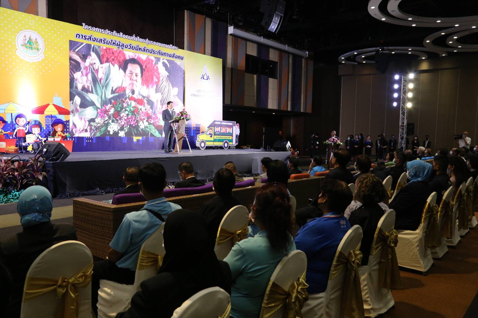 Secretary-General to the Ministry of Labour Mr. Suthep Chitvong said that the Ministry of Labour has important missions in developing and empowering people by building social security tp align with necessities for life, especially populations of disadvantaged and fragile people, including the elderly. Many of these people do not have social protection yet, which is one reason for social inequality. According to the National Statistical Office’s 2019 independent worker data survey, there were 20.4 million independent workers nationwide, but only 3.40 million people, or 16.67 percent, have access to Section 40 of the Social Security protection system; 17.00 million independent workers, or 83.33 percent have not yet entered the protection system. Therefore, to reduce such inequity, the Ministry of Labour has promoted support and publicized to people in the working-age and self-employed group, to recognize the importance of having social security by applying to the Social Security system, and to enhance the development of a better quality of life.