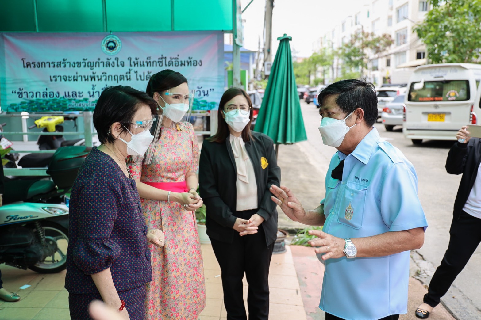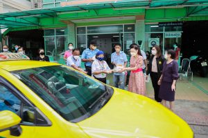 Mrs. Thiwalrat added that today, the Labour Minister, Mr. Suchart Chomklin, has seen the hardship and concern for the taxi drivers who have been affected by COVID-19. Therefore, he assigned her and her team to visit the area to give food boxes and dry foods donated by the private sector and generous citizens like the CP Group, Carabao Dang, and Thai Union Group, who have joined forces to support the Ministry of Labour to help taxi driver’s families who have suffered from the impact of COVID-19. The donations were made through the President of the Thai Taxi Association, including support for the budget of the Thai Taxi Association to give money to the families of taxi drivers to prepare food boxes for workers’ camps. From visiting the area and talking and encouraging the taxi drivers, she said that they could be rest assured that the government and the Ministry of Labour, led by the Prime Minister, will not leave anyone behind.