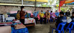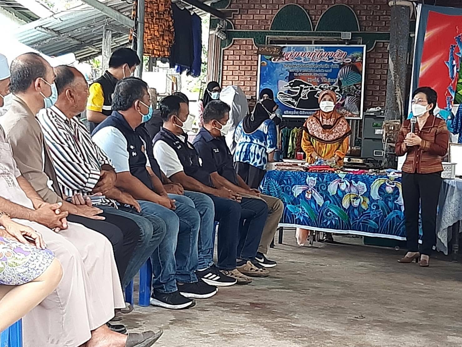 From there, the Deputy Permanent Secretary of Labour and the committee visited the area to meet and encourage members of occupational groups from the Ministry of Labour’s occupational project in Krabi Province. The project promotes independent occupations, jobs, and stable incomes. They looked at products from the Bagan Batik group, which makes products from tie-dyed fabrics such as shirts, pieces of fabric, displays with royal patterns, and cloth patterns. They also visited the Lai Sen Group, which makes woven products from plastic threads, bags, and knitted hats. The visit took place at the Batik Bagan Group, Ao Luek Noi Subdistrict, Ao Luek District, Krabi Province. The chairman of the group, the Deputy Prime Minister of Ao Noi Subdistrict Administrative Organization, the community headman, labour volunteers, representatives of the Subdistrict Health Promotion Hospital, and other departments in the area gave a welcoming. The Provincial Commerce Office, the Provincial Community Development Office, the Social Development and Human Security Office representative, and heads of government agencies under the Ministry of Labour in Krabi Province also participated in the event.