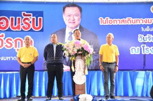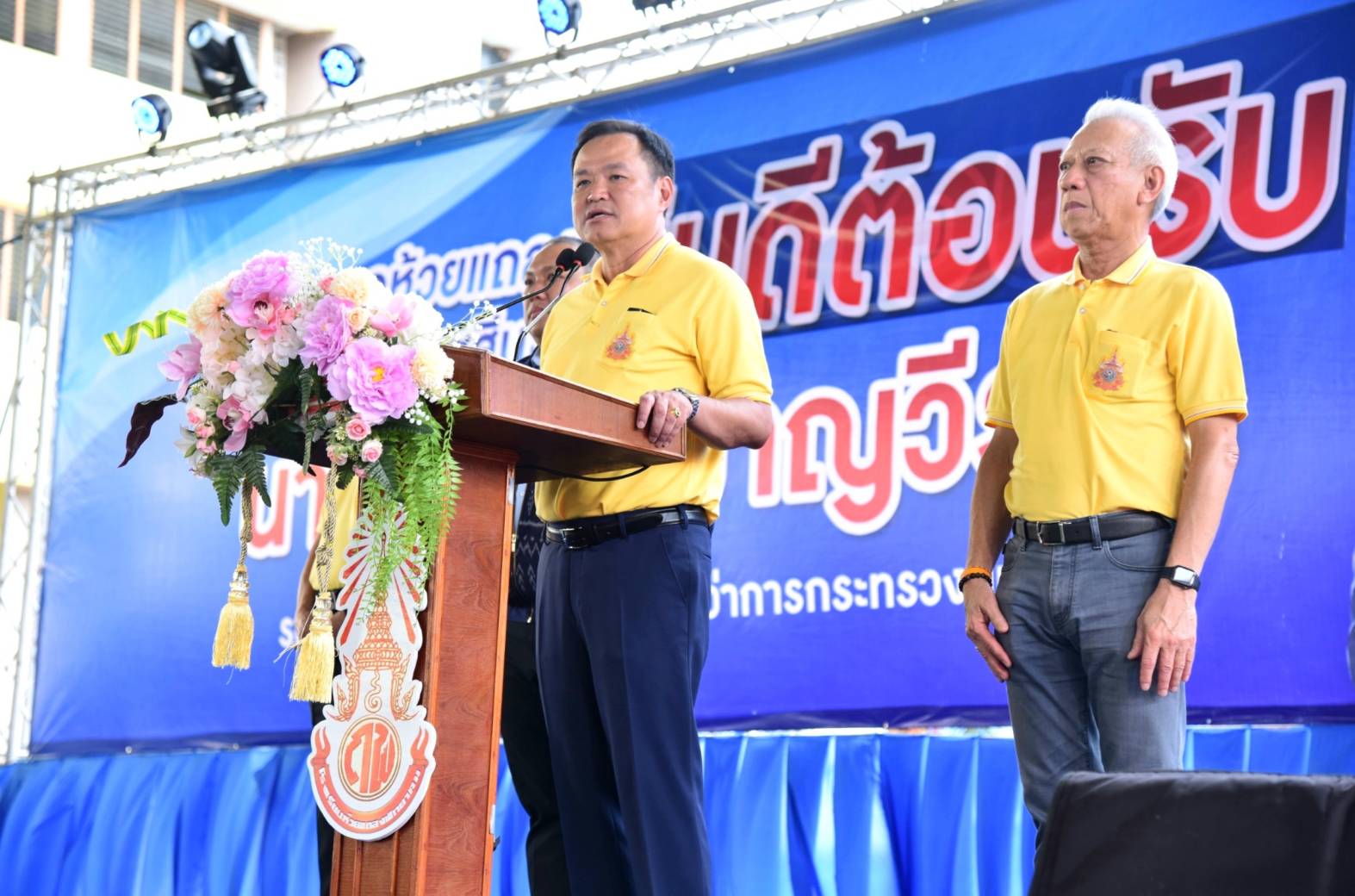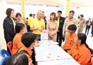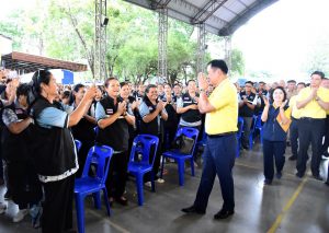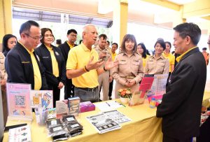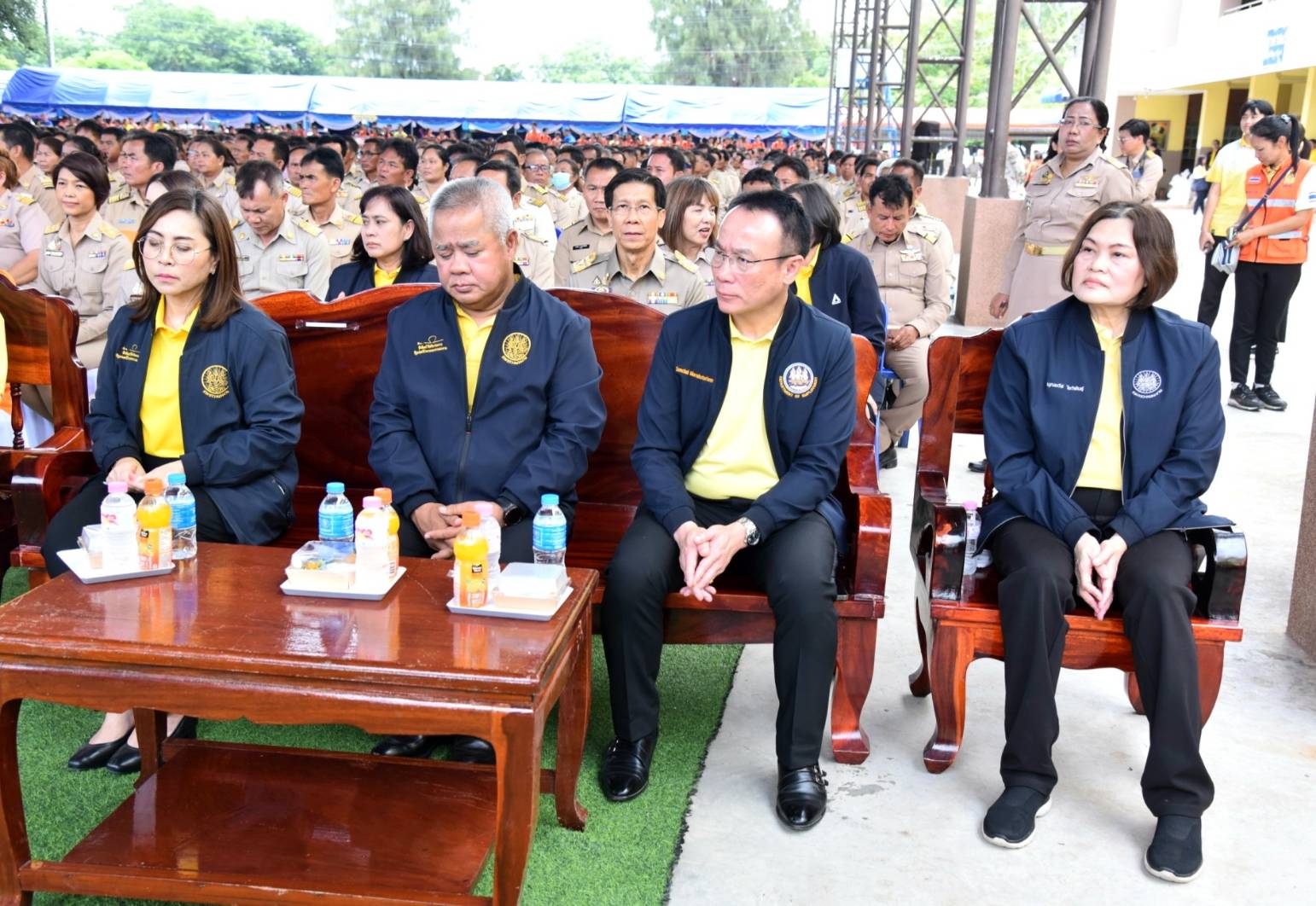 On July 1, 2024, at 11:00 a.m., Mr. Pipat Ratchakitprakarn, Minister of Labor, accompanied Mr. Anutin Charnvirakul, Deputy Prime Minister and Minister of the Interior, to meet with the people of Nakhon Ratchasima Province. They inspected and viewed the exhibition and mobile service units provided by various government agencies for the local population. Additionally, they attended a meeting to receive a briefing and deliver policies to provincial executives, government agencies, and local administrative organization leaders. Among those present were Mr. Somchai Morakotsriwan, Director-General of the Department of Employment; Ms. Buppha Rueangsud, Director-General of the Department of Skill Development; Mr. Boonsong Thapchaiyut, Secretary-General of the Social Security Office; Ms. Bunyawi Kwaiphan, Inspector-General of the Ministry of Labor; along with senior executives from the Ministry of Labor; Mr. Chaiwat Chuenkosum, Governor of Nakhon Ratchasima Province; heads of government agencies under the Ministry of Labor in Nakhon Ratchasima Province; relevant agencies; community leaders; local administrative organization executives; school administrators; students; and residents. The event took place at Huai Thalaeng Pittayakhom School, Huai Thalaeng District, Nakhon Ratchasima Province.