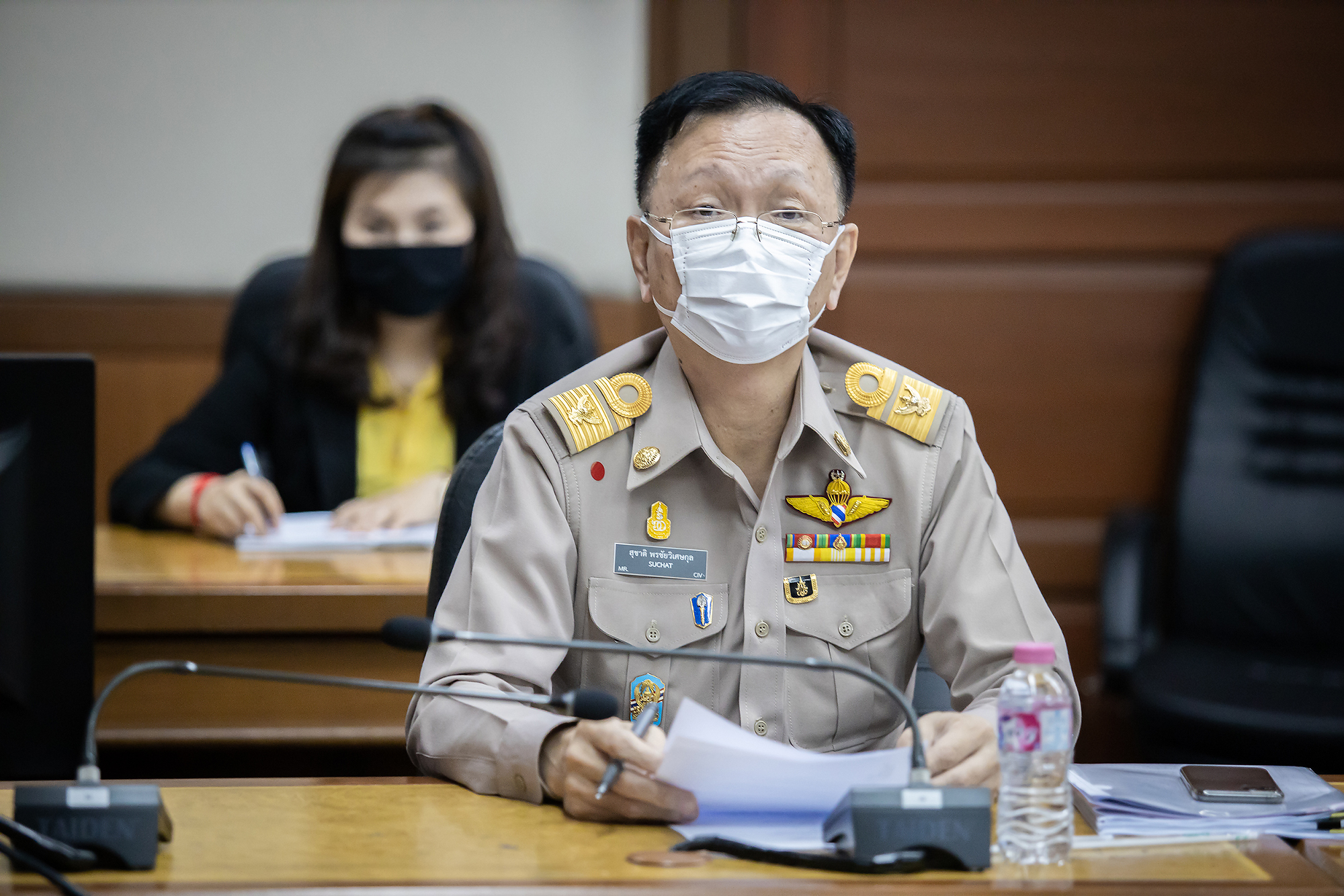Today (March 30, 2020) at 14.00 hours, Assistant to the Labour Minister Dr. Duangrit Benjathukul Chairungrueng chaired the meeting with Chairman of the Tourism Council of Thailand Mr. Chairat Tayratana and committee, to discuss the Ministry of Labour’s remedial measures for the impacts of the Covid-19 virus spread. The meeting took place at the Prasong Rananant Meeting Room, 5th floor, Ministry of Labour. The meeting discussed measures to help the tourism and service sectors to maintain employment, to not aggravate socio-economic conditions and reduce the risk of spreading the Covid-19 virus, which can be a powerful factor in the rehabilitation of the country’s economy, once this crisis has passed.