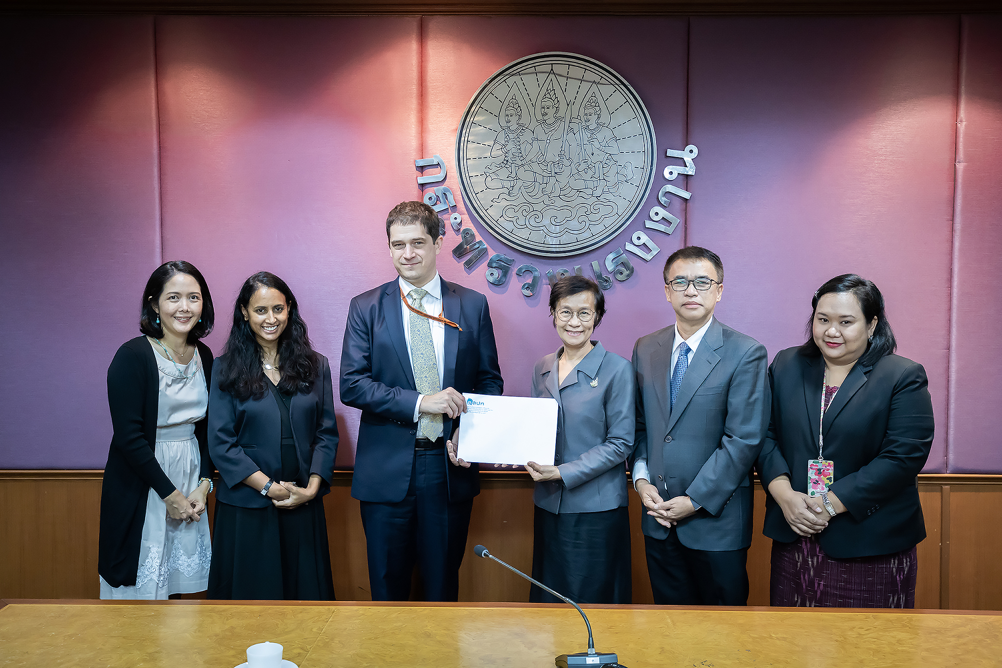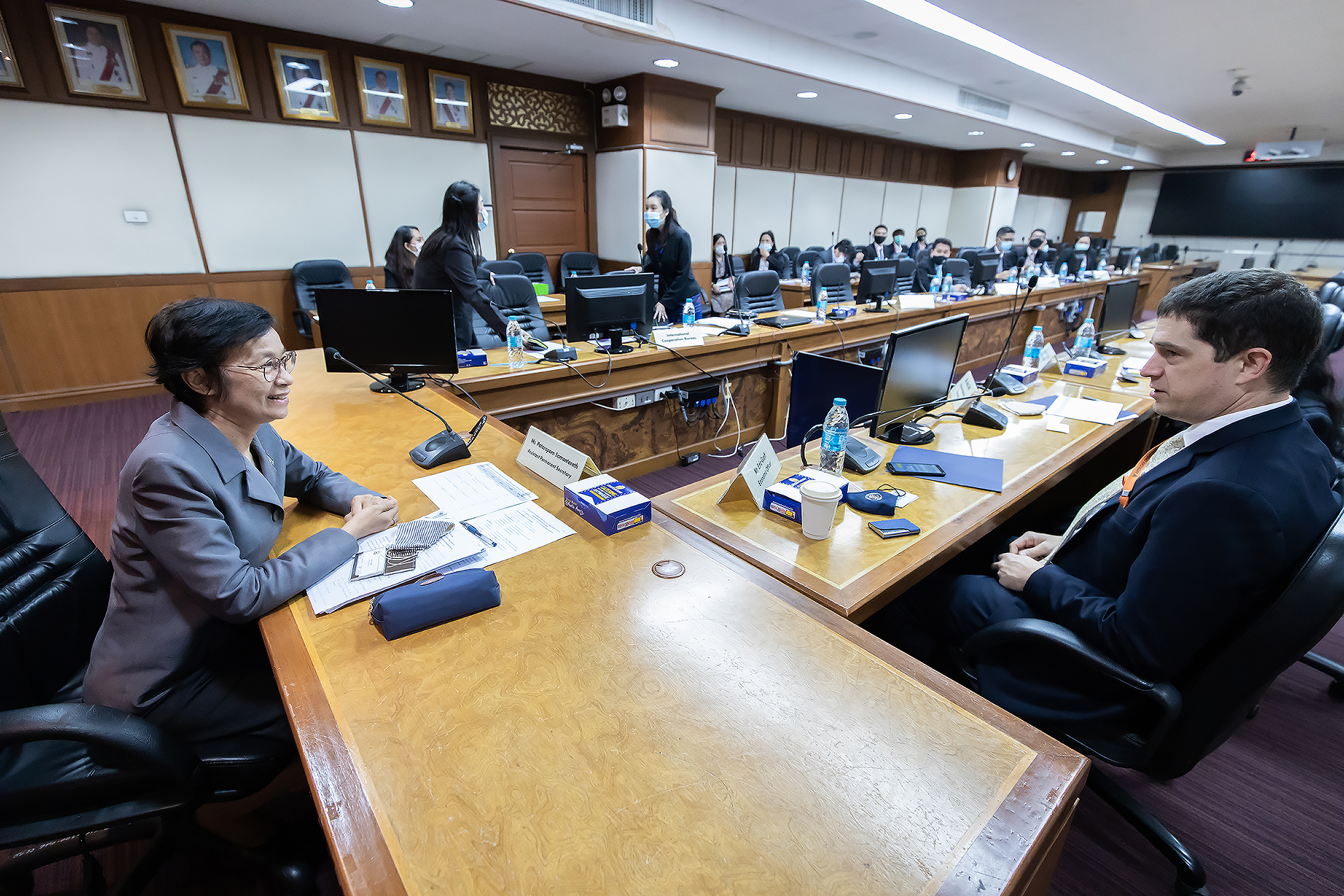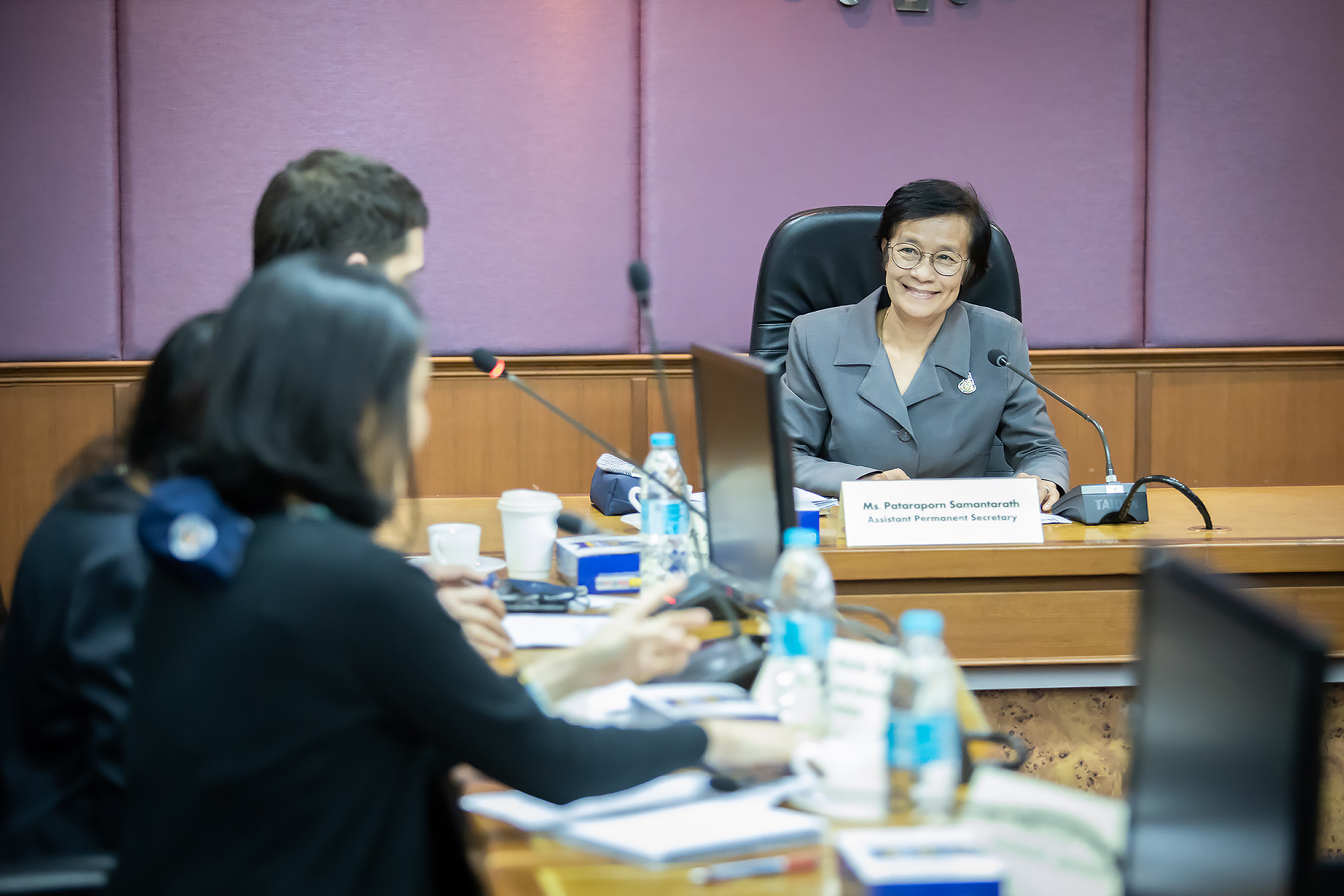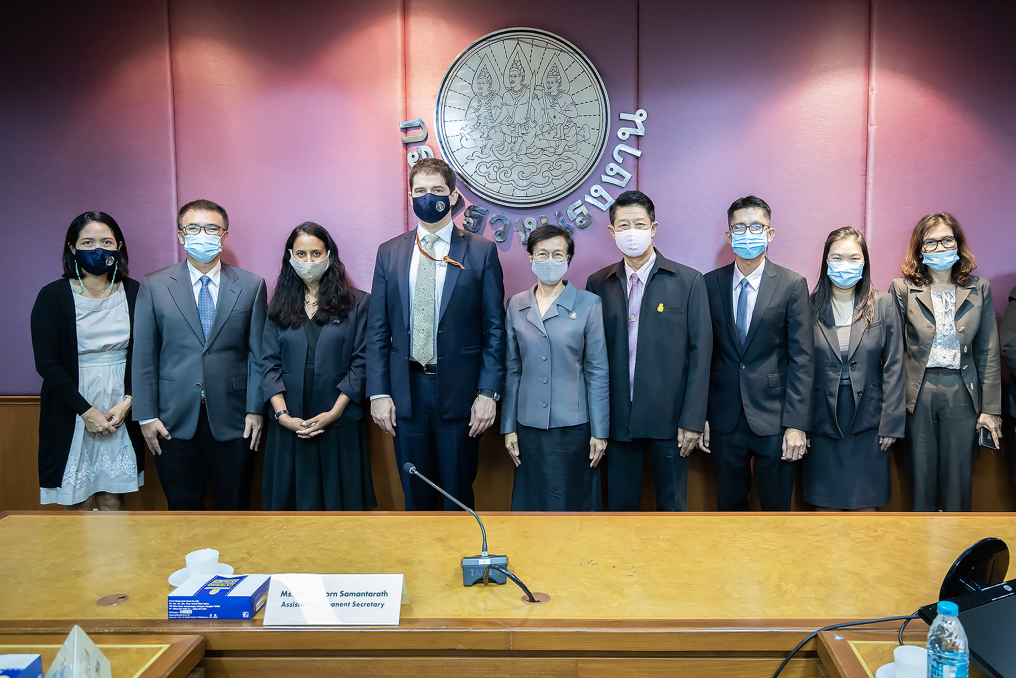 Today (November 3, 2020) at 09.30 hours, Permanent Secretary of Labour Mr. Suthi Sukosol assigned Assistant to the Permanent Secretary of Labour, Ms. Pattraporn Samatrat, to welcome Economic Officer Mr. Eric Groff and Professional Associate of Economics Ms. Aisha Talib, representatives from the United States Embassy to Thailand, to discuss workforce development cooperation in upskilling, occupational health and safety standards. The meeting took place at the Prasong Rananat meeting room, 5th floor, Ministry of Labour.