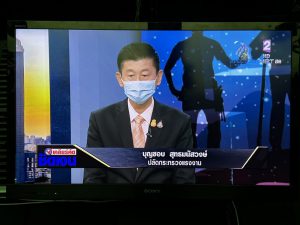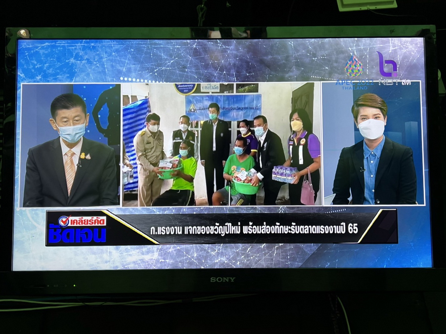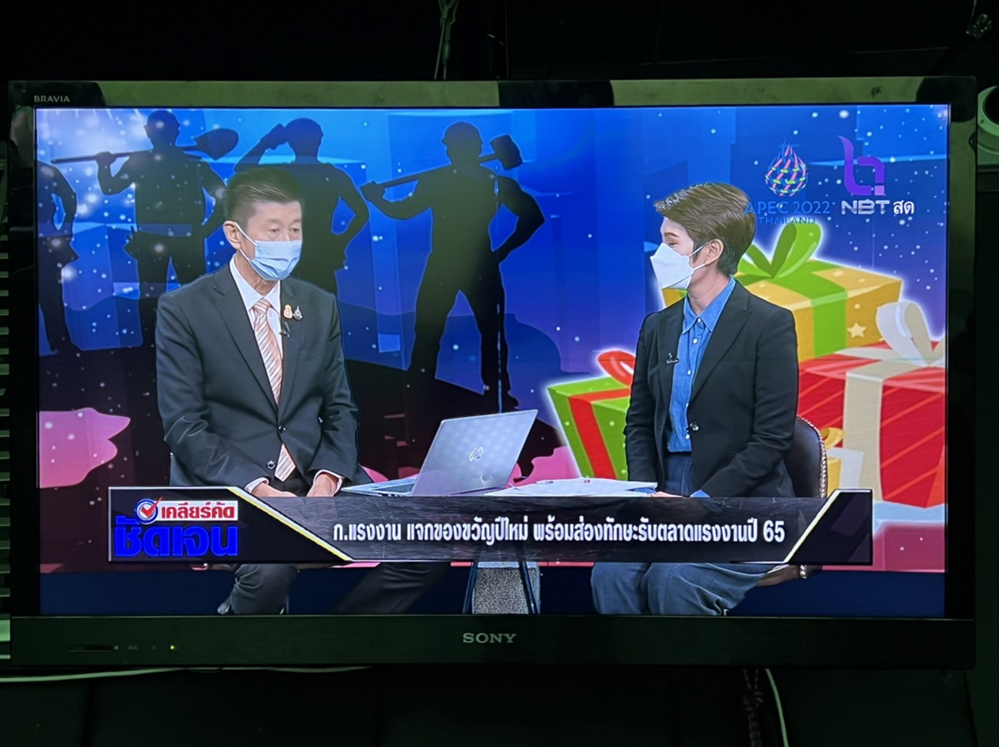 On December 23, 2021, Labour Minister Mr. Suchart Chomklin assigned the Permanent Secretary of Labour, Mr. Boonchob Suttamanaswong, to give an interview to the “Clear Cut, Chud Jane” program about the Ministry of Labour’s New Year Gifts. The program also explained the trend of the labour market demand in 2022 on the Radio and Television of Thailand Channel NBT.