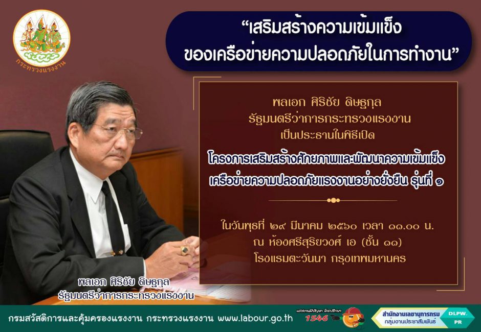 สร้างวัฒนธรรมความปลอดภัย เศรษฐกิจแรงงานไทยมั่นคง"