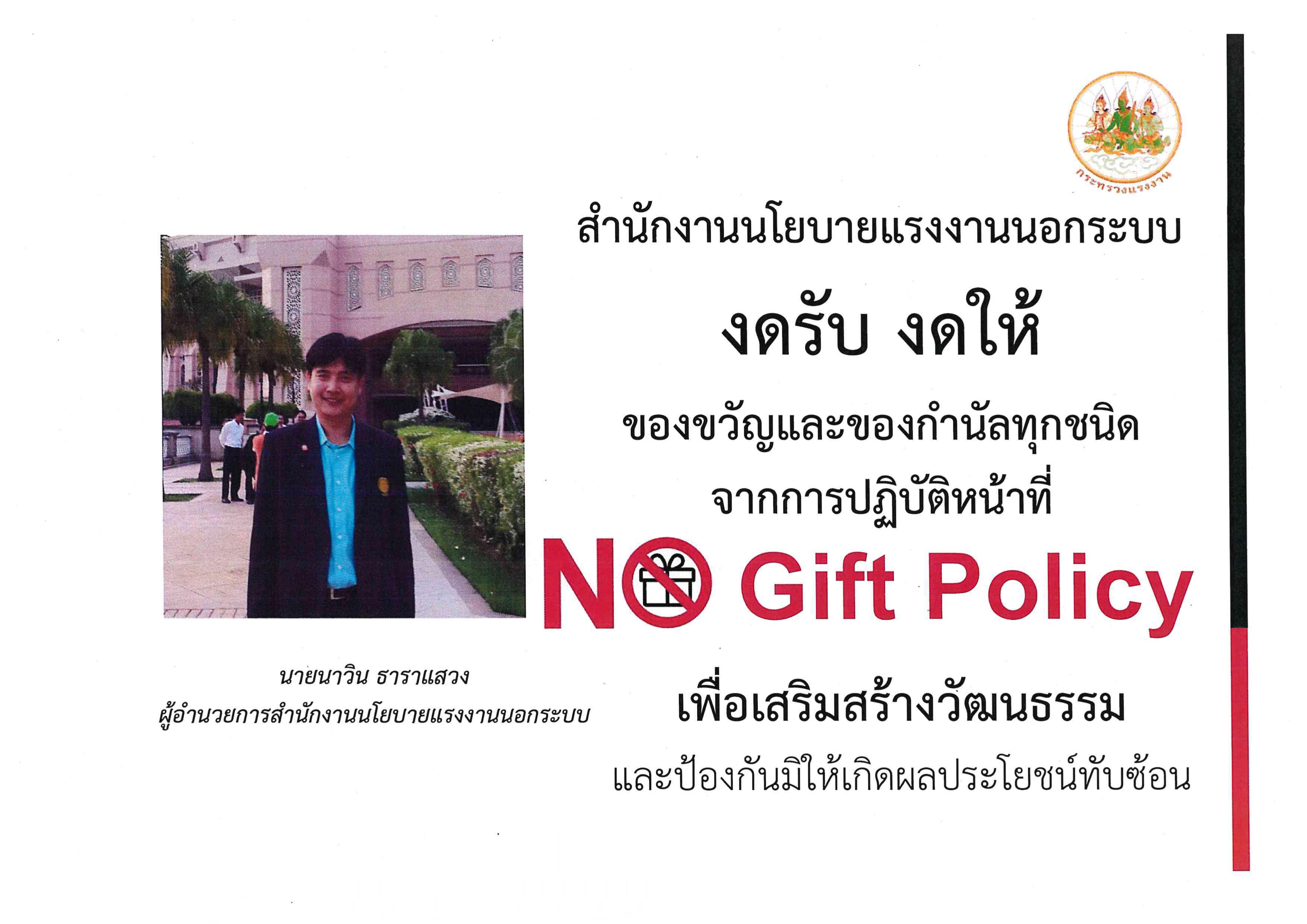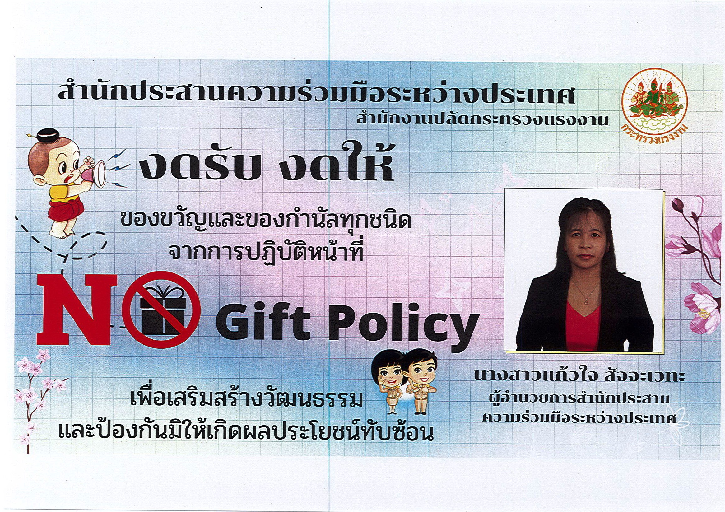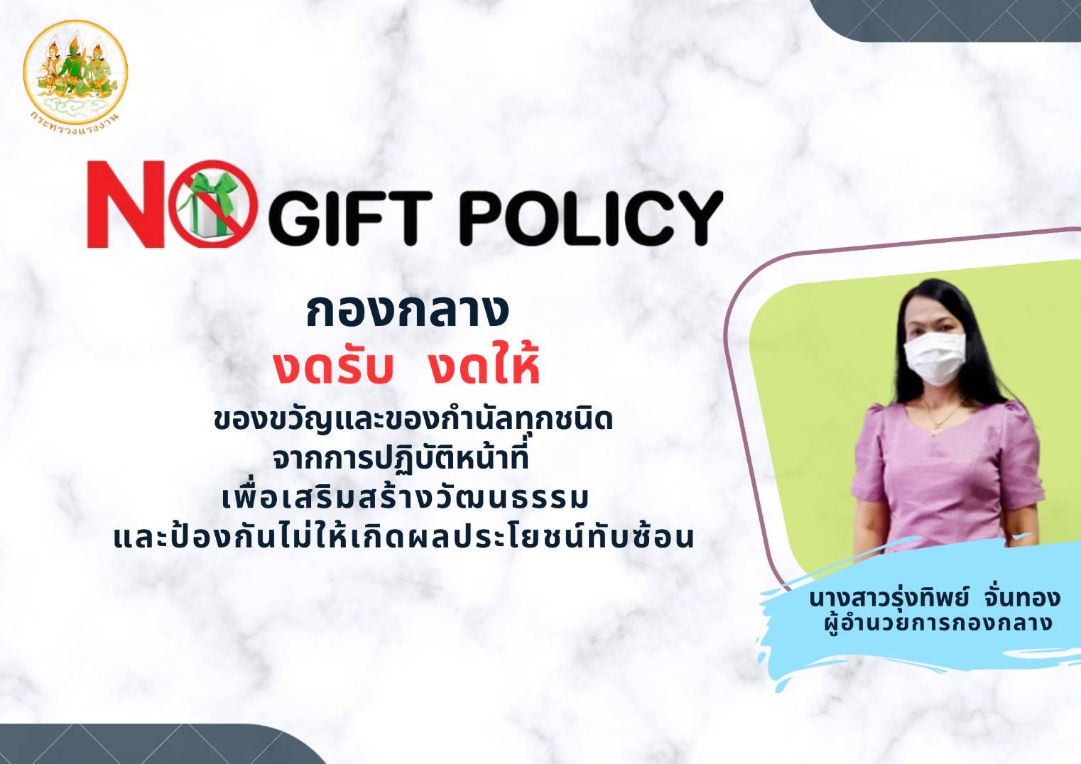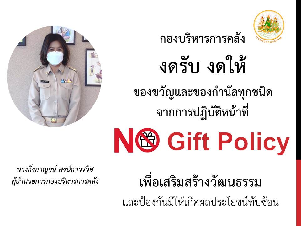 หน่วยงานในสังกัดสำนักงานปลัดกระทรวงแรงงาน ขอเป็นส่วนหนึ่งในการปฏิบัติตาม “นโยบายไม่รับของขวัญทุกชนิด (No Gift Policy)