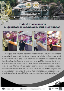 การให้บริการด้านแรงงาน ณ ศูนย์บริการร่วมกระทรวงแรงงานจังหวัดพิษณุโลก