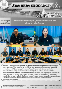 ประชุมคณะกรรมการศูนย์ปฏิบัติการป้องกันการค้ามนุษย์ ด้านแรงงาน จังหวัดสงขลา