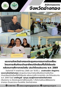 แรงงานจังหวัดอ่างทองประชุมคณะกรรมการขับเคลื่อน โครงการเพิ่มทักษะด้านอาชีพแก่นักเรียนที่ไม่ได้เรียนต่อ หลังจบการศึกาาภาคบังคับ ประจำปีงบประมาณ พ.ศ. 2569