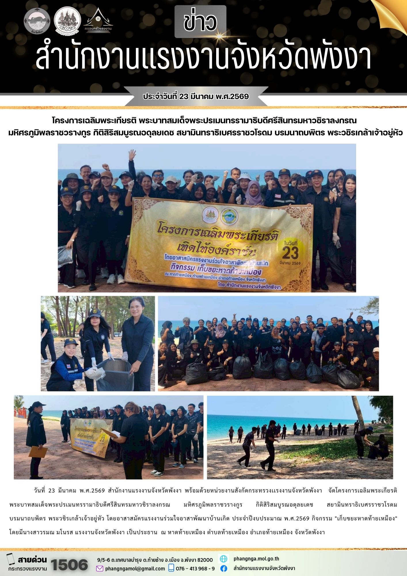 หน่วยงานสังกัดกระทรวงเเรงงาน จ.พังงา จัดโครงการเฉลิมพระเกียรติ พระบาทสมเด็จพระปรเมนทรรามาธิบดีศรีสินทรมหาวชิราลงกรณ มหิศรภูมิพลราชวรางกูร กิติสิริสมบูรณอดุลยเดช สยามินทราธิเบศรราชวโรดม บรมนาถบพิตร พระวชิรเกล้าเจ้าอยู่หัว